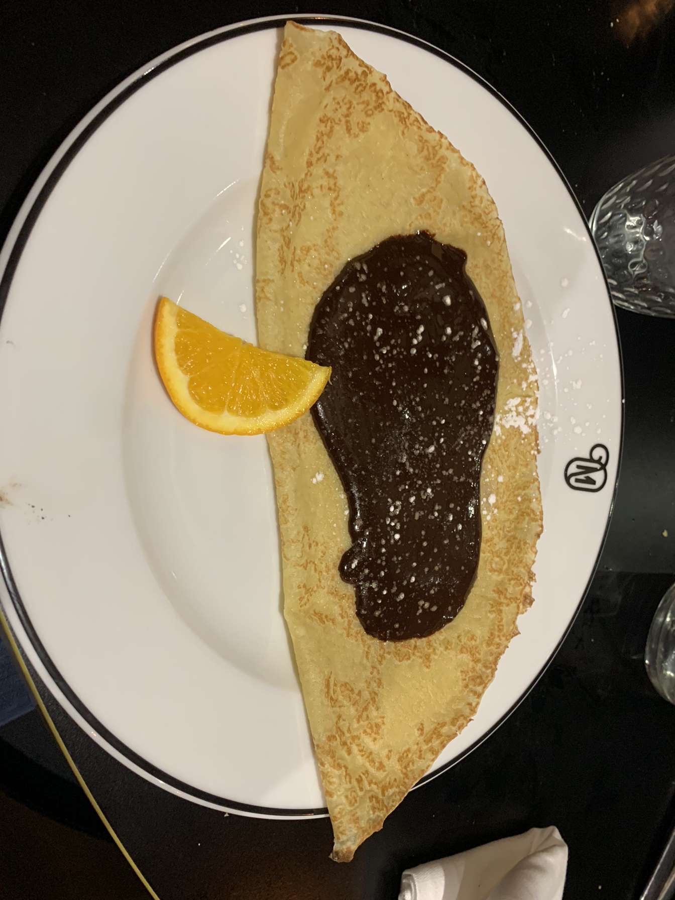 Testée dans le cadre d’une « pause goûter ». Le vin chaud est excellent, bien épicé sans être trop sucré, je recommande ! Très belle décoration de Noël, très festive c’est chouette. Par contre, j ai commandé une crêpe qui est arrivée tiède / froide c’est dommage. Mon ami a commandé une crêpe au « chocolat chaud » tout était froid également.