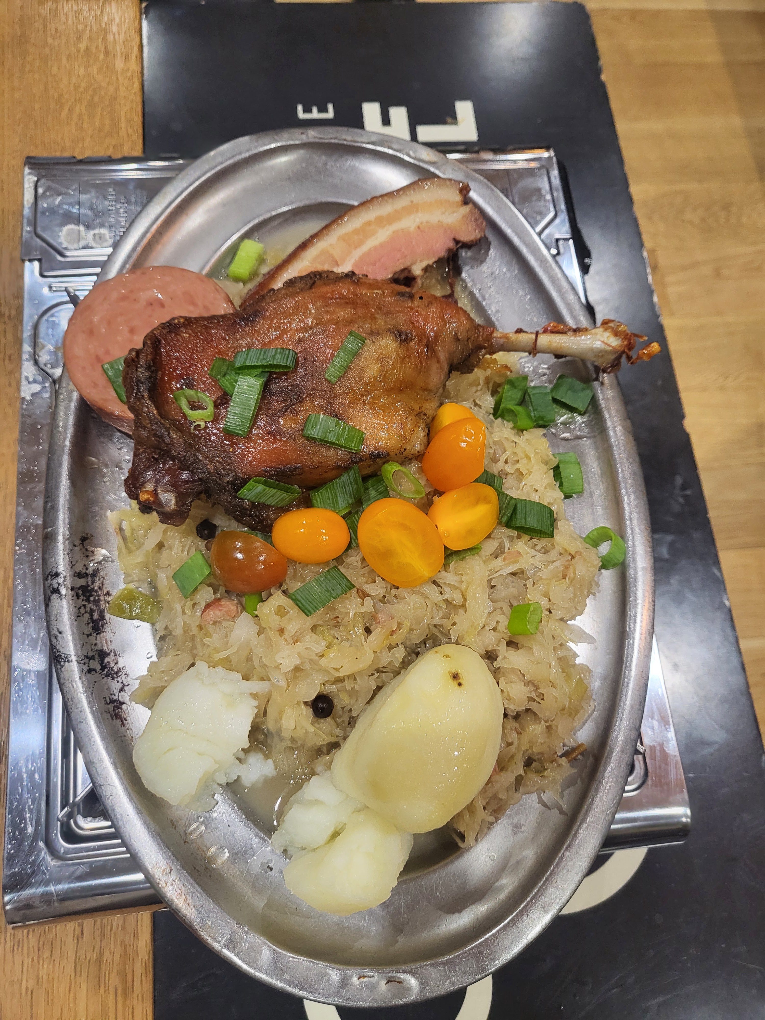 Nous avons passé un très bon moment. La choucroute est un pur bonheur. Nous recommandons de la partager, les cuisses de canard 🦆 un délice. Et très bien conseillé par Alysson.....
