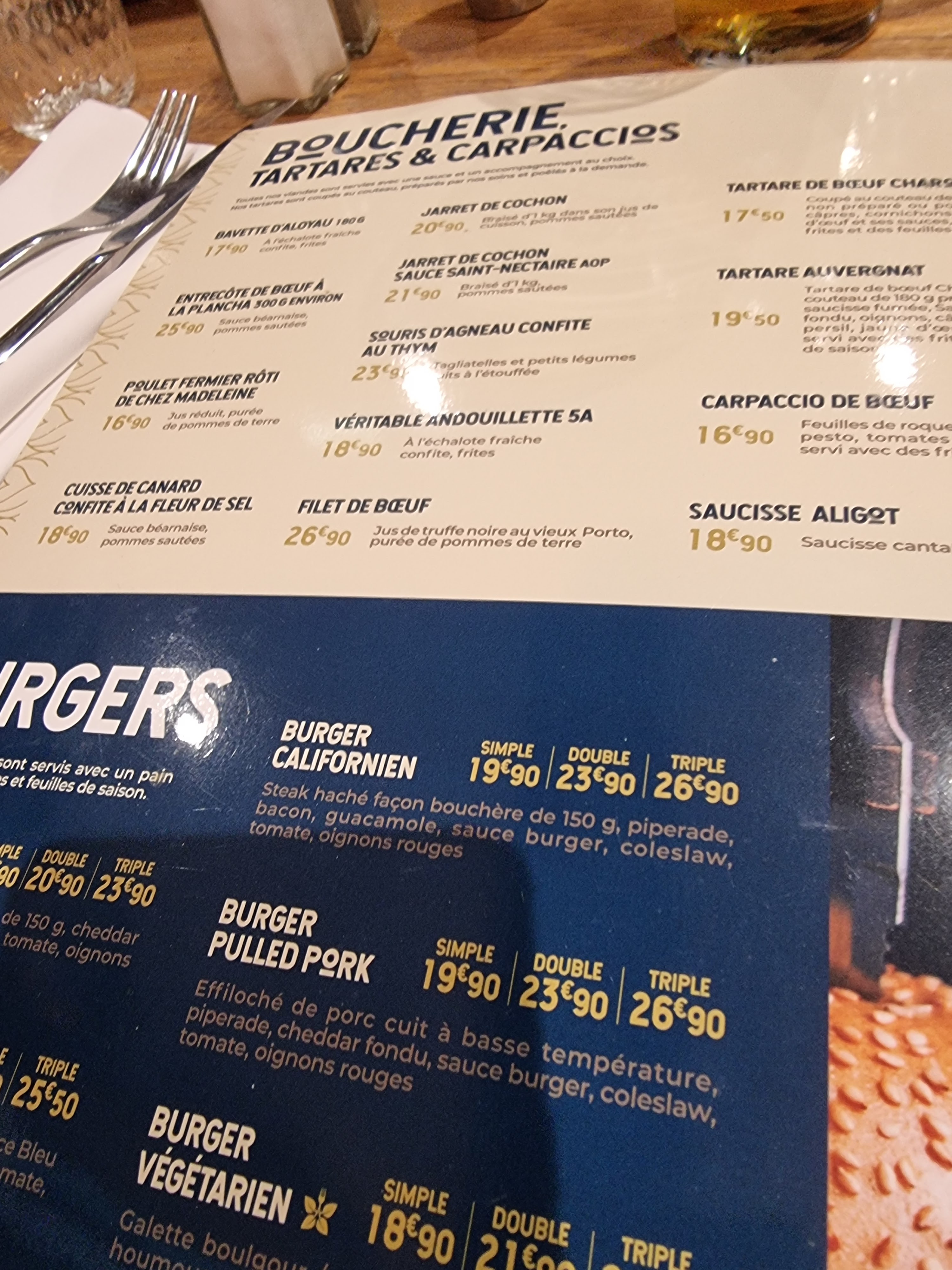 Le cadre est super, l'établissement est magnifique cependant l'hygiène est à surveiller. NE PRENEZ PAS DE TARTARE AUVERGNAT, deux personnes intoxiqué à ma table. Merci de revoir votre service en cuisine. De notre part nous ne reviendrons pas, vraiment dommage pour le potentiel de l'établissement...
