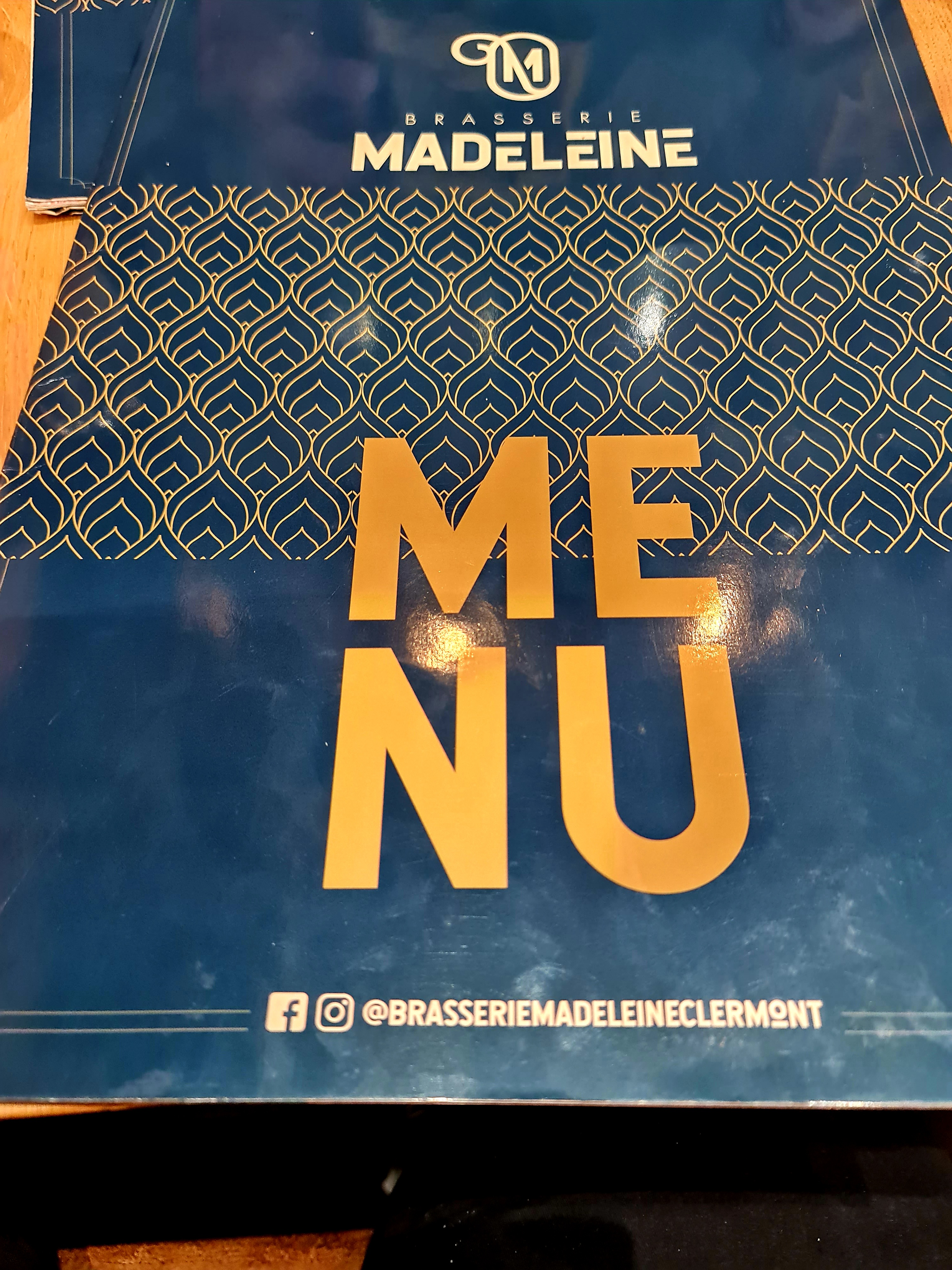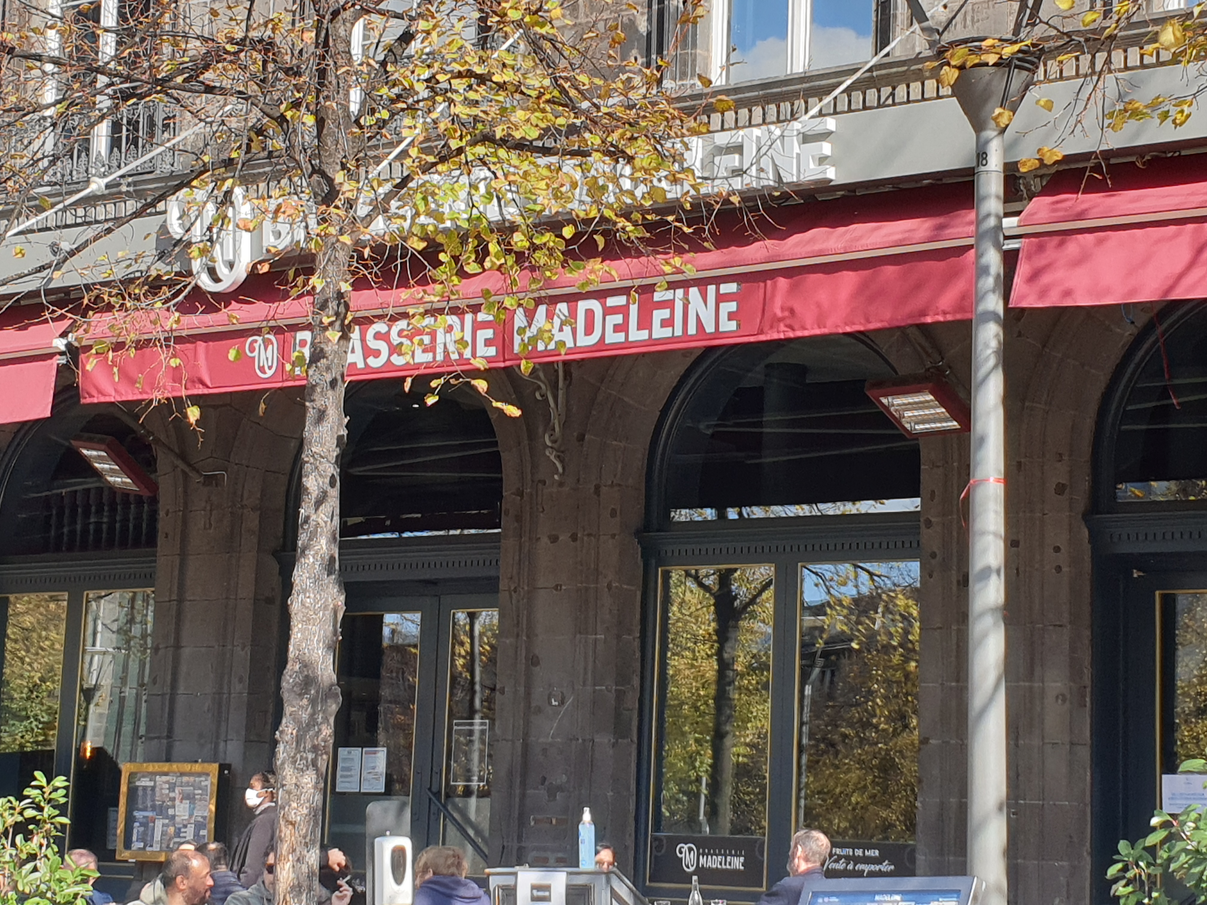 Très belle brasserie de Clermont-Ferrand où tout se côtoie, mer et terroir. Très bon accueil, personnel souriant et à l'écoute. Très bon choix de plats et de choucroutes qui sont vraiment excellentes, ainsi que les desserts. Bon choix de vins, la Vendange Tardive est excellente au palais. Nous allons également dans cette brasserie le matin pour faire une petite pause quand nous sommes de passage dans le coin. Les cafés latte macchiato sont excellents, bien réalisés par le jeune serveur avec 4 étages. Je vous recommande vivement la Brasserie Madeleine où nous n'avons jamais été déçus, que se soit pour le restaurant ou la pause café. Petit rajout, ce dimanche 19 mai jour de Pentecôte et de Saint Yves, petit repas en amoureux et, évidemment, repas et service excellents ou les sourires et gentillesses sont toujours au rendez-vous. Bien sur nous y retourneront.