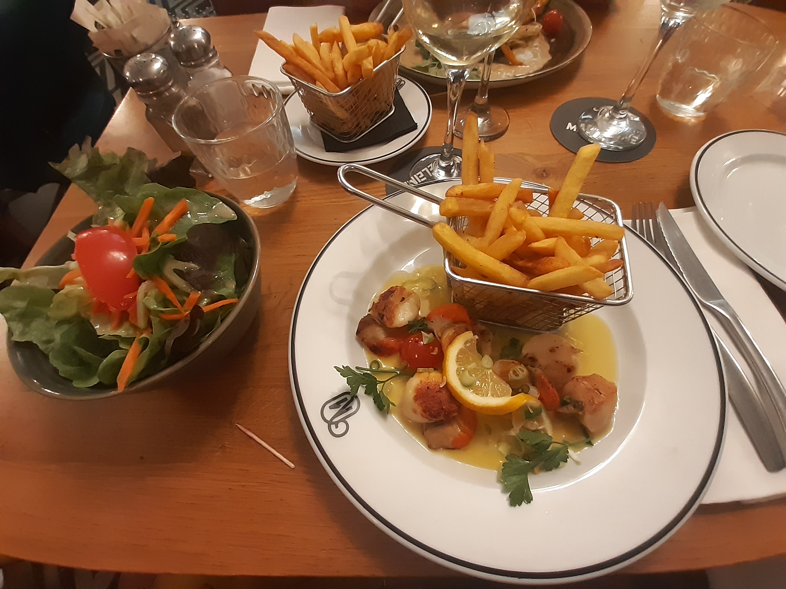Nous sommes venus manger à 5 un samedi soir, et nous nous sommes régalés ! On s’est bien marrés, je m’excuse auprès des tables voisines pour le petit jacassement qu’on a dû faire, mais bon c’était mon anniversaire et on est dans une brasserie alors faut bien un peu d’ambiance. La chef de rang et les runners au top, vifs pour prendre les commandes et répondre avec humour à nos blagues, merci à eux !