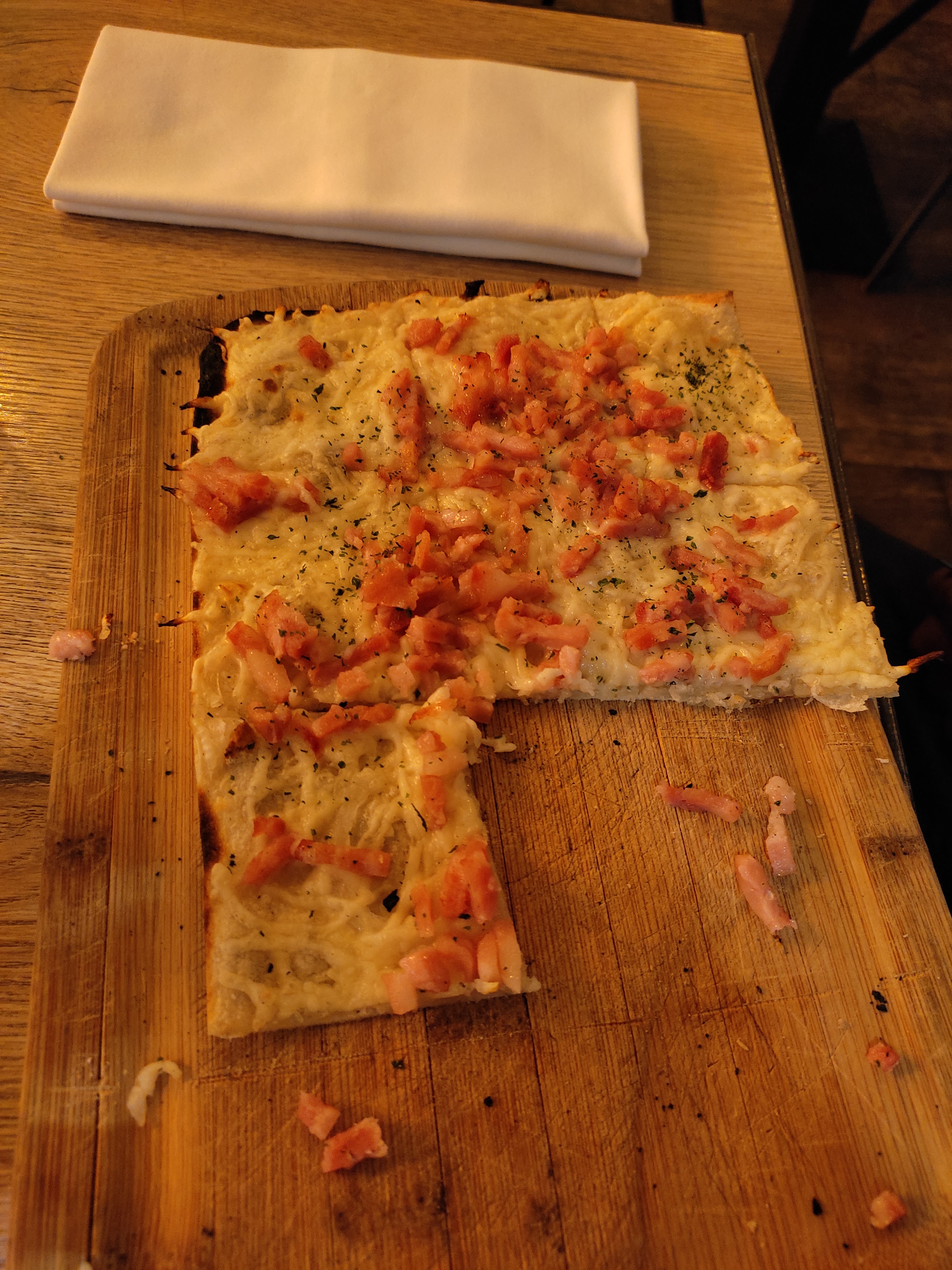 Accueil et personnel agréable. En revanche, je suis déçu de la flammeküeche au saumon pas par sa taille mais son aspect visuel et la quantité de saumon. Des Miettes de saumon parsemé ainsi que l'aneth que je n'ai pas retrouvée. Pour le reste mes autres convives non pas été déçu.