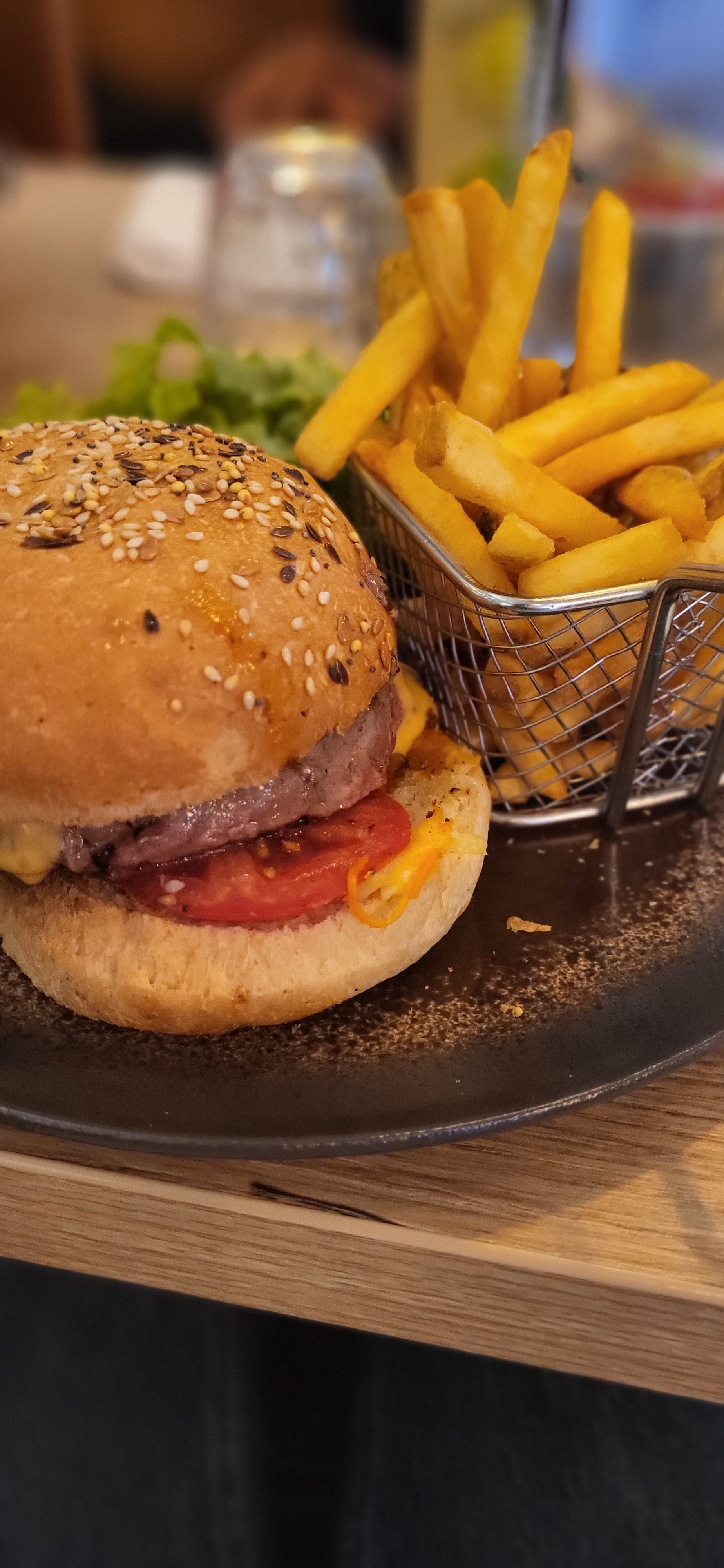 Déjeuner rapide lors d'une conférence en ville. Le service était très bien, les personnels bien actifs. J'ai fait une réservation la veille pour le groupe, jamais reçu la confirmation par contre. En tout cas, en venant tout était pris en compte, aucun souci. Mon steak était bien fait. Les patates plutôt goûteuses avec un goût fort de l'ail. Personnellement j'ai bien aimé. Bien situé en ville mais le prix est abordable.
