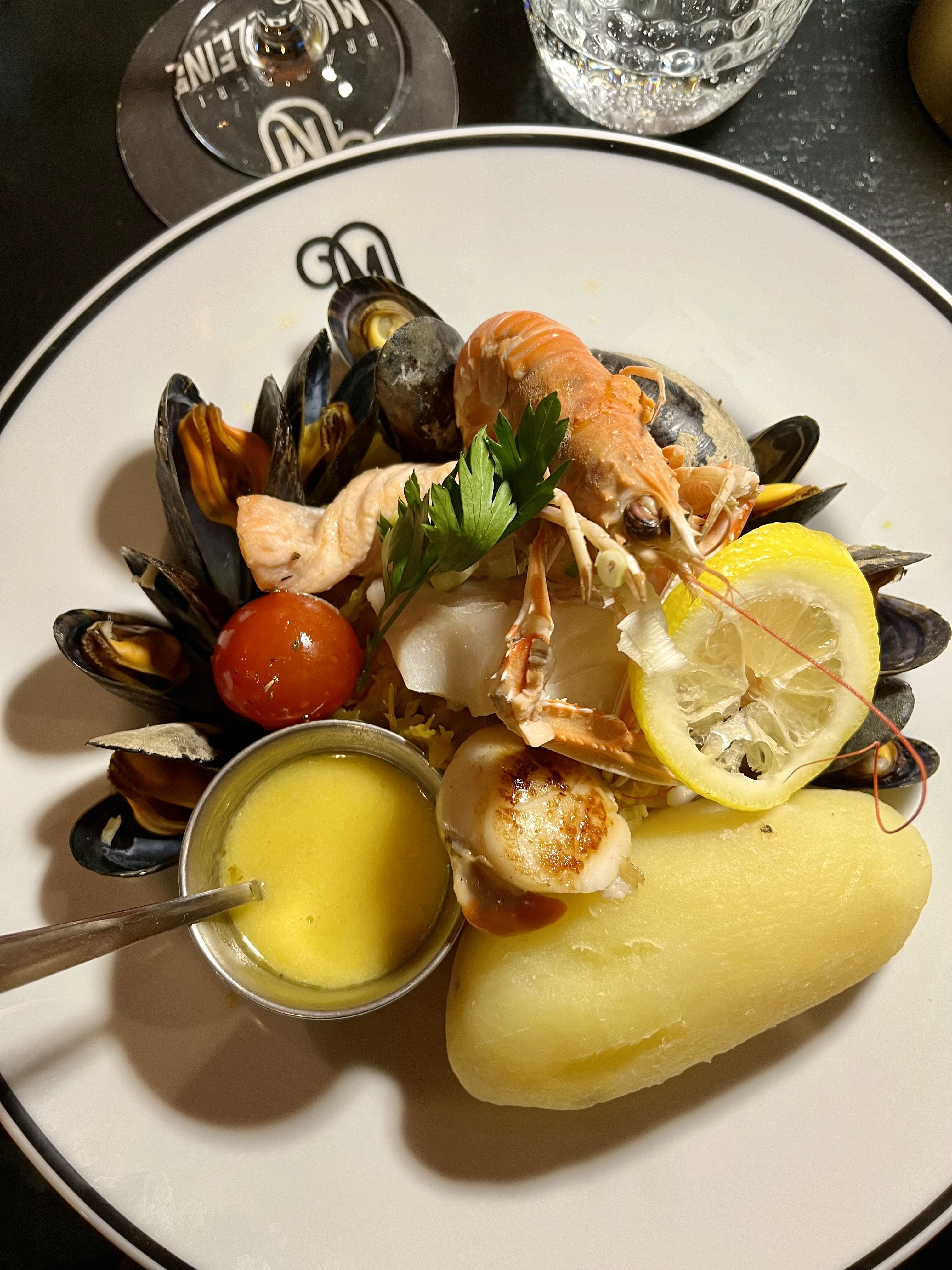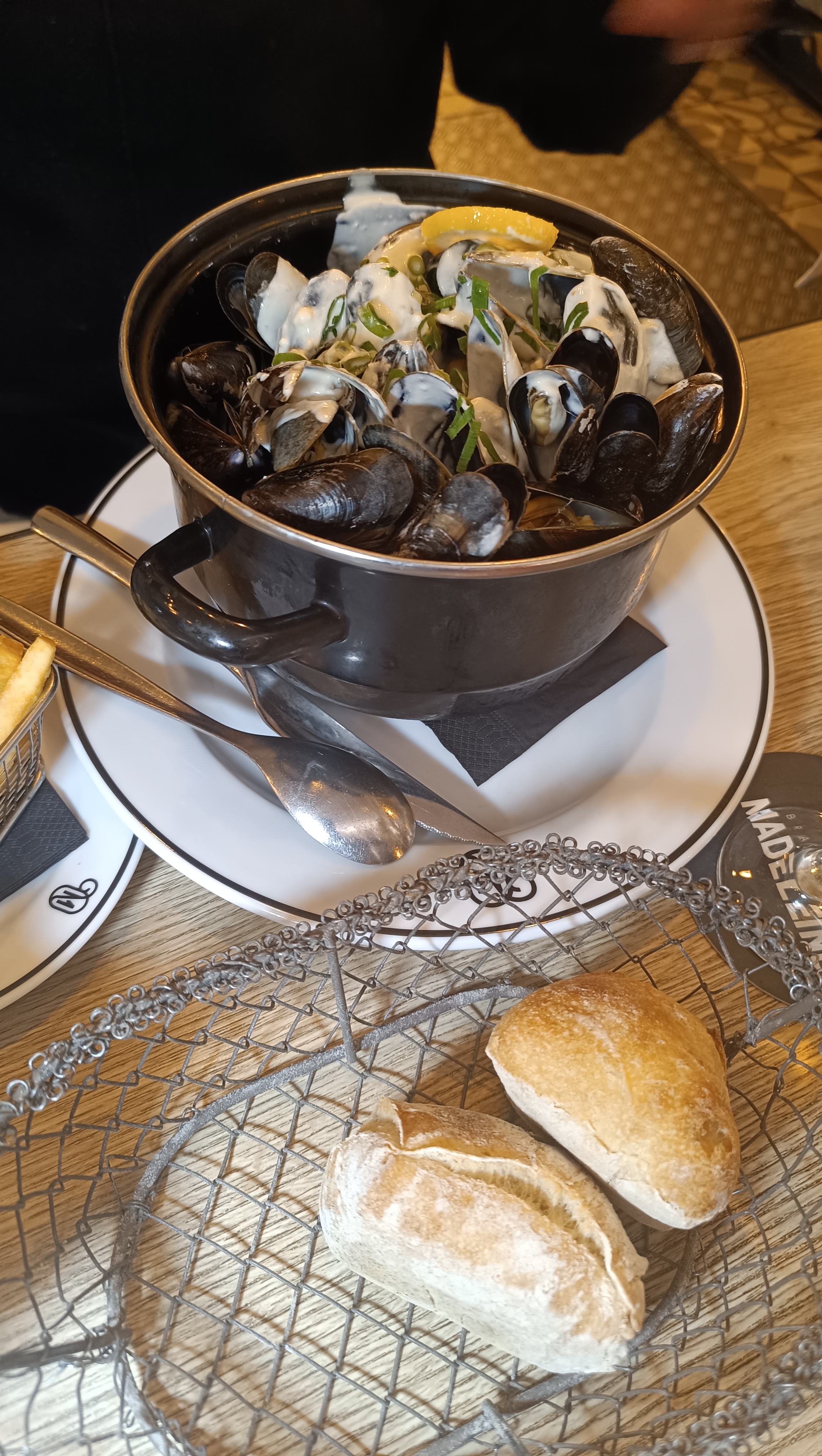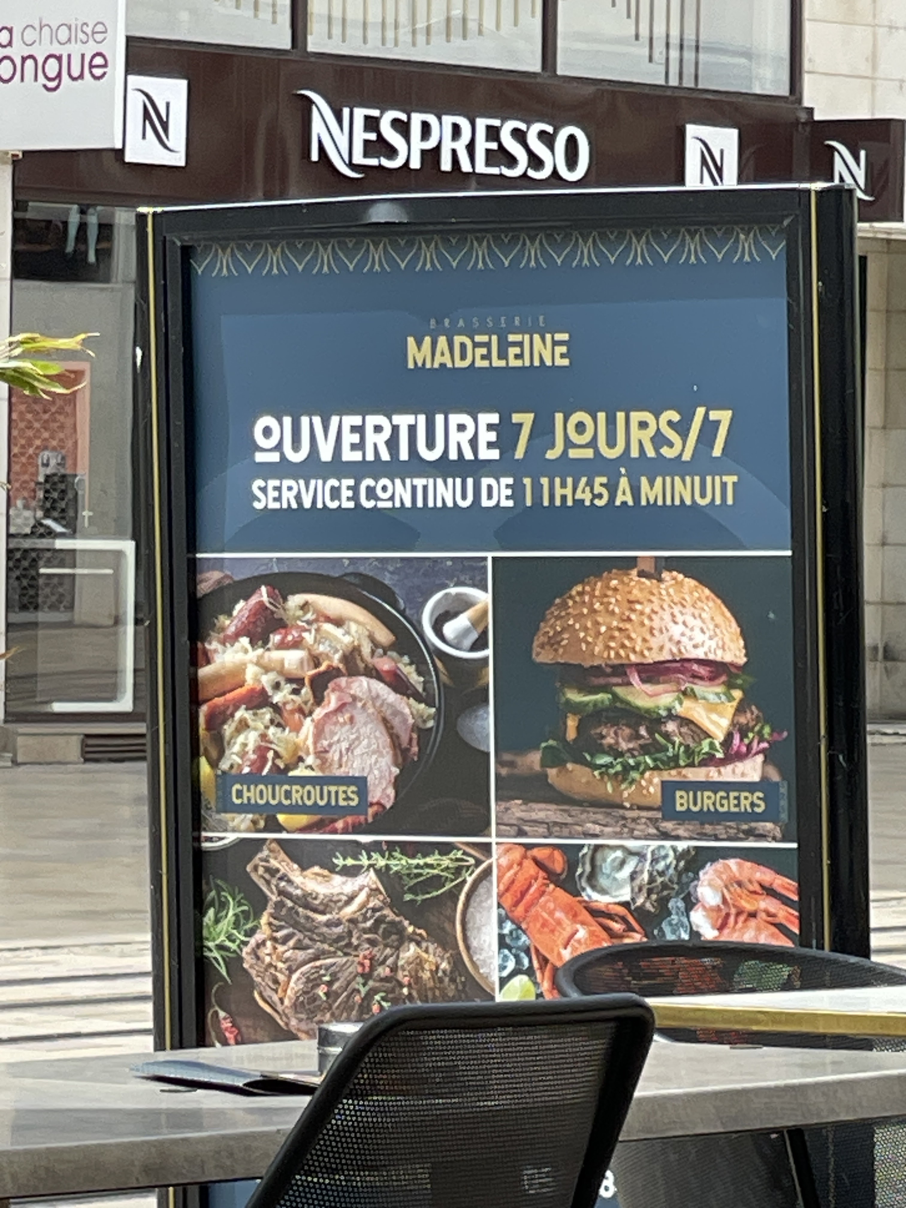 Bon moment passé de façon générale à la brasserie Madeleine. Repas très bon , quelques remarques tout de même : moules dans choucroute de la mer trop cuite, pommes de terre rissolées commandées , frites servies. Bon service, agréable et sans attente. Lieu assez bruyant .