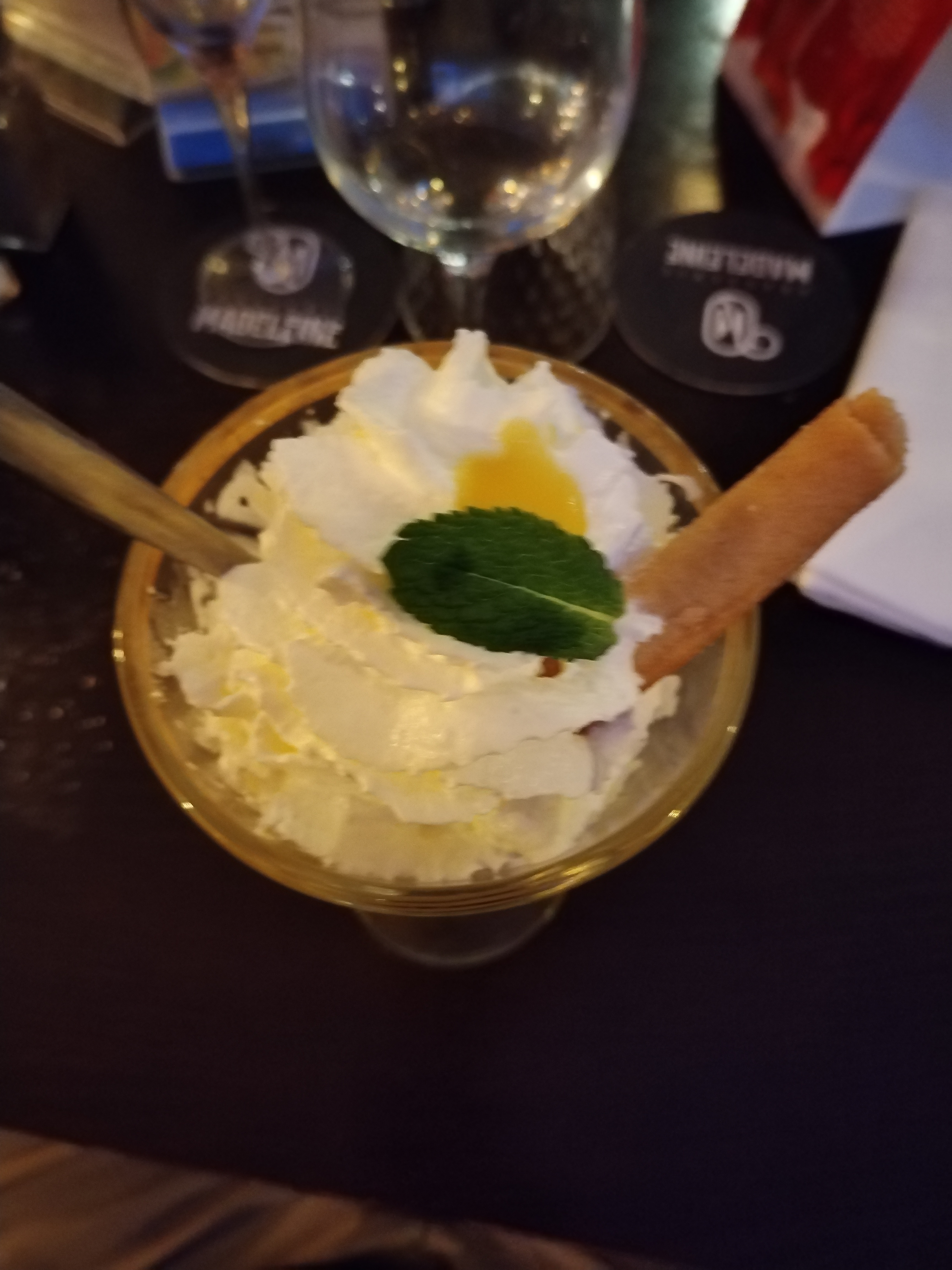 offusqués, mon amie et moi venions passer un bon moment. Désenchantement car notre objectif fut compromis par une responsable salle désagréable à souhait. Une certaine prénommée Celine apparement qui ne nous a pas fait sentir les bienvenues et nous a traité comme des voleurs. Néanmoins, le désert commandé était excellent mais il me semble que le service client est essentiel dans ce type d’établissement, c’est pourquoi nous n’y remettrons plus les pieds.
