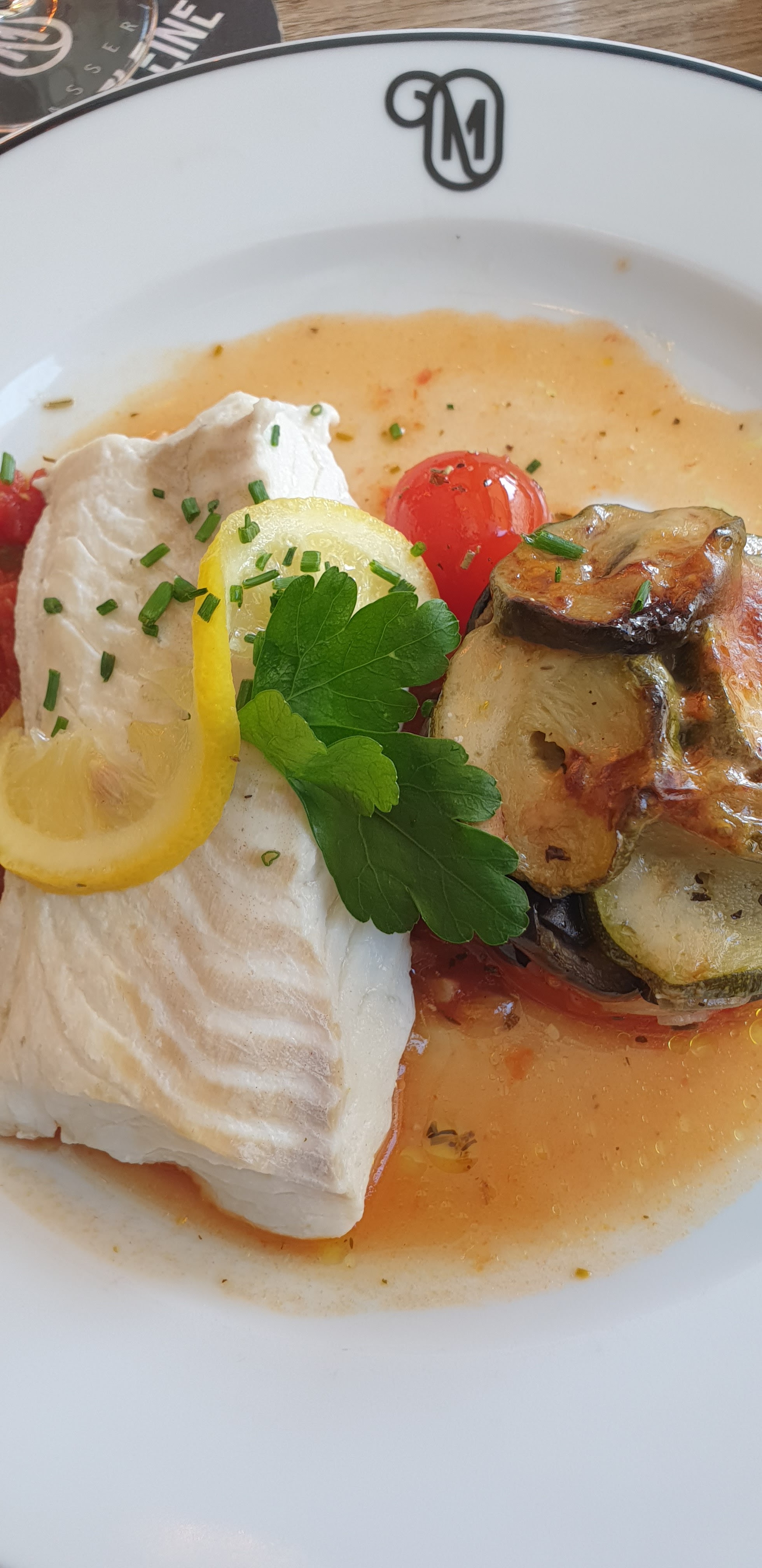 Nous avons eu une table comme convenue sur la terrasse à côté des bambous c été très agréable. Niveau plat dos de cabillaud avec son tian de légumes très bon, poisson cuit à la perfection..par contre j aurais mis le plat dans une cassolette car l assiette n est pas adéquat au plat proposé. Petit bemol, j'ai pris une frite pas très cuite et 2,50€ un peu cher pour la quantité, après j'ai pris un café gourmand ki été très bon mais un peu cher, ils devraient rajouté un 4ème dessert. Sinon rien à redire