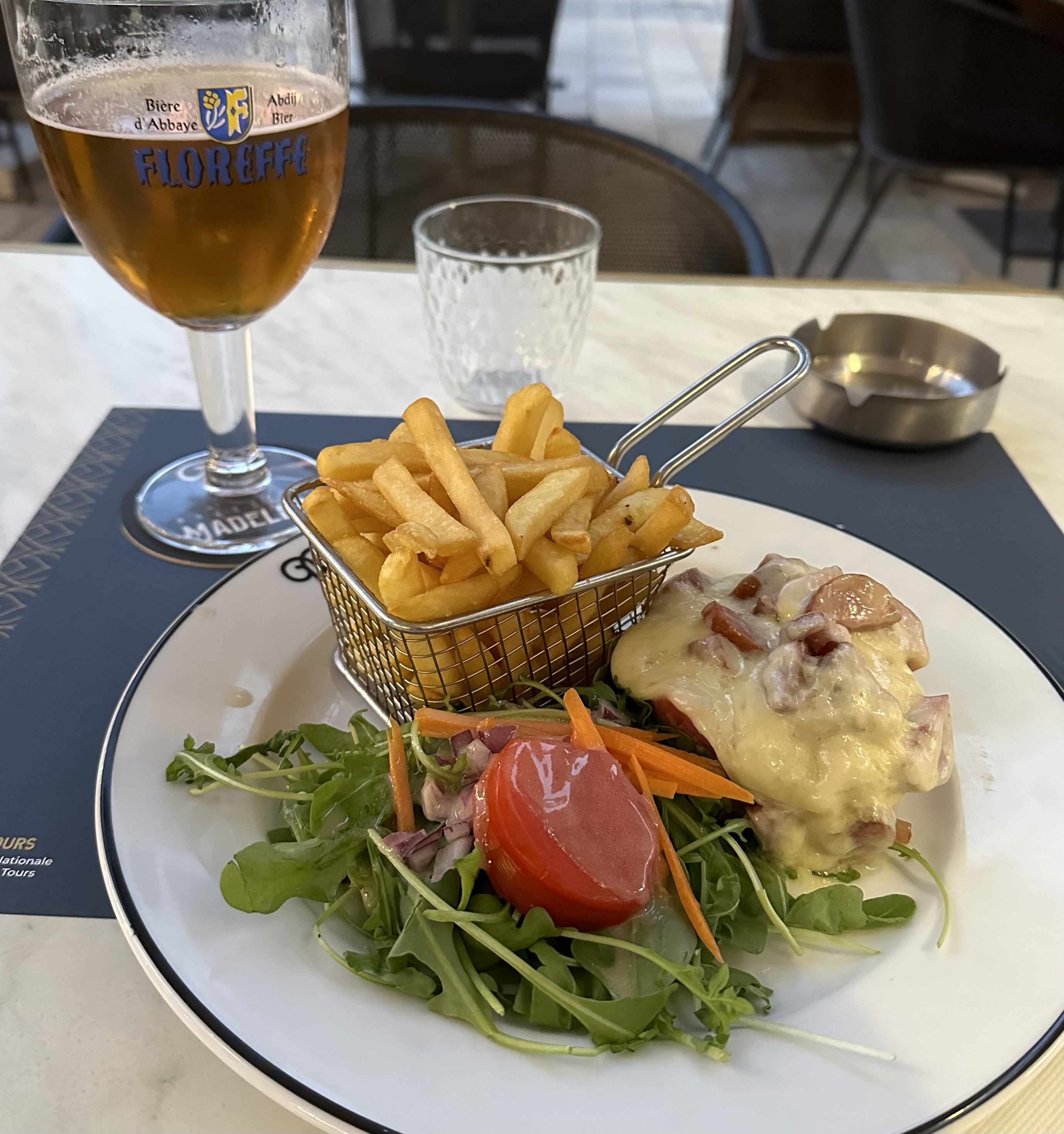 Grande Brasserie au coeur de Tours. Beau design, grand menu pour la nourriture et les boissons. Prix moyens plus élevés. Chaises hautes pour enfants disponibles. Accessible aux fauteuils roulants. Nous avons visité un dimanche soir et avons connu un démarrage de service très lent. À mesure que davantage de serveurs arrivaient (après 18h30), le service reprenait. La nourriture est arrivée très vite et était bonne. À partir de 19h00, il y avait beaucoup de monde et c'était très exigu. Il était difficile d’attirer l’attention du serveur car il y avait beaucoup de monde et il était visiblement très occupé.