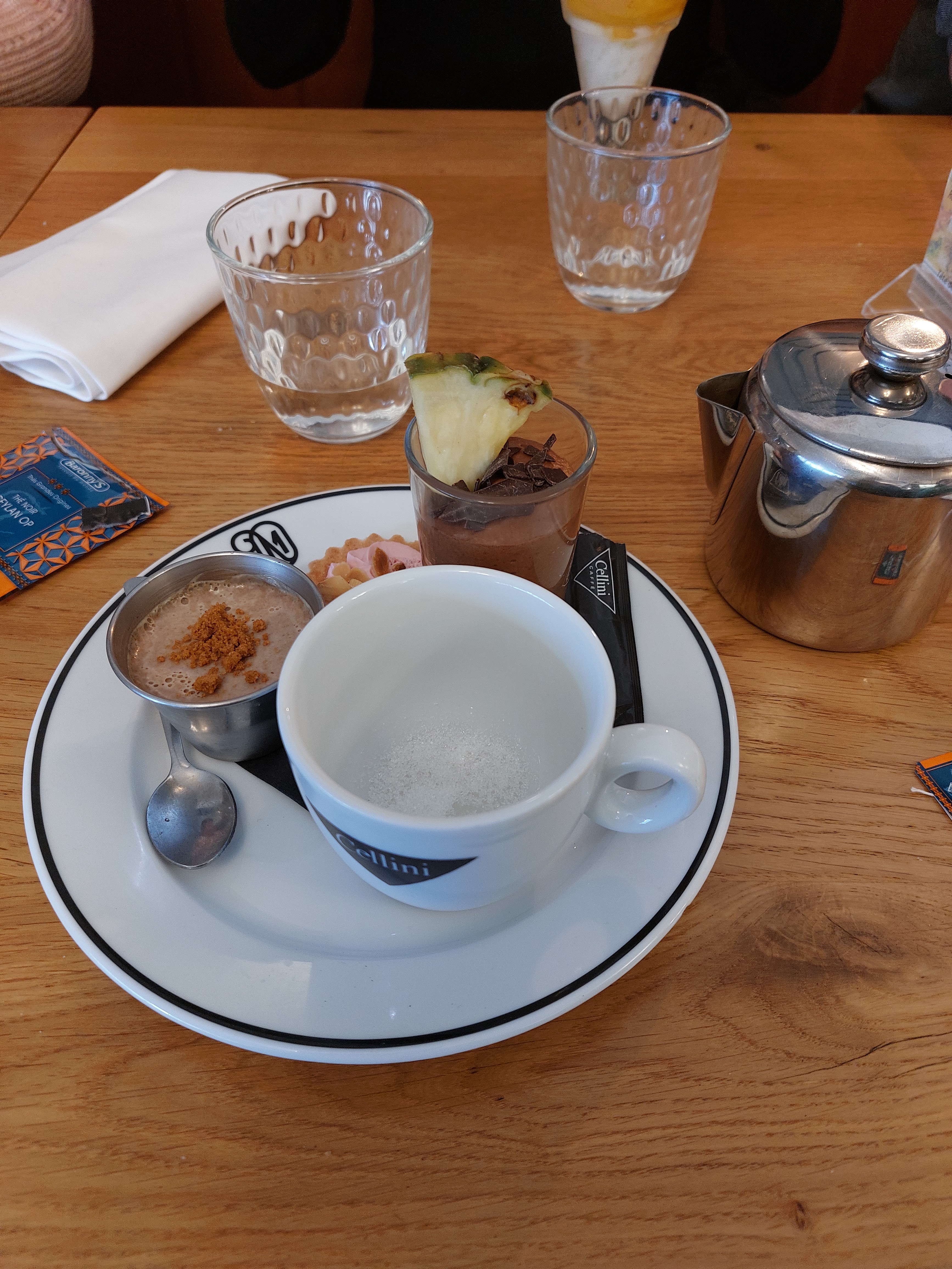 Un peu long pour la prise de commande, nécessité de demander plusieurs fois la même chose, un peu oublié pour le café. Le personnel de service semblait débordé mais restait aimable malgré tout.