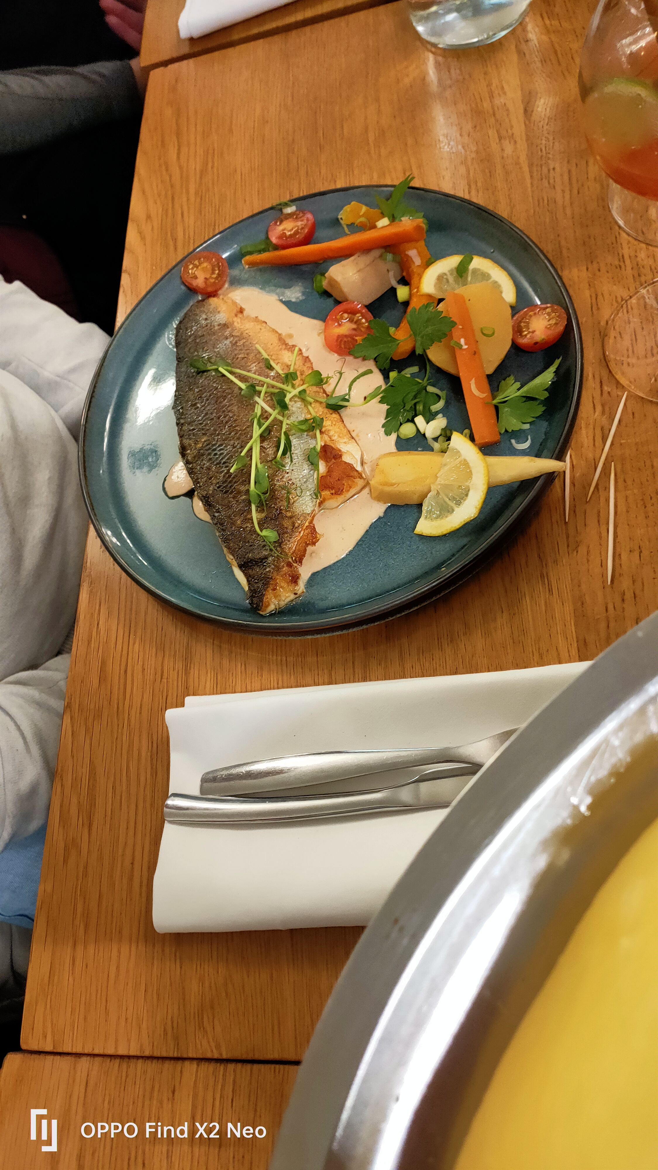 Les huîtres claires étaient bonnes et fraîches. Les plats étaient moins bons : - la choucroute de la mer n’était pas bonne, le chou était insipide, le saumon archi cuit - mon plat suggestion du chef, le bar était bon certes mais ça ne valait pas du tout 30€. Les légumes « d’antan » étaient froids, c’était décevant Mention spéciale pour notre serveuse qui était adorable