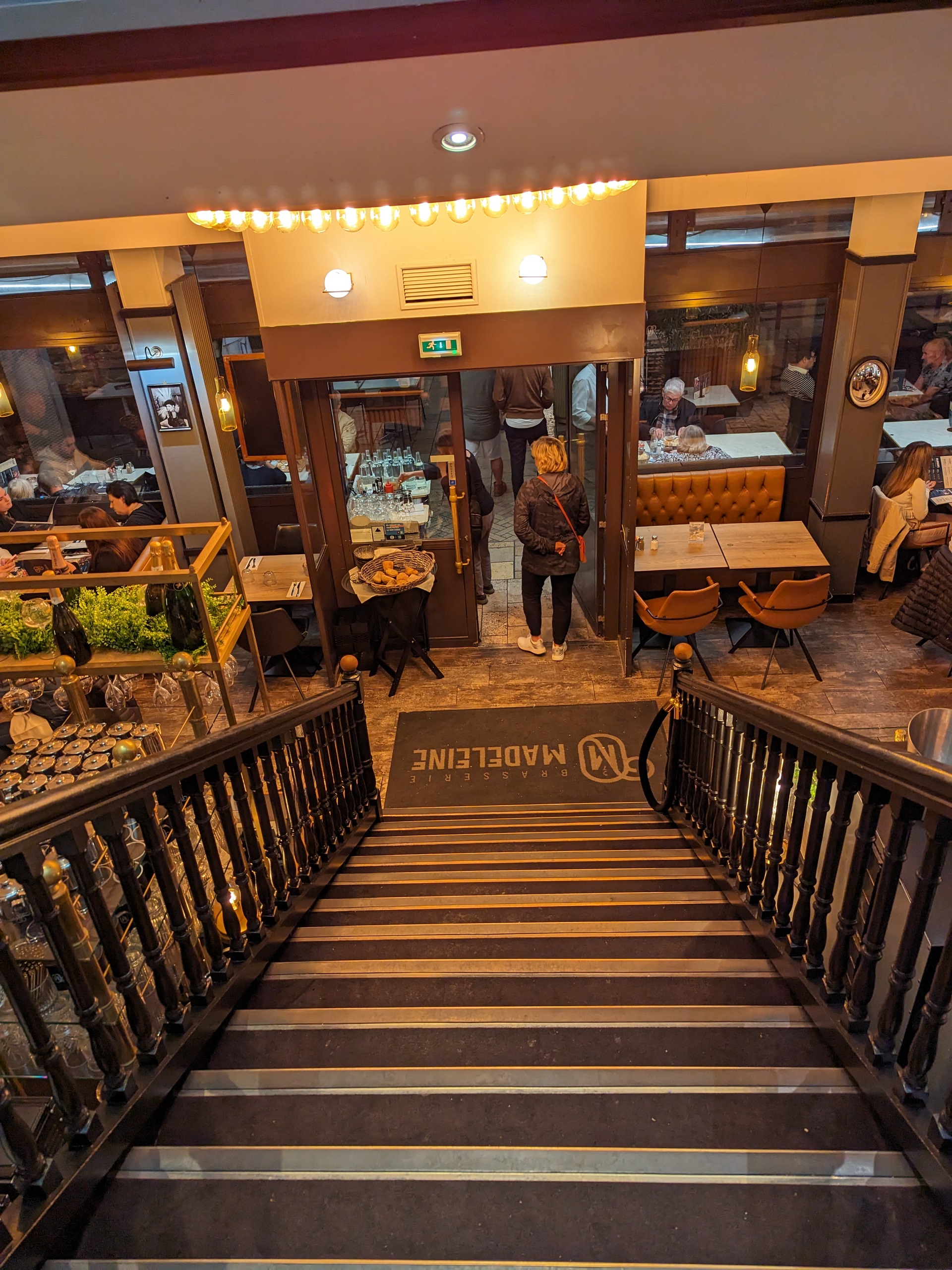La Brasserie Madeleine était vraiment dommage, principalement à cause du service. La nourriture était moyenne dans tous les domaines, à l'exception du steak qui était bien en dessous de la moyenne. Mon steak « mi-saignant » a fini par être à la fois mi-saignant, saignant et bien cuit (chaque partie de la viande était cuite différemment !), quelque chose que je n'avais pas encore vu avant ce repas. La sauce avec le steak était essentiellement du beurre et le tiramisu n'était pas un tiramisu, mais plutôt un pot de crème. Le service est ce qui m'a vraiment bouleversé, car nous avons été traités de manière très étrange dès le moment où nous nous sommes assis. Mon copain et moi sommes tous deux noirs et au début de la vingtaine, ce qui pourrait expliquer pourquoi nous étions presque « surveillés » en mangeant… C'était incroyablement malheureux à voir : dès que nos cuillères touchaient le fond du pot à dessert, nous étions appelés pour venir payer immédiatement. Le restaurant n'était pas plein, ni sur le point de fermer, nous avons donc trouvé la surveillance et la précipitation pour nous faire payer plutôt étranges. Il y avait aussi un serveur qui formait un membre du personnel plus jeune ce soir-là et l'humiliait devant tout le monde, élevant la voix lorsque le membre du personnel avait quelque chose de mal. Cela nous a mis encore plus mal à l’aise. Dans l'ensemble, nous avons eu une mauvaise expérience à la Brasserie Madeleine et ne la recommanderions pas.