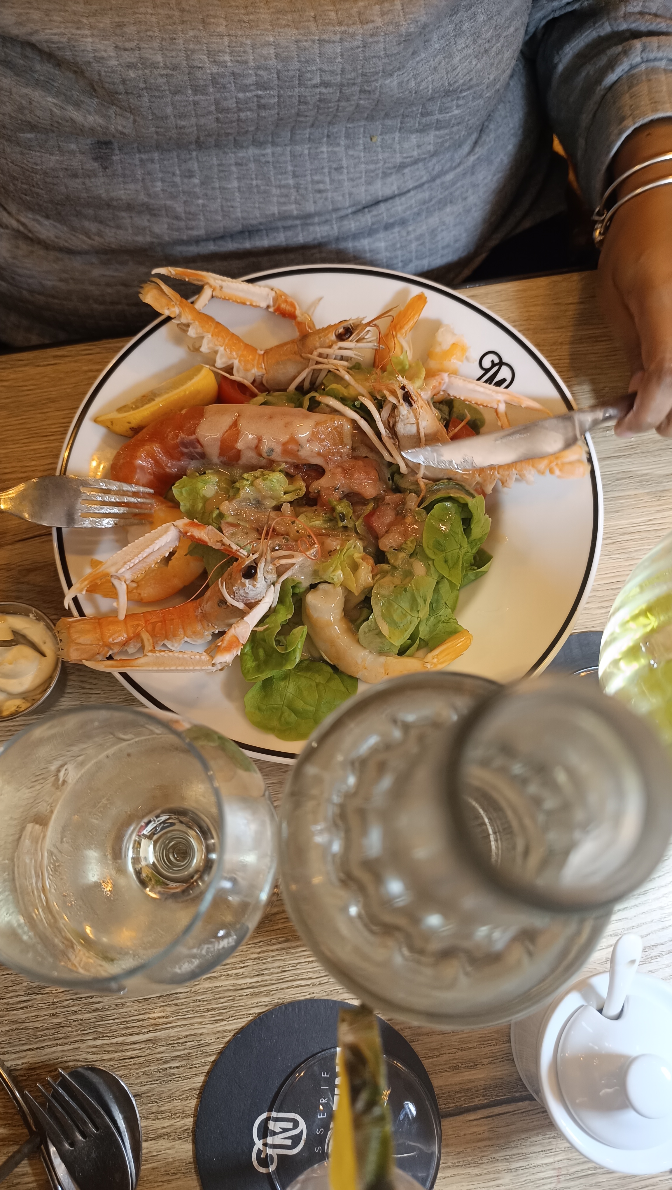 Quel bon repas c'était, une énorme épaule de porc de 1 kg était divine et la meilleure moitié occupait la moitié de la table avec ses crustacés. J'y retournerai
