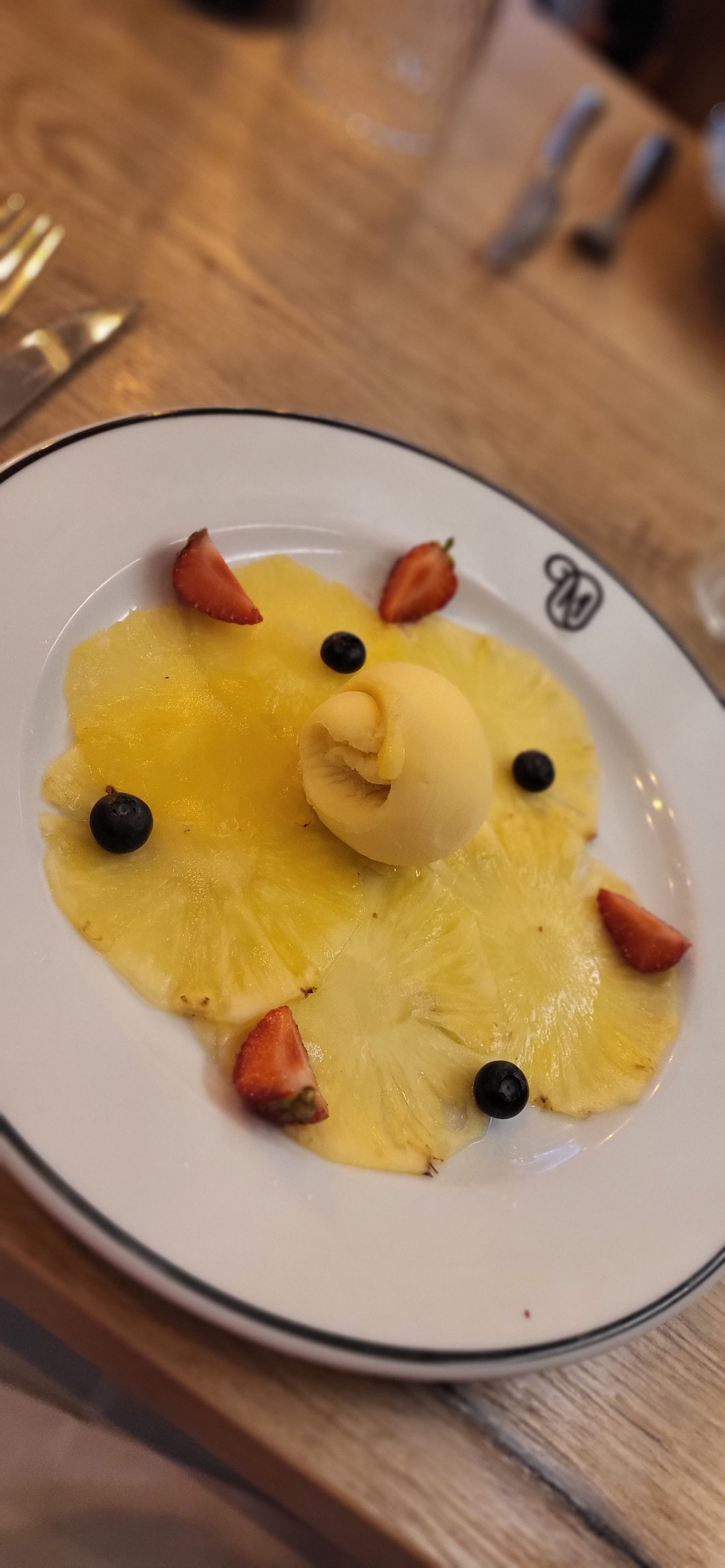 Repas de séminaire d'entreprise, le 18 mars 2024, l'occasion de découvrir cette très belle brasserie ! Très bon accueil, lieux accueillants également. Personnel agréable, et surtout, parce que l'on y va pour manger : une très bonne cuisine ! Le smoothie frais en dessert, une tuerie ! Cette petite crème légèrement mentholée et les morceaux de mangue, servis dans un verre en forme d'ananas, c'était super ! Je recommande à 100%, mes collègues de TDF ont aussi beaucoup apprécié. Bonne adresse ! Merci!