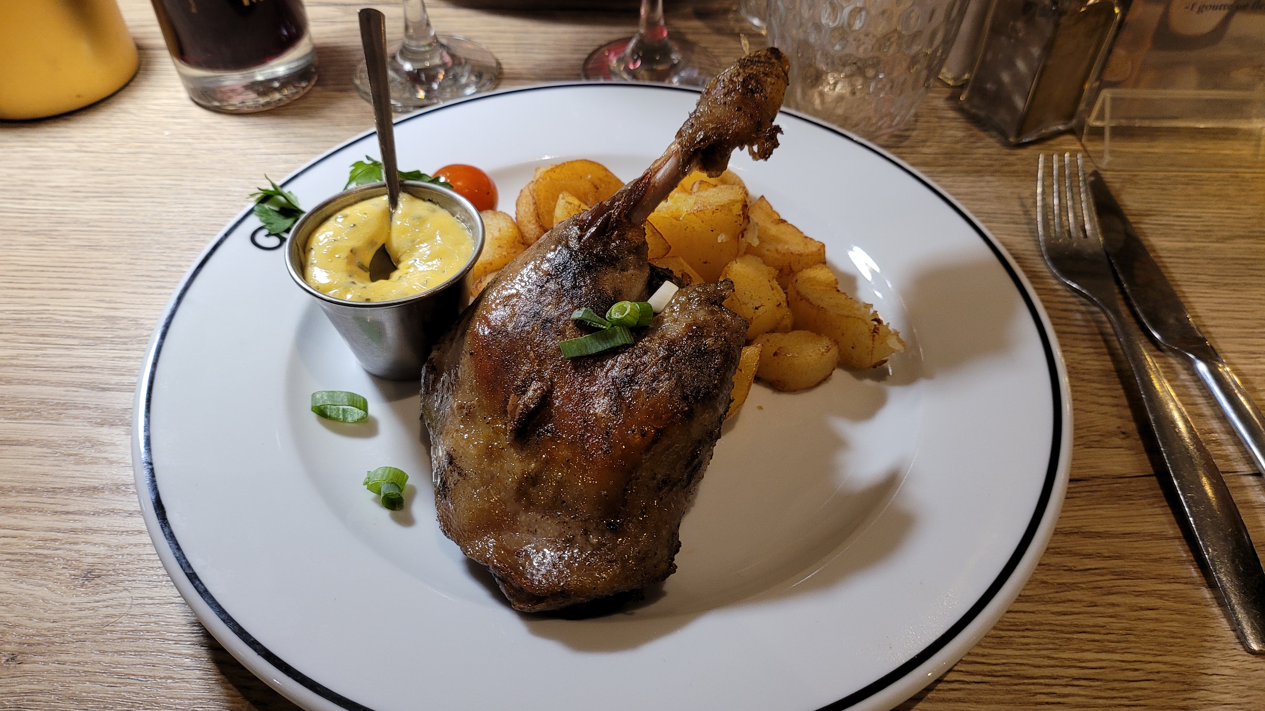 Nous y sommes allez le dimanche 17 décembre. Passage sur Tours pour le marché de Noël. Vitrine du restaurant très belle. Attire beaucoup. Nous avons été servis par Gwenaëlle. Serveuse au top ! Souriante, rapide et serviable. Nous avons demandés de ramener l’os du jarret pour notre chien, elle nous l’a placé dans une barquette carton et re donné. Merci à elle, pour ce bon moment. Dommage que ce soit très bruyant.