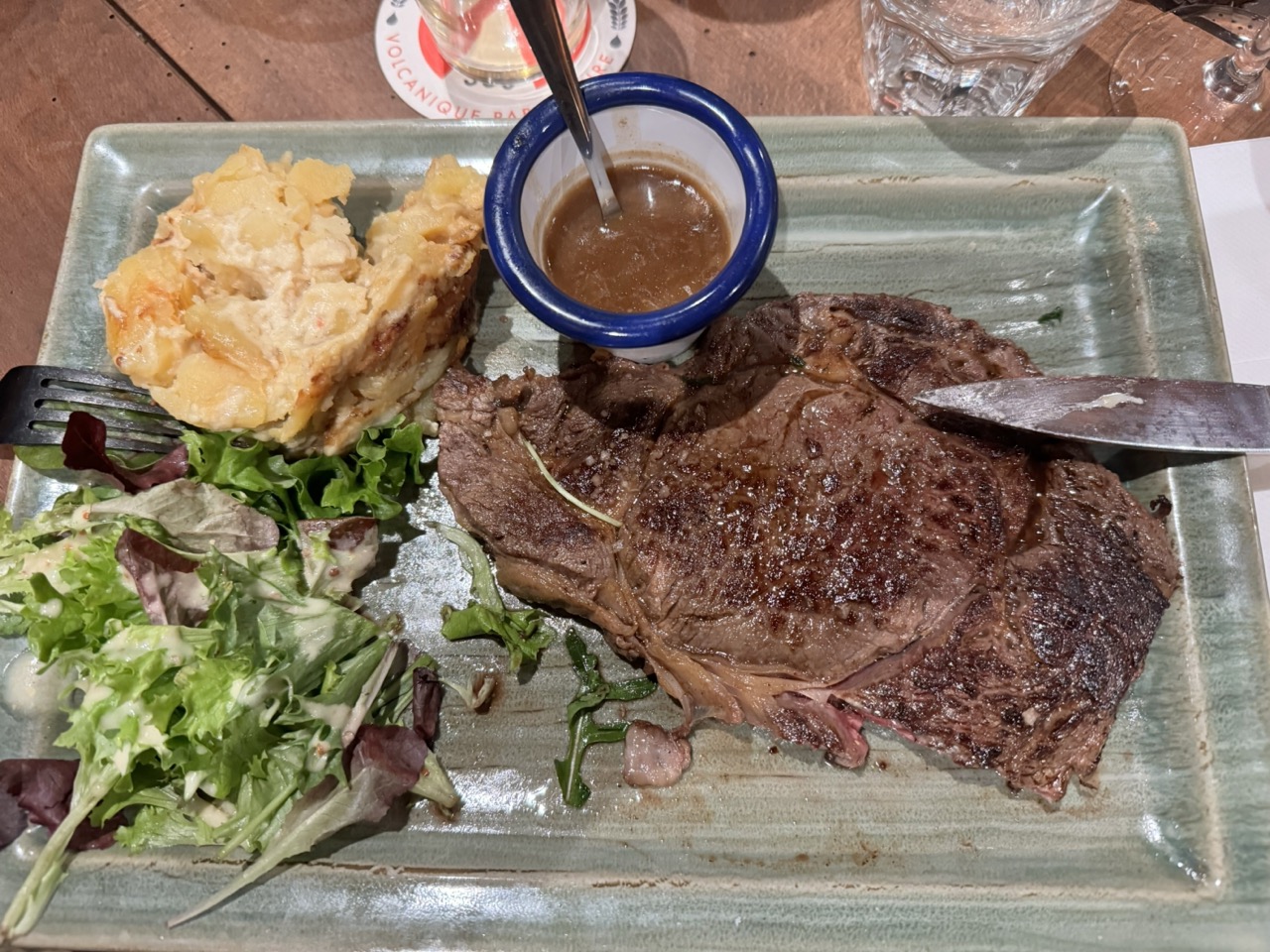Enfin un café-restaurant dans le Cantal où vous êtes accueillis après 13:15 et pouvez déguster d’autres plats savoureux et plein de délicieuses surprises pour les papilles, que la truffade ou l’aligot (qu’on adore par ailleurs). Bravo!