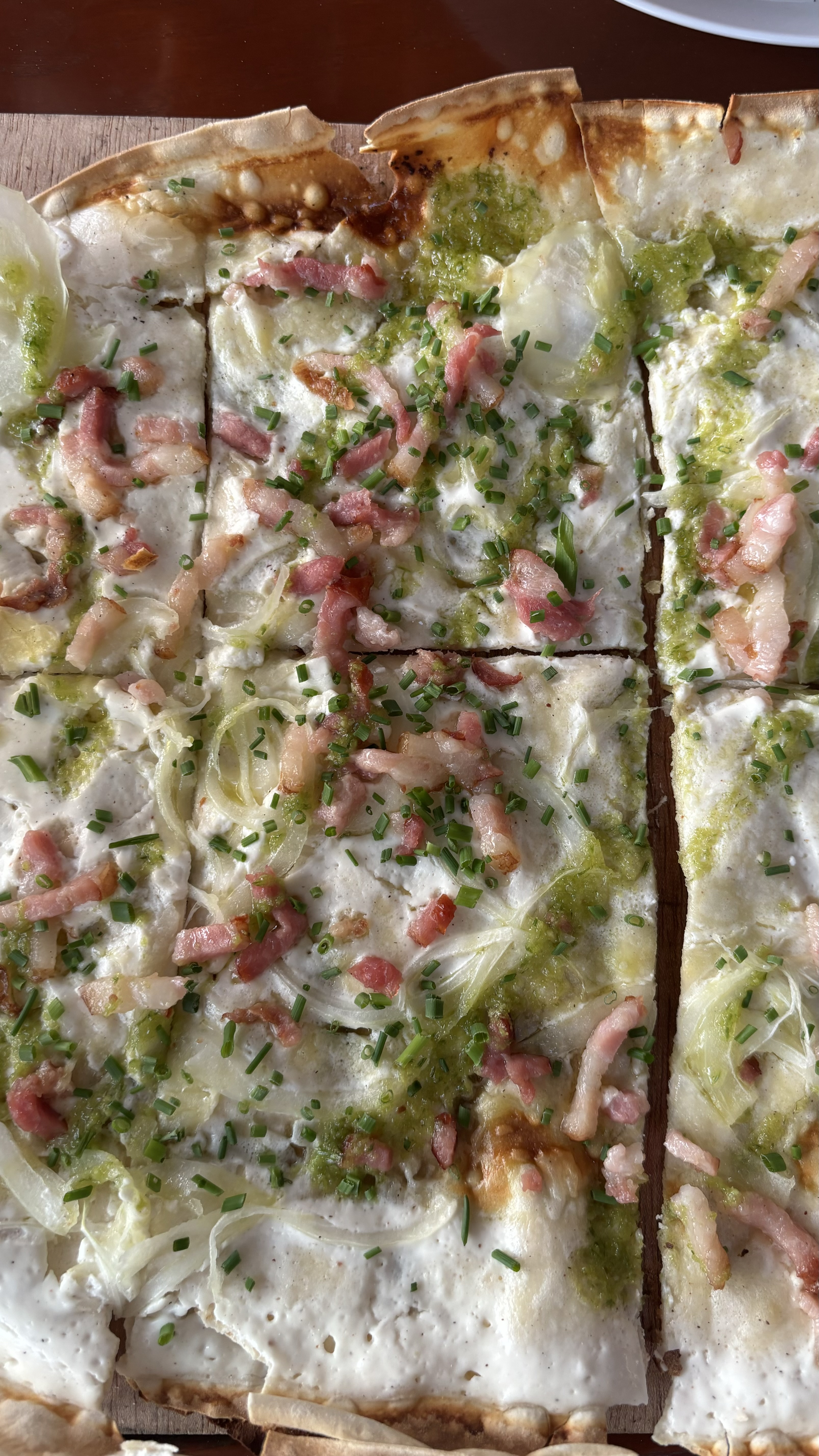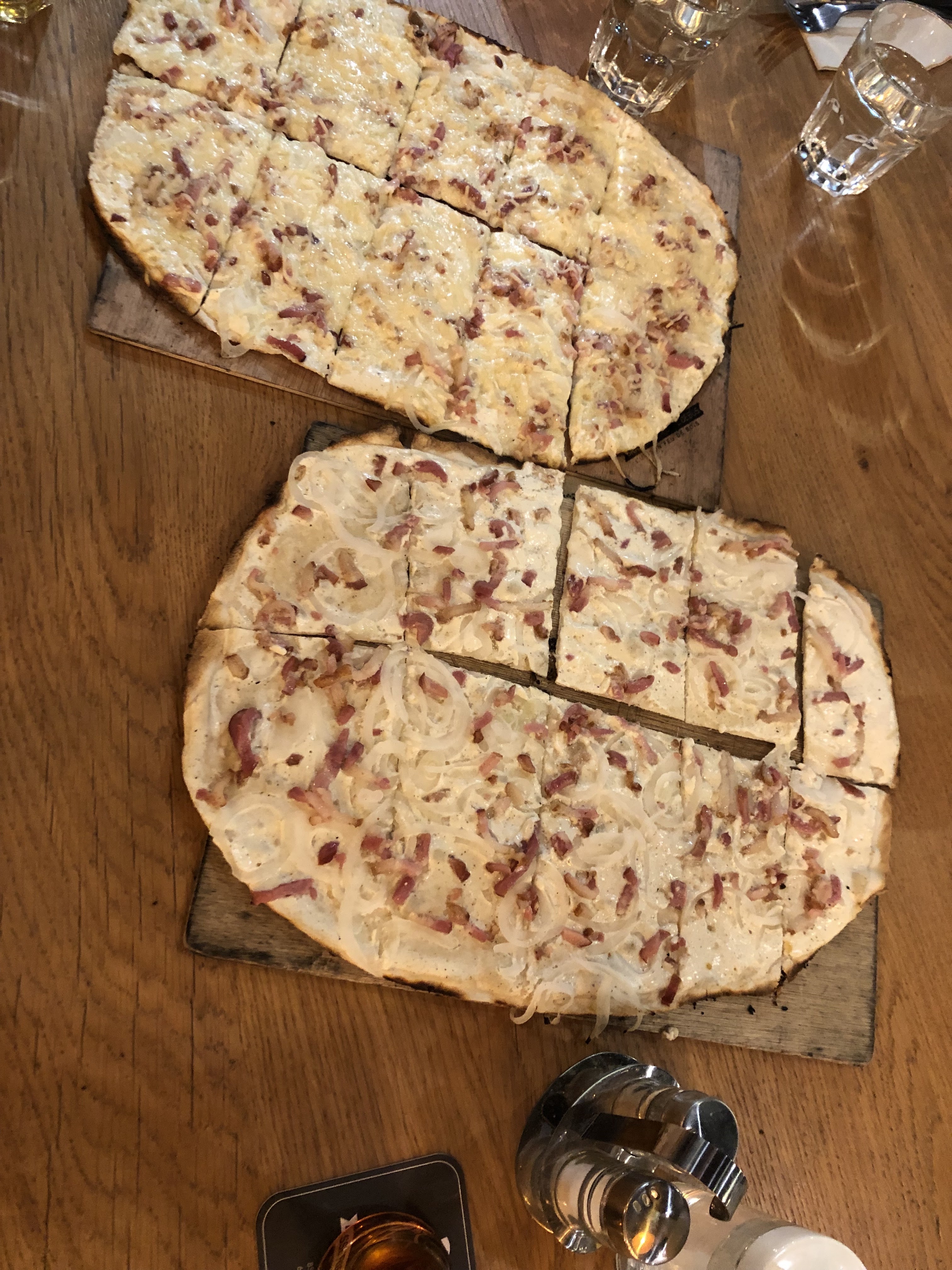 Nous avons goûtés toutes les tartes flambées... nous sommes experts :) ... et nous recommandons cette brasserie. Une tarte un peu plus rectangulaire serait super. Bon et dois-je rajouter que le lieu est convivial par le service et la déco