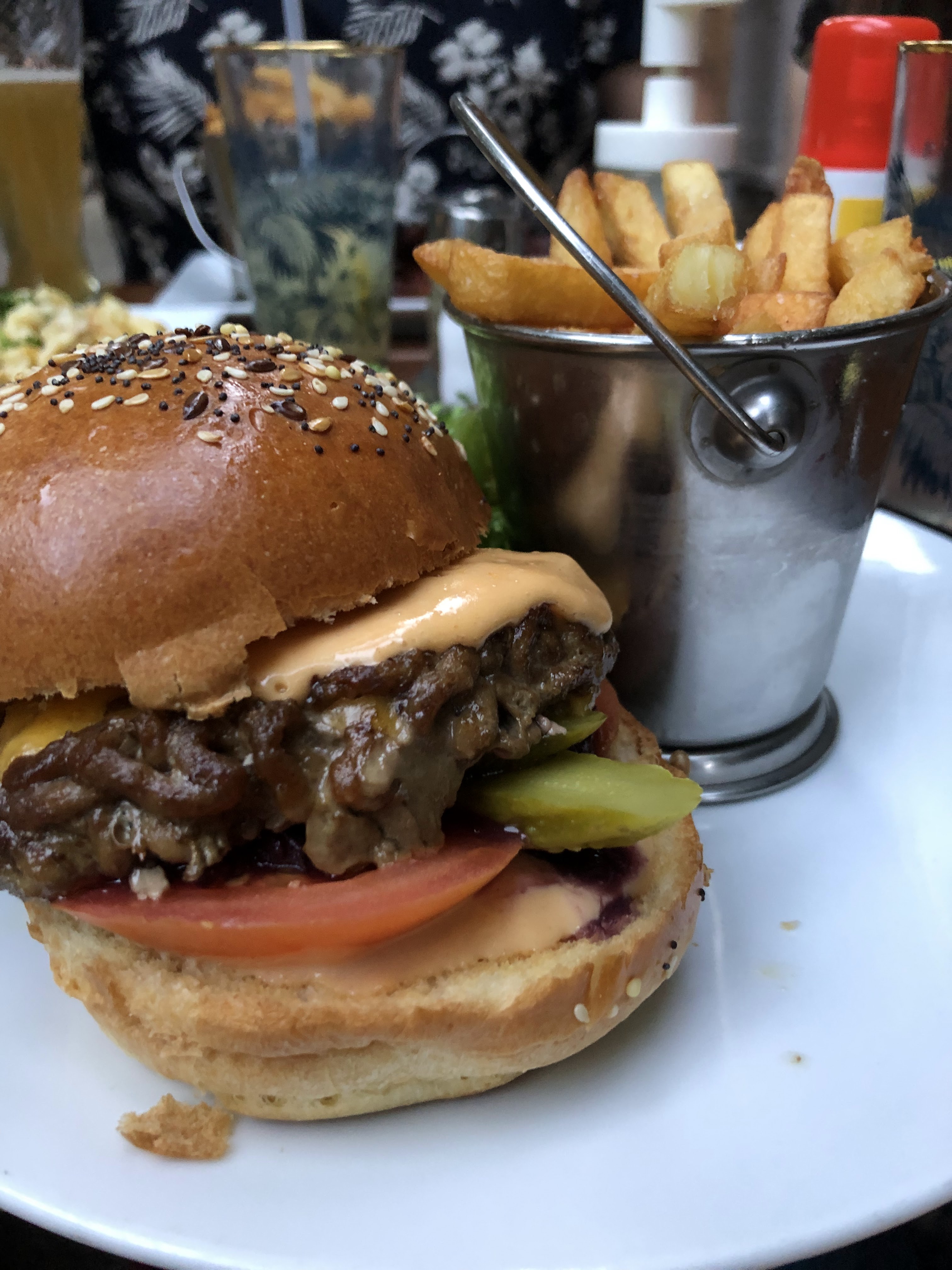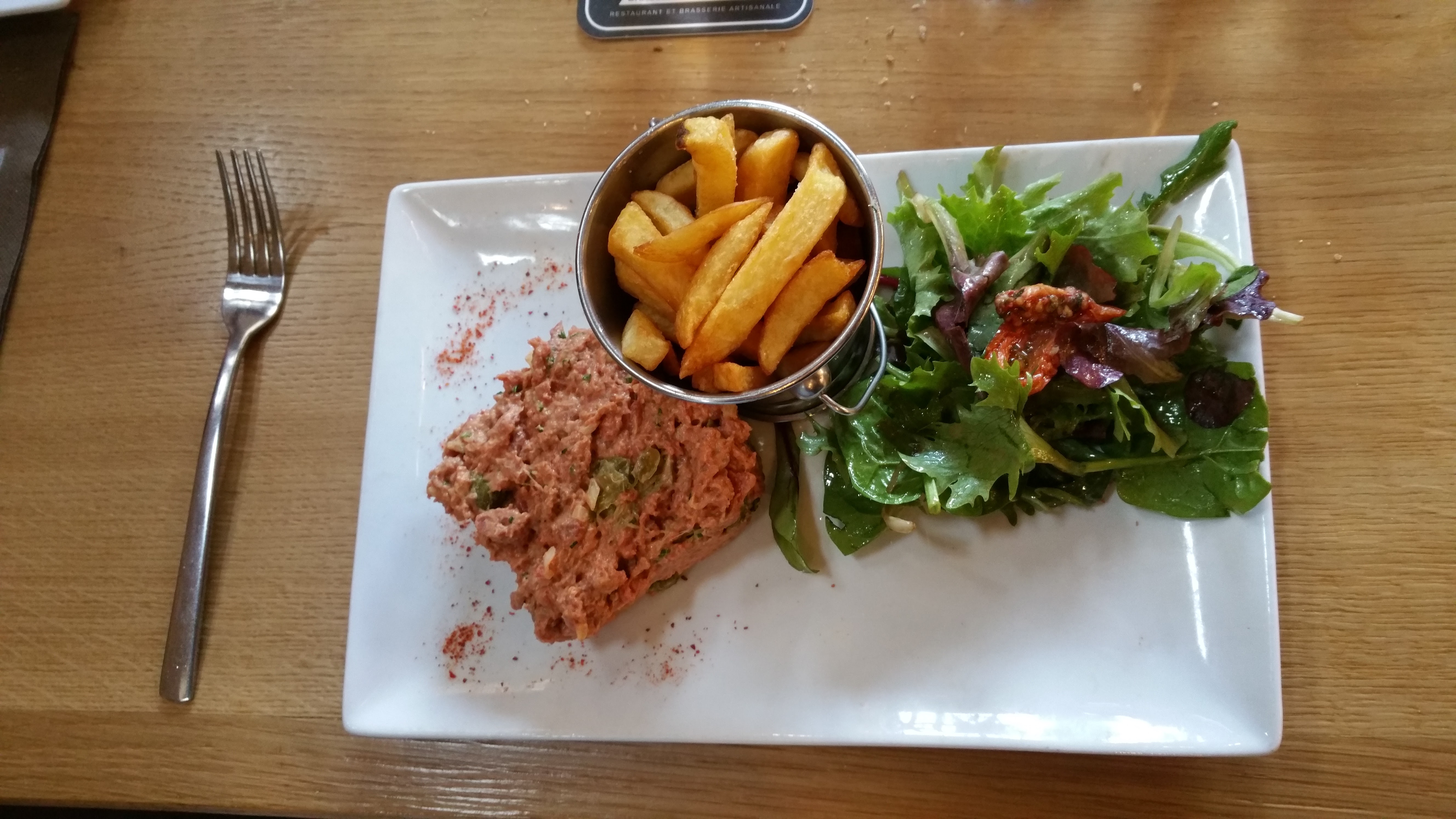 Habitué à venir en soirée pour profiter de la biergarten, je suis venu pour un déjeuner professionnel et cela été une réussite. Tartare de saumon en entrée 3 ou 4 € Le faux filet cuit au feu de bois et ses frites à 9€. C'est un excellent rapport qualité prix. Rajoutez le cadre de la biergarten ,mes clients étaient ravis. Bravo