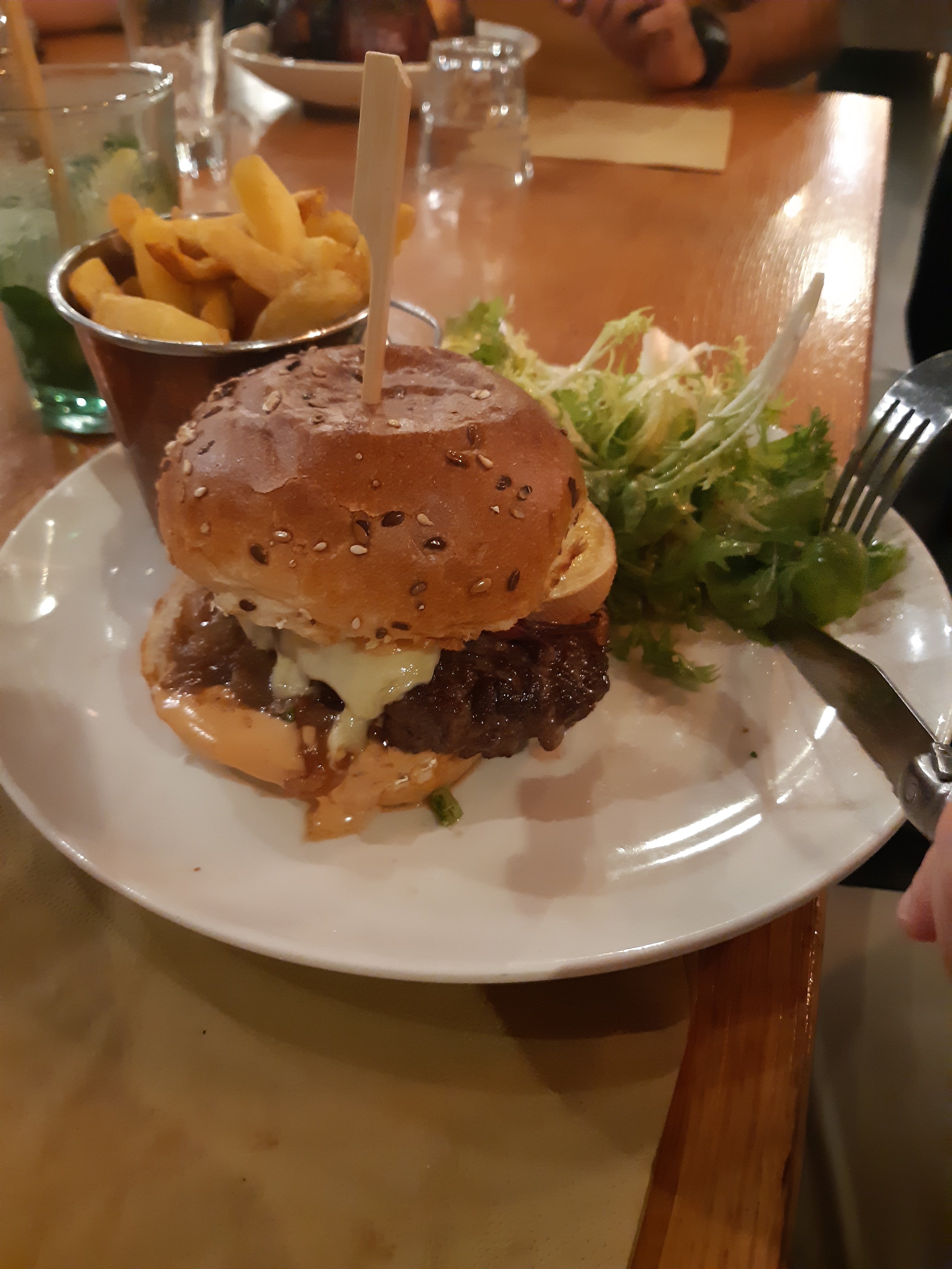 Cadre très sympa et superbe terrasse. Le personnel de salle est très pro, accueillant et souriant. Petit bémol la viande de mon hamburger était vraiment trop cuite et du coup très sèche (j'aurais du préciser peut être la cuisson). Le sucre de la crème brulée n'était pas caramélisée. La tarte flambée était très bonne et la bière pression excellente.
