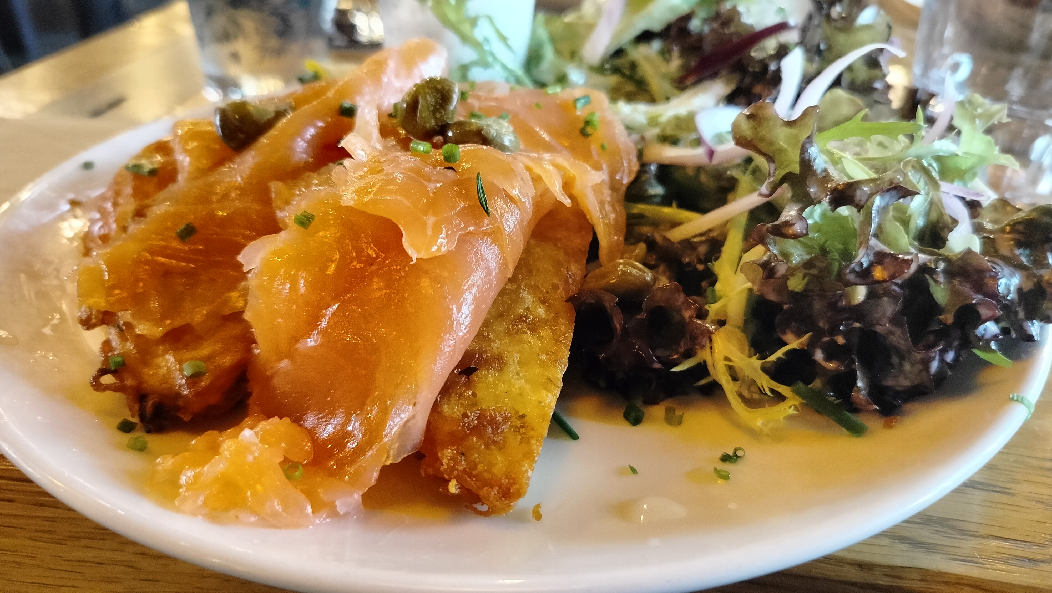 J'ai adoré,personnel charmant,belle déco, ravissante terrasse sur le parc, saumon et galettes de pommes de terre à 15€ bravo !