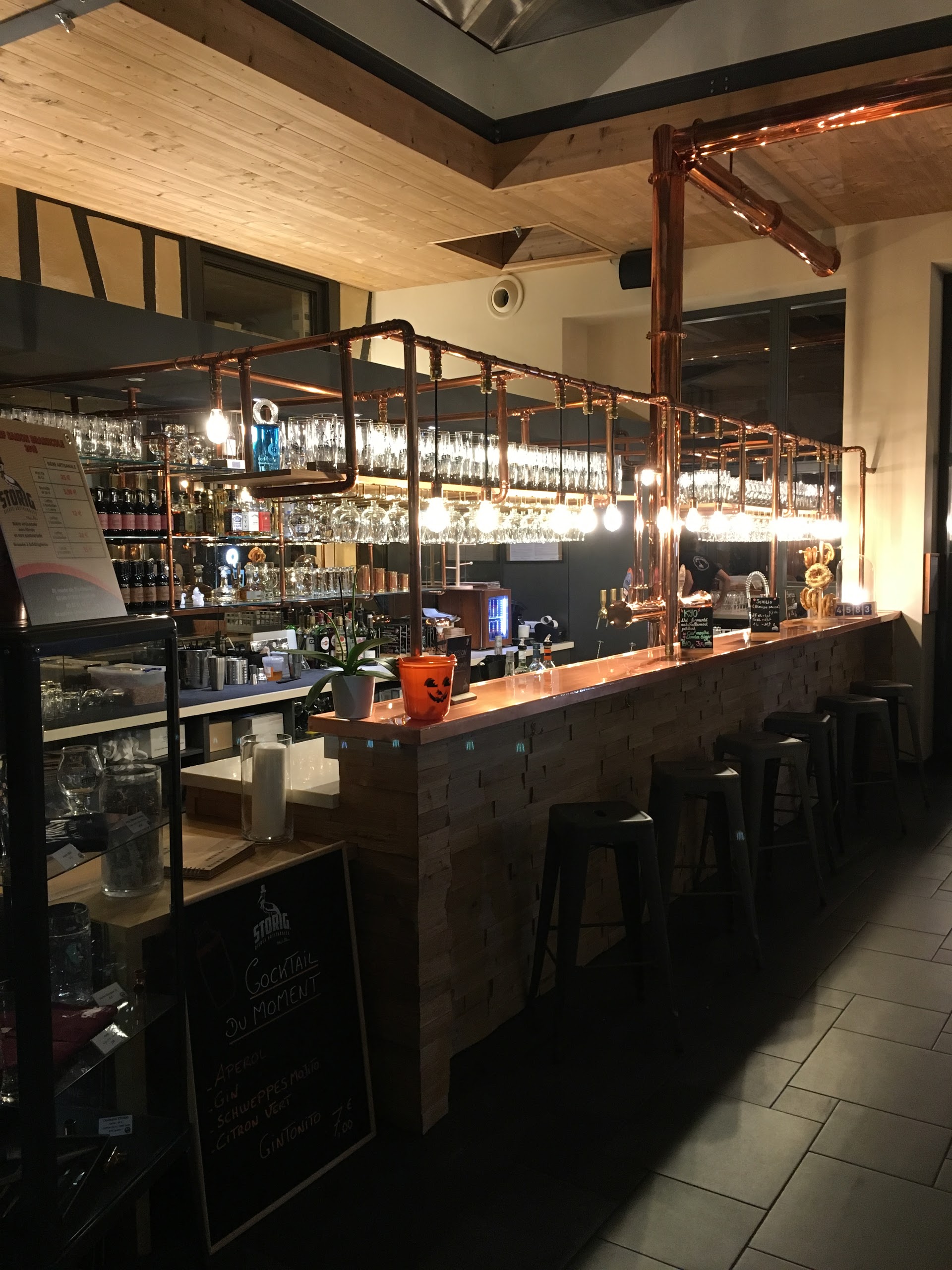 Brasserie extrêmement conviviale !! On s'y sent très à l'aise et extrêmement bien accueilli. La Storig qu'ils brassent eux même est une bière savoureuse qui s'affirme dans diverses déclinaisons bien maîtrisées. Les tartes flambées ainsi que les planchettes, sont idéales pour partager entre amis. Les produits proposés reflète la qualité de l'établissement. La carte suggère plusieurs plats individuels variés, nous les testerons à notre prochaines visites 😜 La décoration rappelant l'univers du brassage apporte un côté chaleureux par ses tuyaux cuivrés aux multiples reflets. Ce côté Steampunk immerge le client aux plus profond du sujet, on ne bois pas une Storig, on la vie. 🤤 Surment la meilleure brasserie au Nord de Strasbourg 👍👍👍 Nous avons passés un agréable moment et vous nous en remercions À très vite