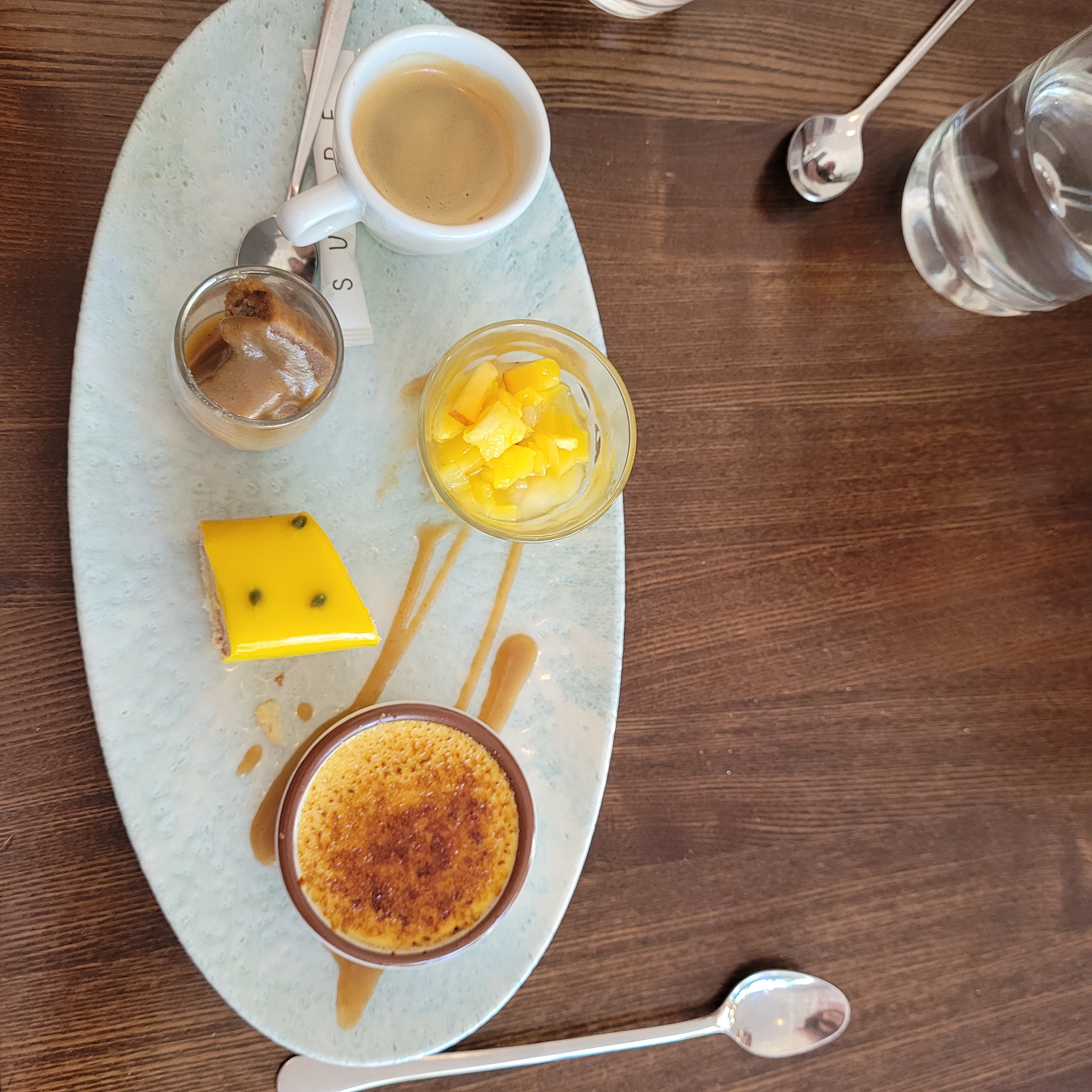 Très déçu de la longueur du service sachant qu'il y avait une réservation, plus de 3 heures (3 h 30) pour un repas : apéritif, plat et dessert sachant que les planches apéritives sont arrivées plus de 20 mn après les boissons ( la préparation ne comporte que de la découpe et peut être réalisé par avance et en 5' maximum). Sinon heureusement, bonne qualité des plats et des desserts gourmands