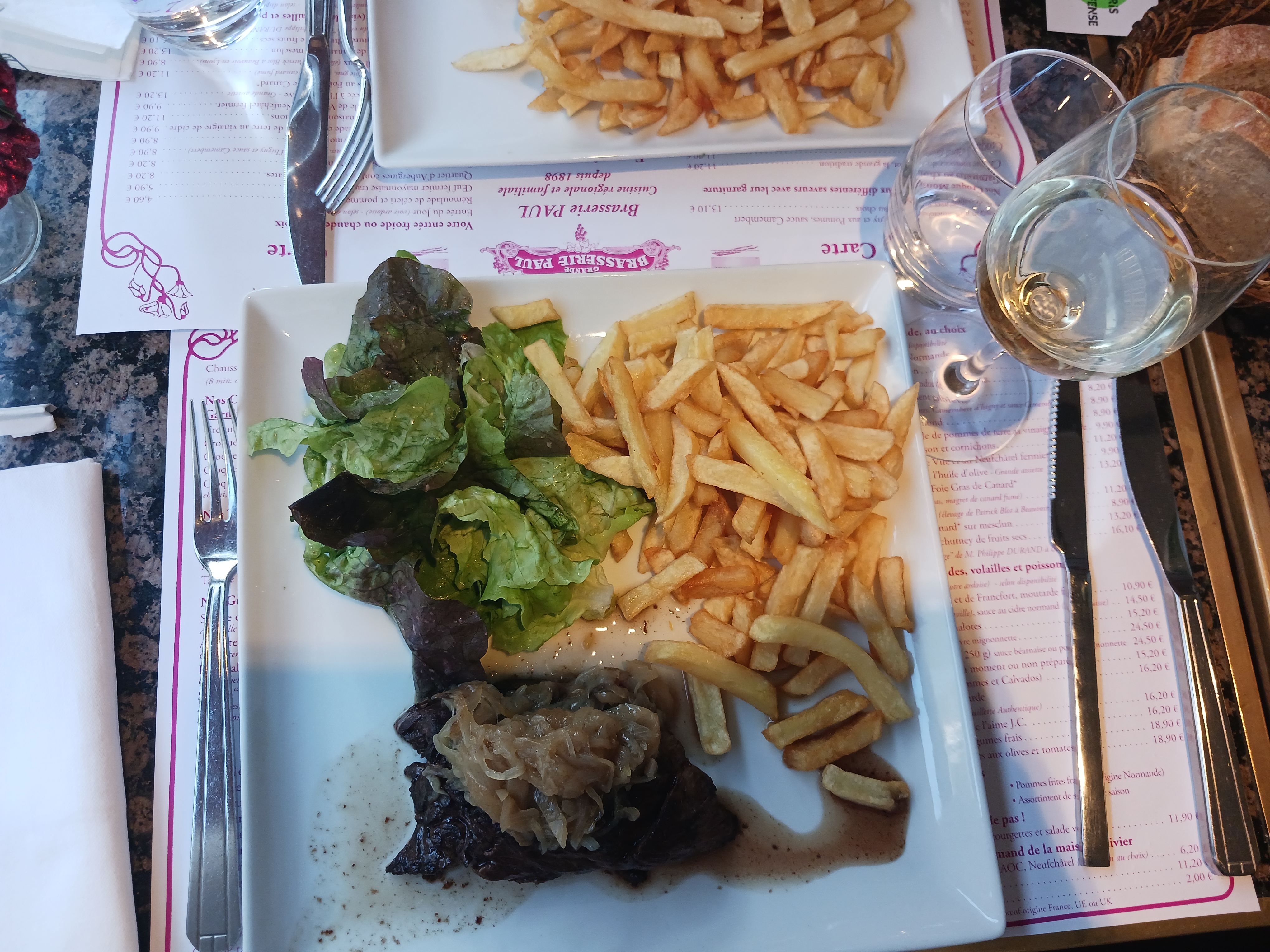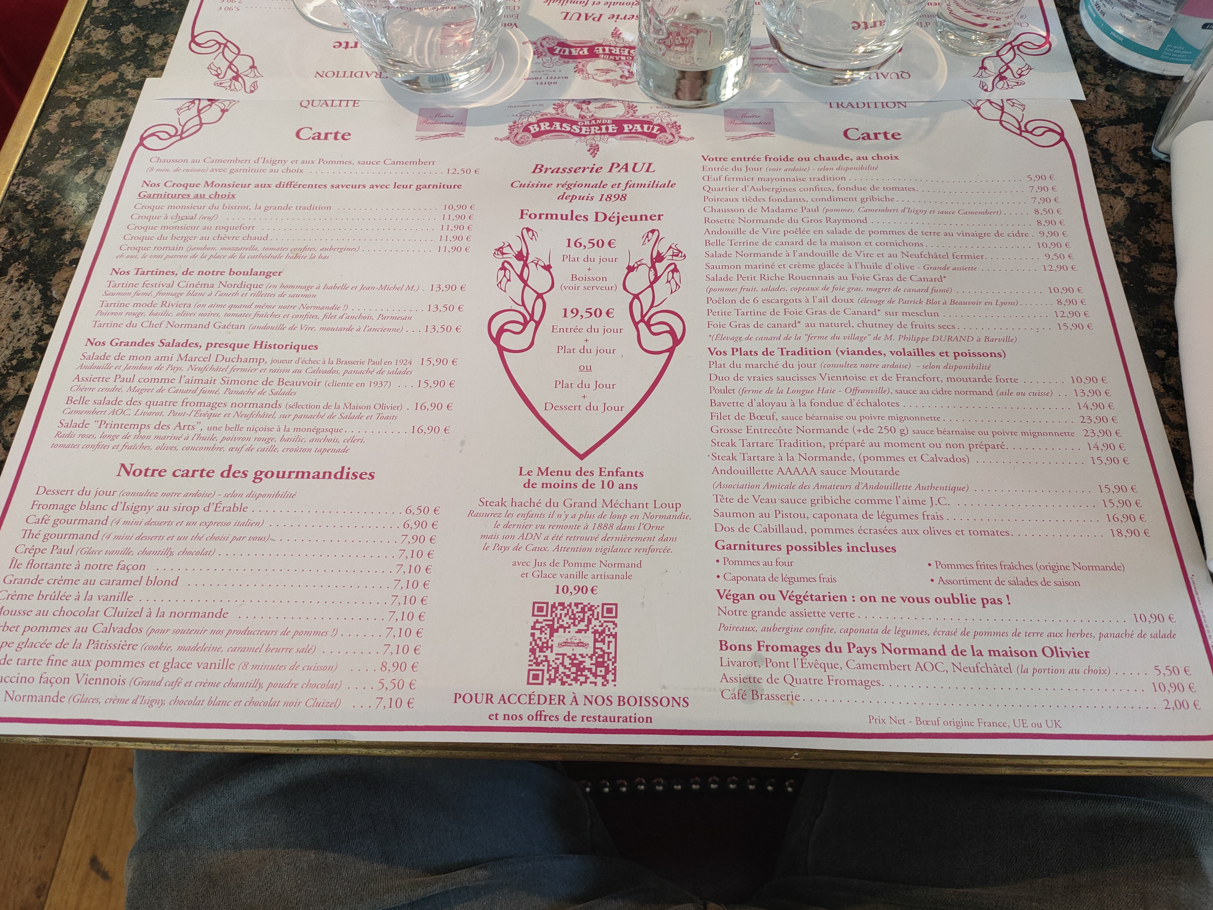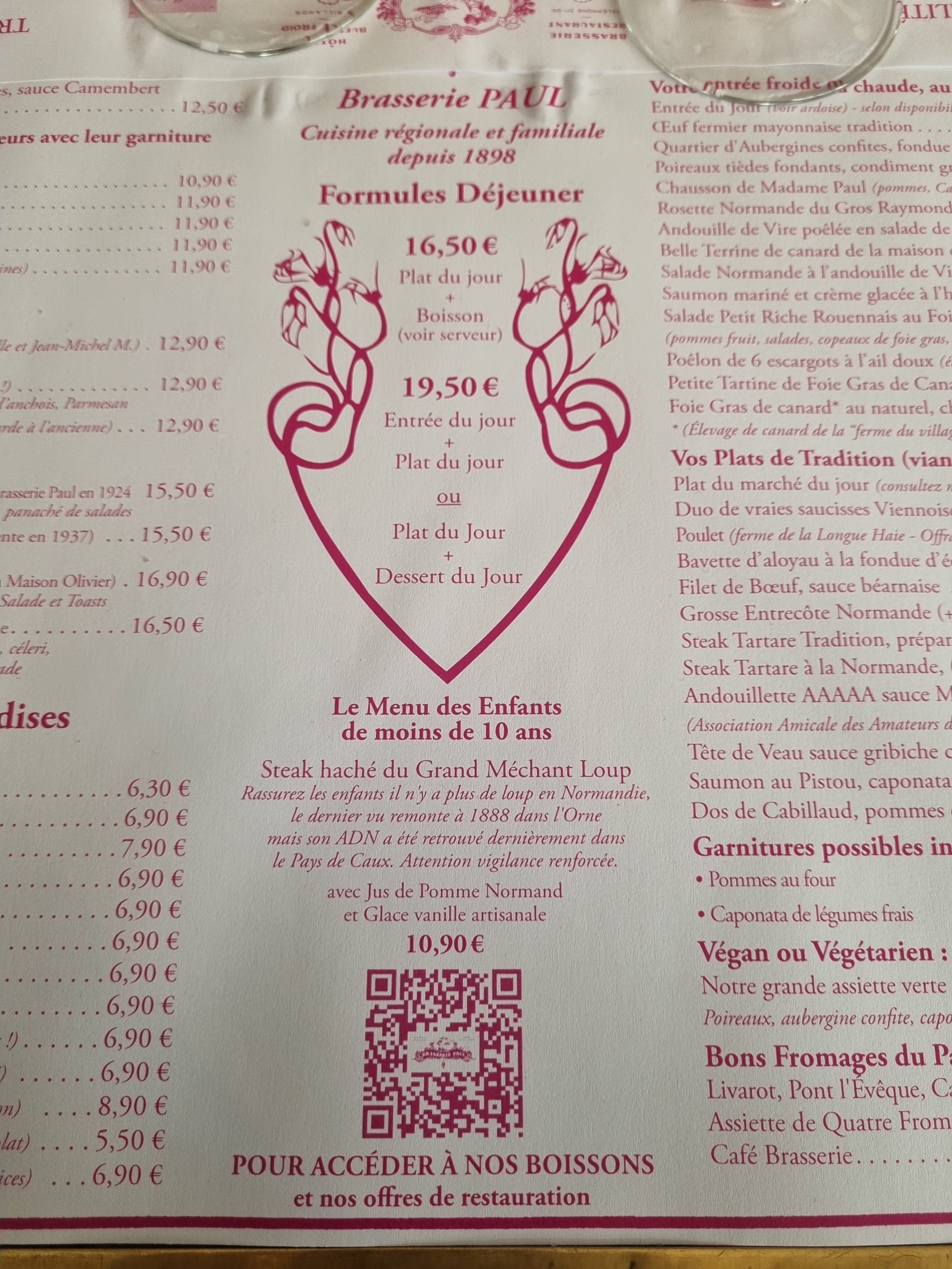 La brasserie Paul ce n'est pas simplement un restaurant c'est une expérience je m'y suis rendu avec l'un de mes amis et le souvenir chaleureux de l'accueil qui m'a été donné me fait encore du baume au cœur. j'ai pris un menu très simple à 20 € entrée et plat du jour et la cuisine savoureuse de cet endroit m'a totalement charmé ! rarement ai'je pu goûter de façon abordable une nourriture française bien traditionnelle et de qualité tout en me faisant respecter en tant que client. Serveur agréable et cuisiniers doués, qu'ils soient fiers d'eux.