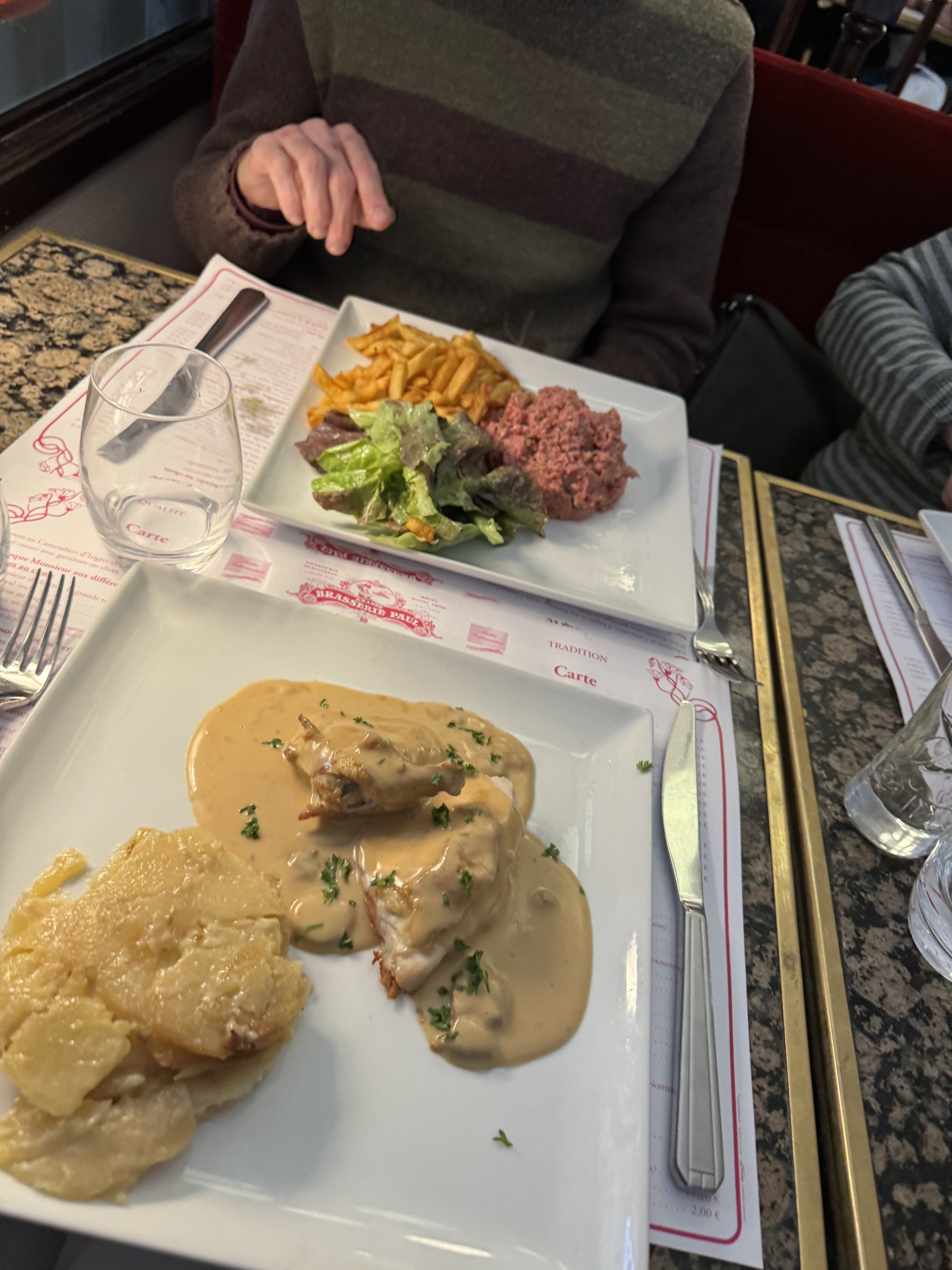 Nous avons pu déguster un excellent repas, servi rapidement comme nous le souhaitions. Les coquilles Saint Jacques étaient divines, la crème caramel excellente. Bref, tout était parfait dans cet établissement chargé d'histoire et toujours charmant. Merci à toute l'équipe. Je recommande la brasserie Paul.