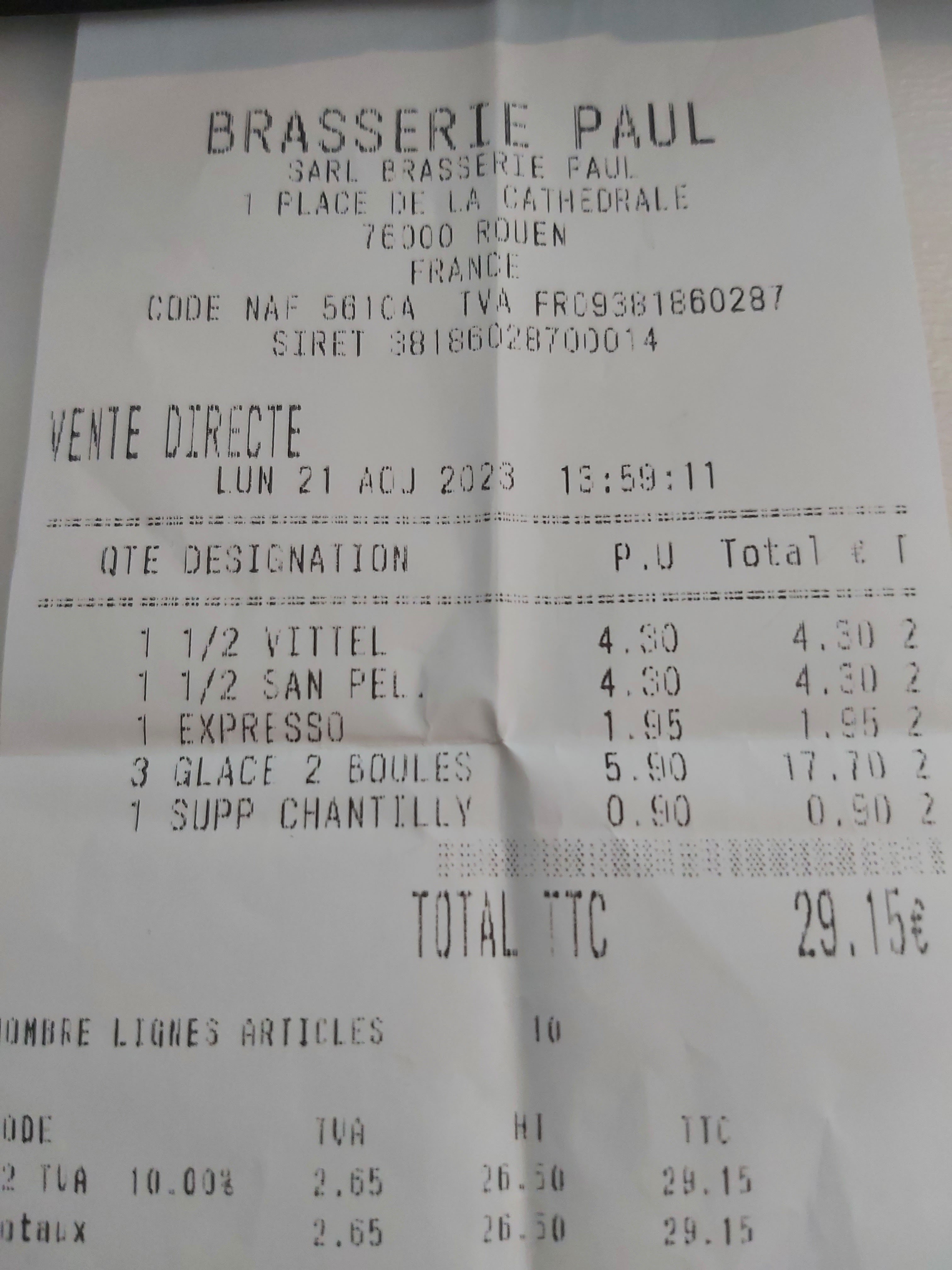 Ce n'est plus la brasserie Paul d'avant en premier lieu de par l'accueil du personnel et la qualité des produits. Ce métier est très difficile et je le conçois mais nous clients qui venons prendre un dessert et une boisson en terrasse n'y sommes pour rien. Un sourire,un regard de nos jours cela ferait tellement de bien . Après,pour la qualité des produits,ce serait aussi à améliorer,une bière doit être fraîche....,de la glace ne doit pas arriver fondue...La sensation de ne pas arriver au bon moment est aussi gênante mais la venue des clients fait fonctionner le commerce ...Cela doit faire réfléchir sur l'importance de l'amélioration continue...