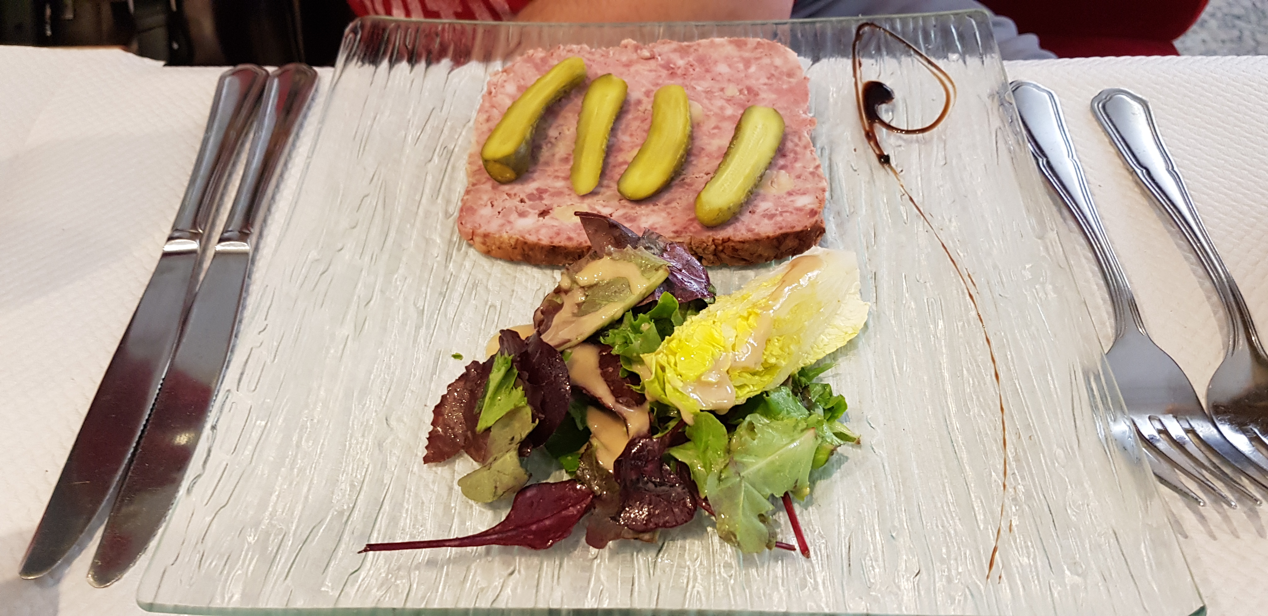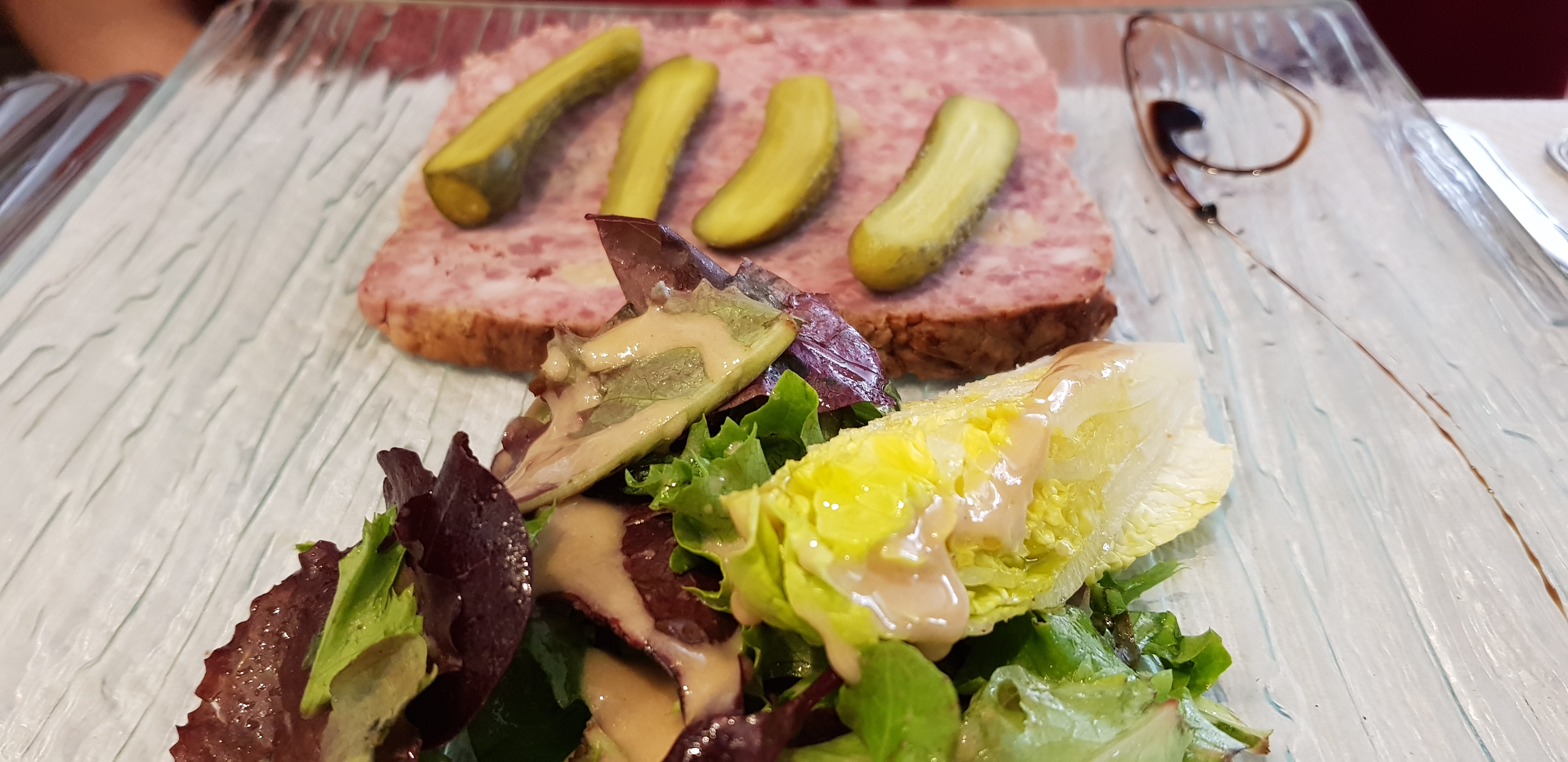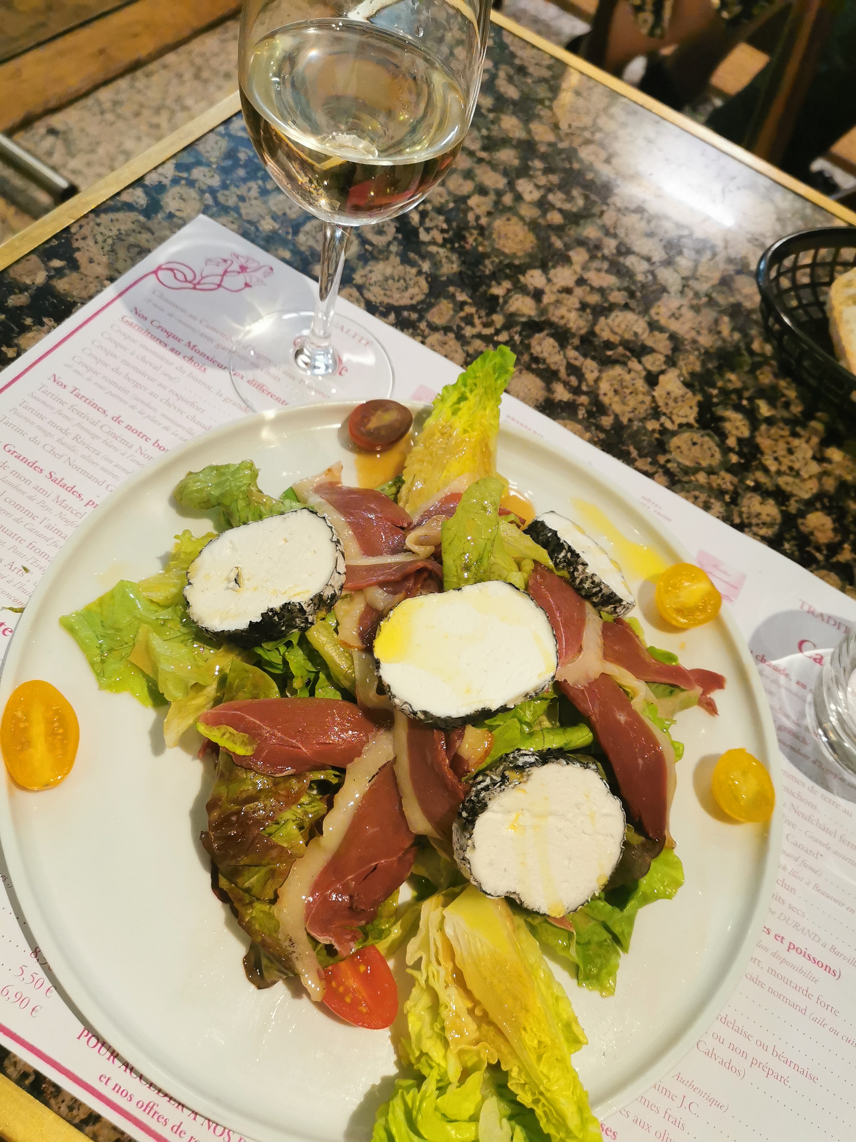 A peine assis ,il faut passer la commande,salade avec2 petits bouts d'anchois ,3 bouts de concombre et le reste sort d'un bocal confit rapport qualité prix zéro