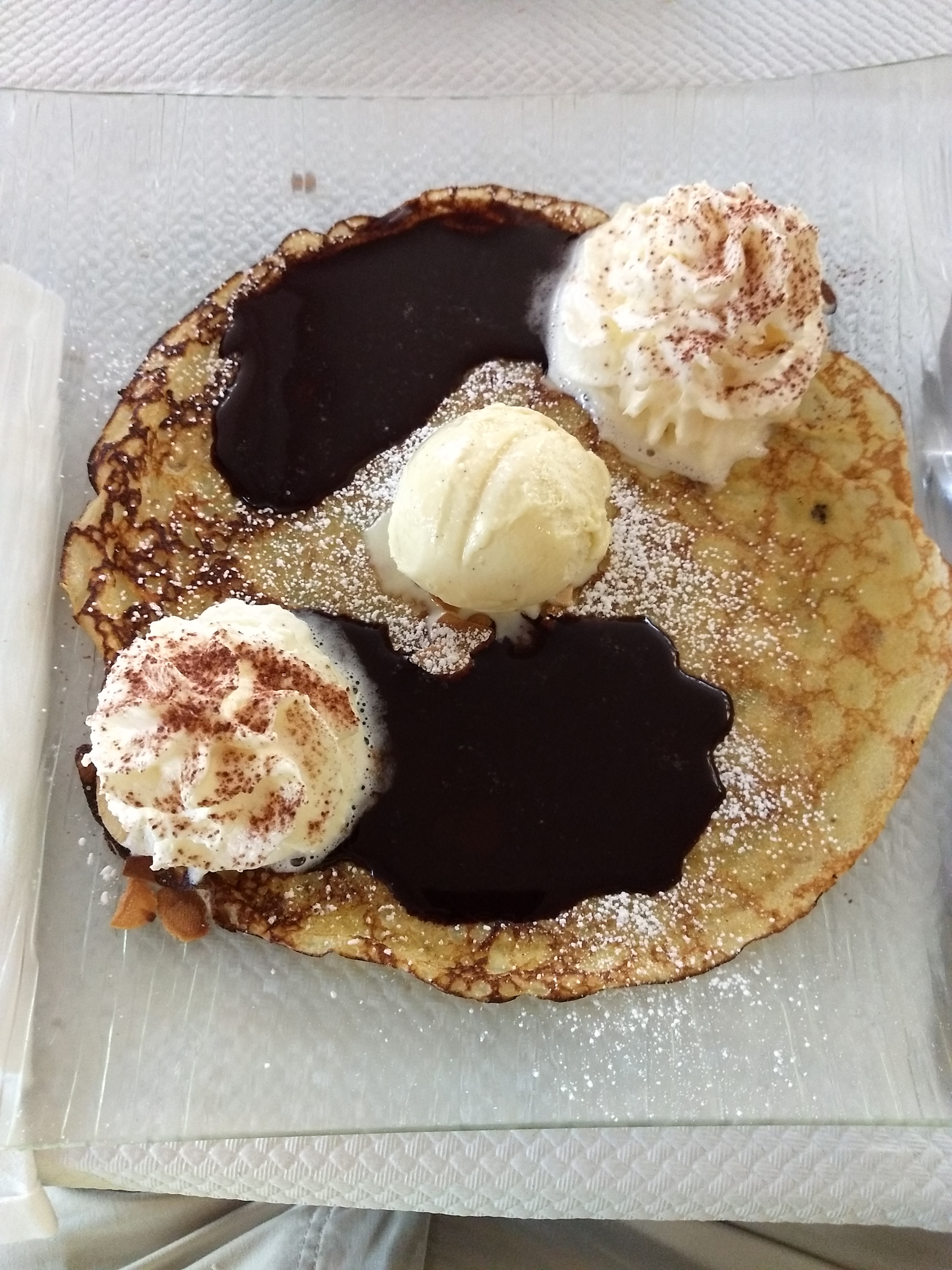 Crêpes probablement industrielles chocolat fondu bas de gamme mais prix haut de gammes pas de soucis de ce point de vue. Première et dernière fois. Je préfère retourner à la P'tite Jeanne à coté.