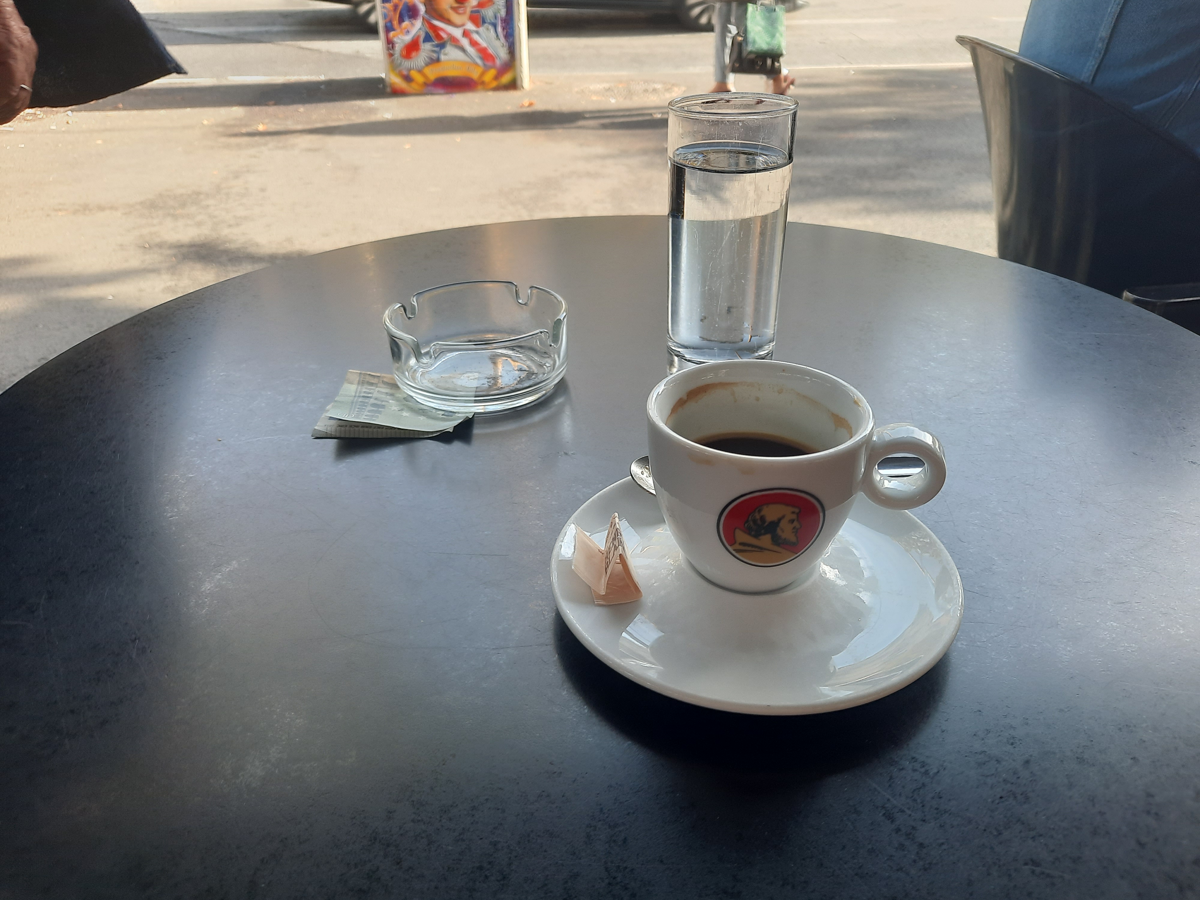 1.90 le café dans une tasse obligatoire,(pas de verre)un seul sucre,même pas un petit chocolat et le café n est pas très bon à mon goût.