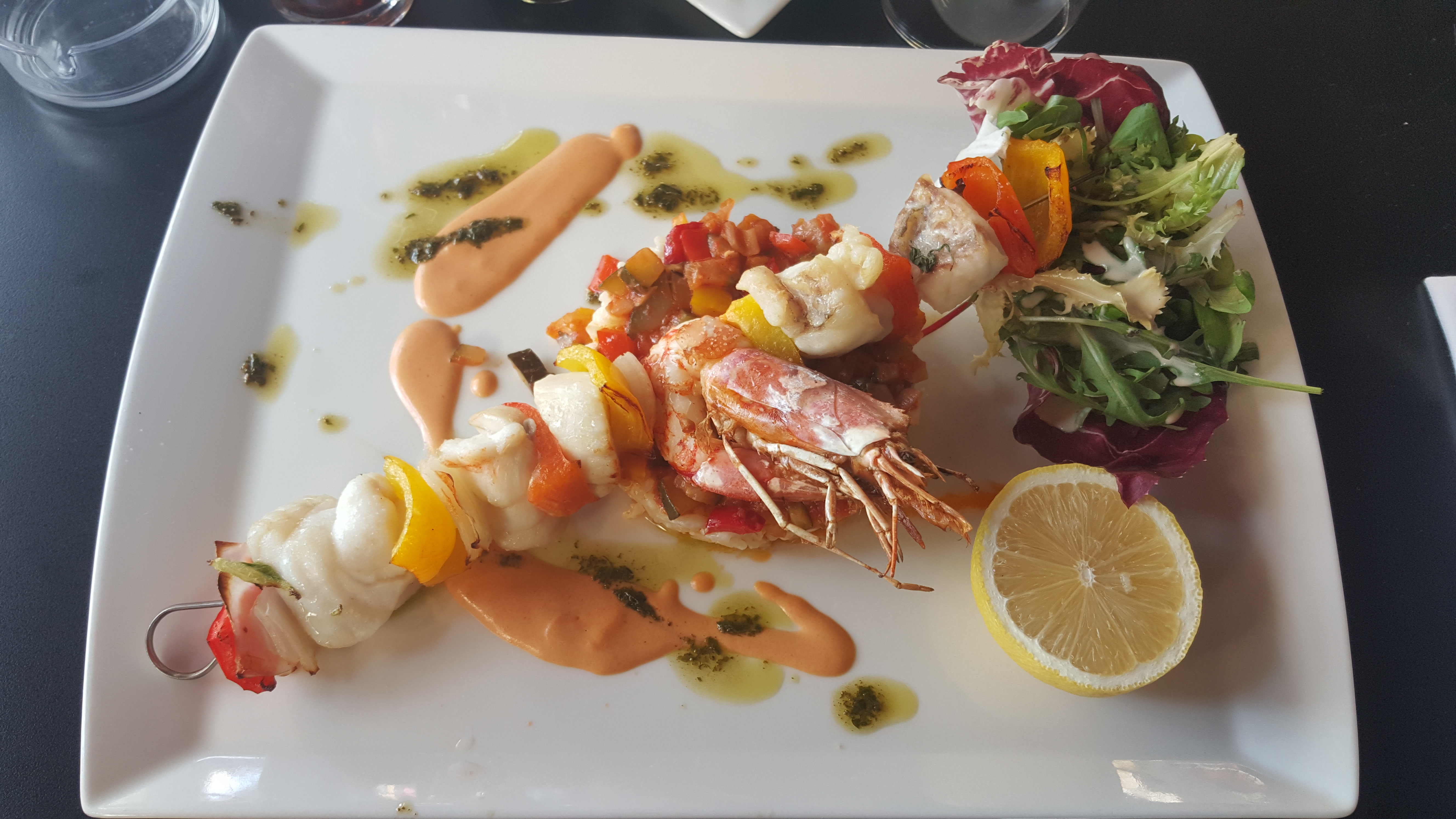 Les fruits de mer sont du congeler. Les calamars moules crevettes ... surprenant pour la ville de Marseille . Mais bon les economies sont bonne pour le restaurant. Mais la qualité chute avec cette erreur . Service peux pro ... ne vous laisse même pas terminer votre phrase 😀 ils devine juste avec une syllabe ... apparament... Je ne re tenterais pas tout simplement dommage