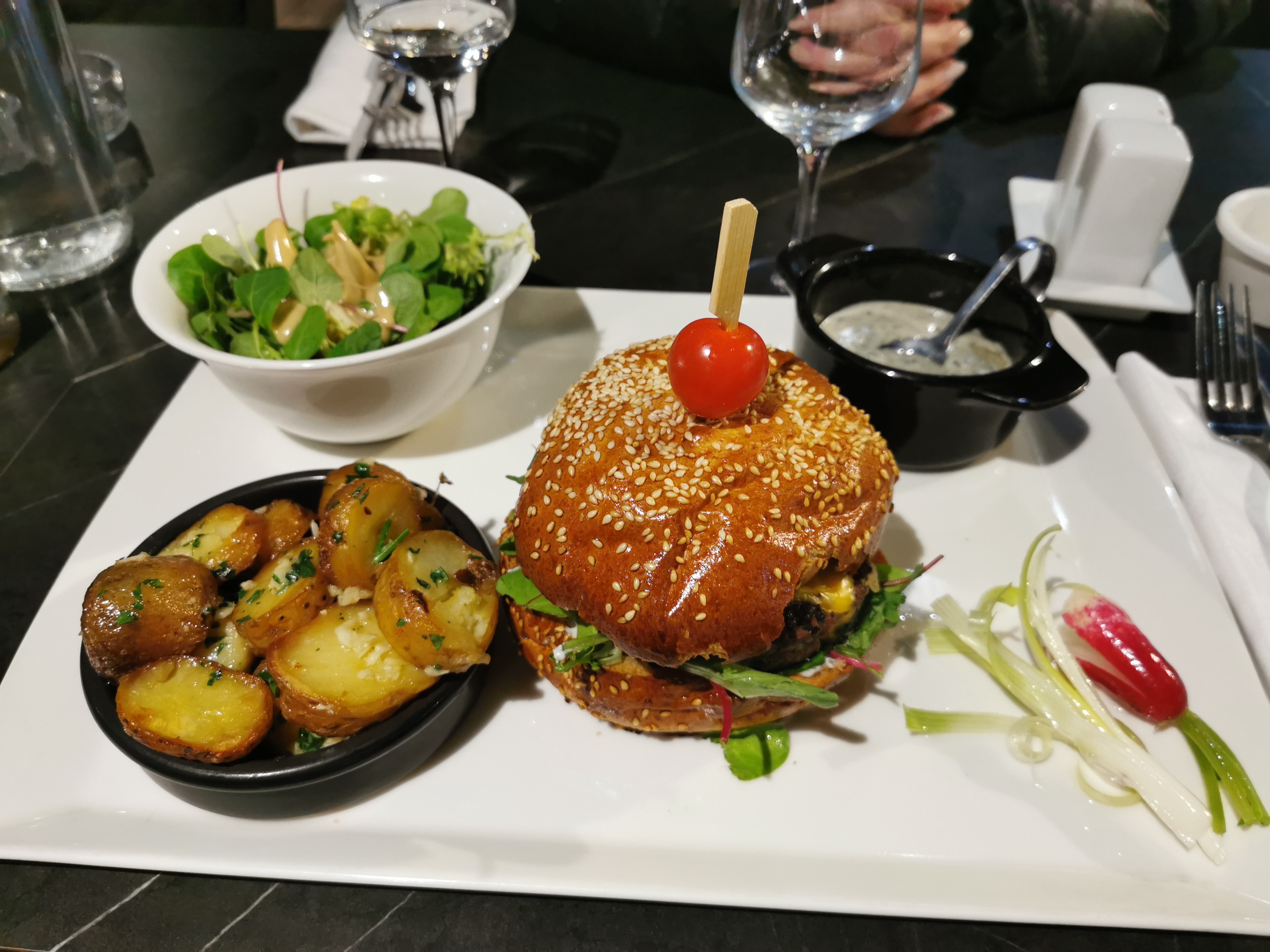 Très bon burger de canard avec une sauce à la truffe 🍔👌 Bon rapport qualité prix, je recommande !