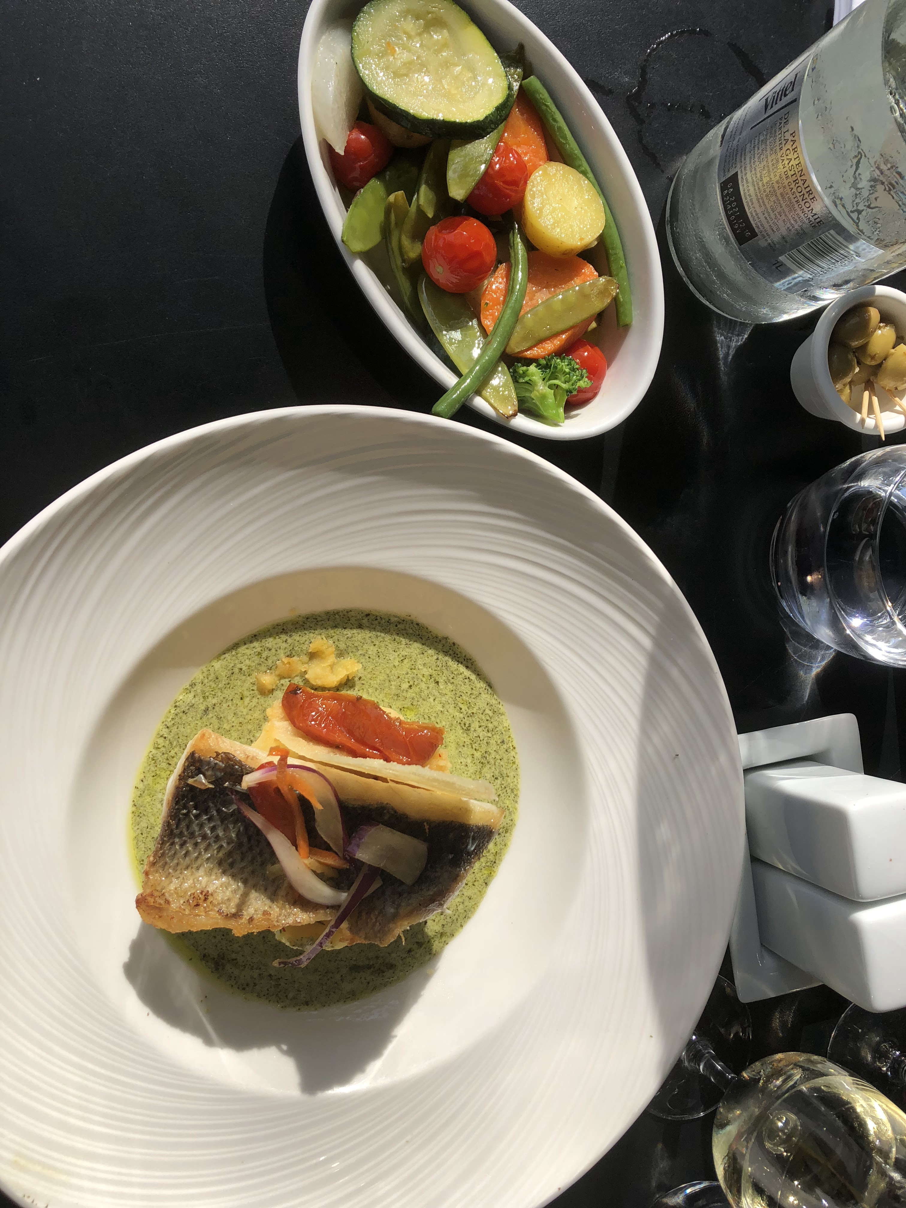 Bof bof. Apero le chardonnay bouchonné on le fait changer, le faux filet à la fleur de sel on cherche le sel, le tartare ok, la sole ok les sardines bien. Le service pas très naturel, le serveur ne sait toujours qu'on sert par la droite et qu on ne passe pas devant le client. Plus de fraises à 13h15 bizarre. Cerise sur le gâteau, parking gratuit si réservation par le site. A priori finalement 1 heure offerte car j ai payé 2e30 de parking. Au final déçu expérience a ne pas renouveler.