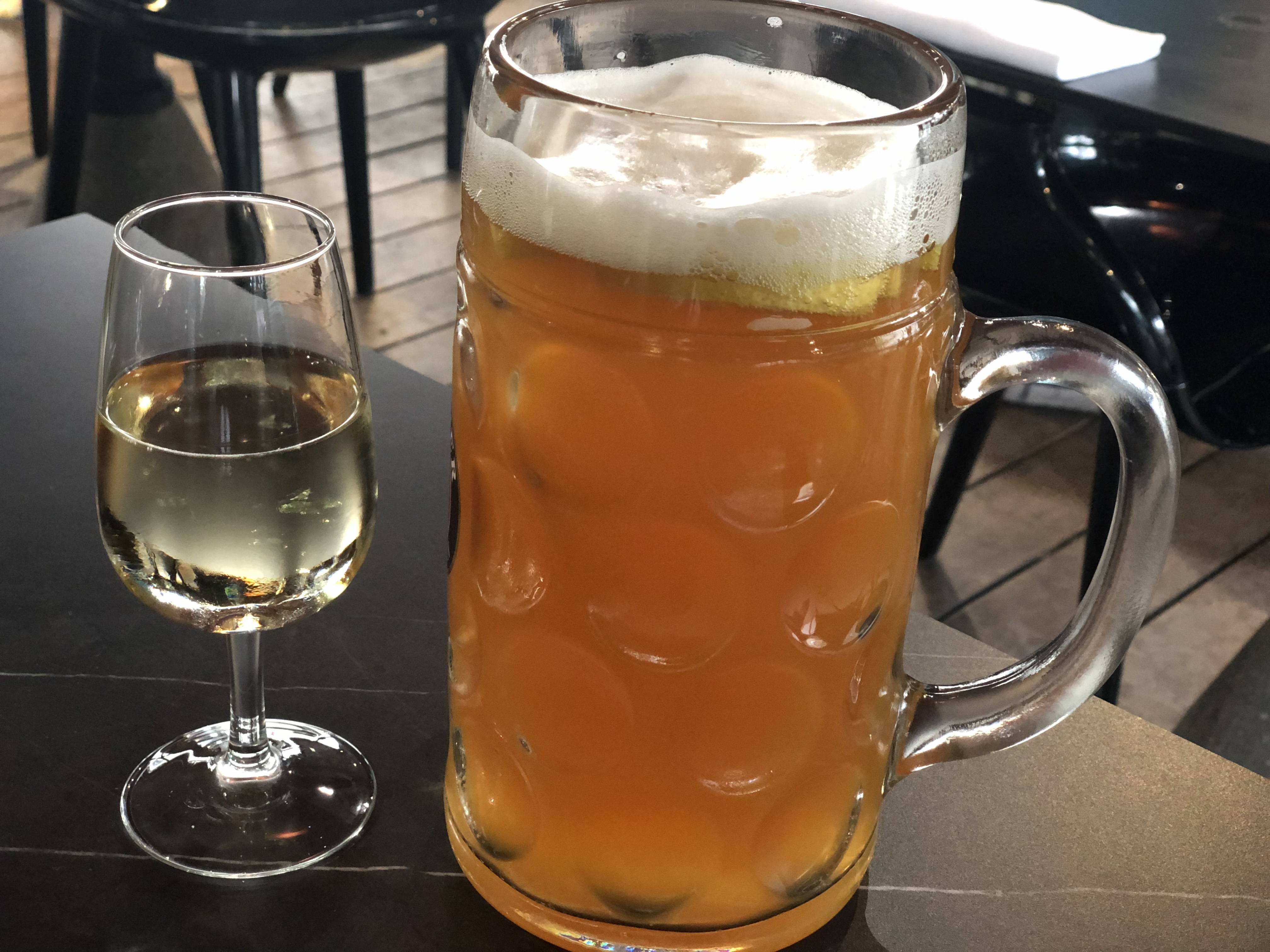 Nous y sommes allés prendre un verre à cause du nom Paulaner - nous aimons leur bière. Il n'y avait pas beaucoup de variété de Paulaner. Nous étions en milieu d'après-midi, donc il n'y avait pas de nourriture, seulement des crêpes, puisque la cuisine n'ouvrait qu'à 19h30 - nous aurions apprécié quelques snacks à manger avec la bière. La crêpe était ok. L’atmosphère était un peu bizarre, car nous étions assis dehors et le quartier du restaurant était extrêmement proche d’une avenue très fréquentée.