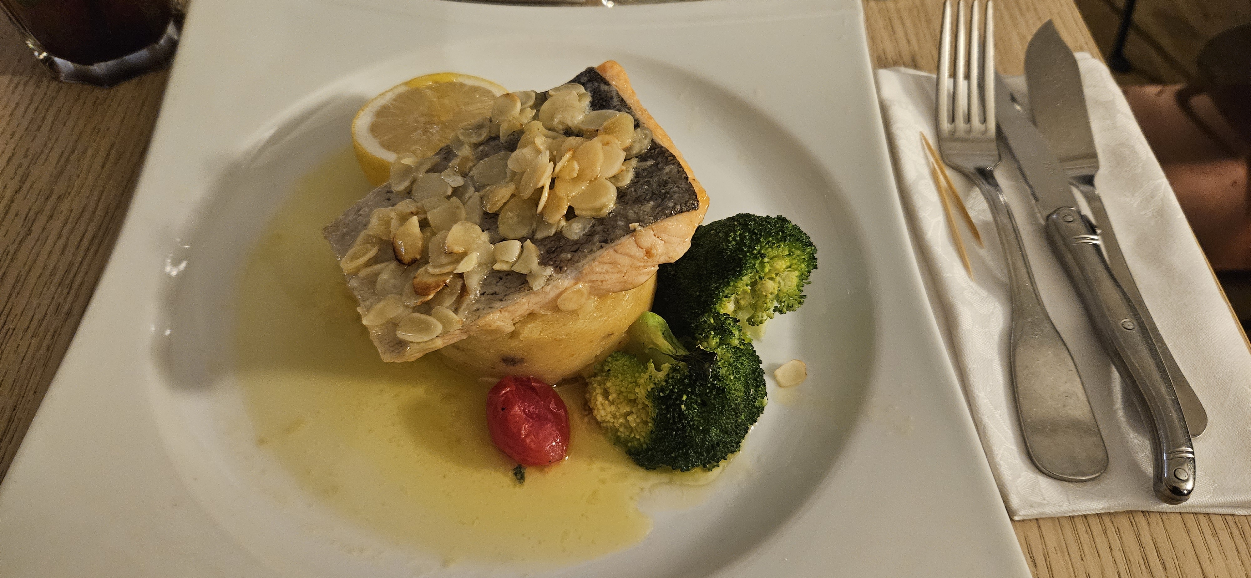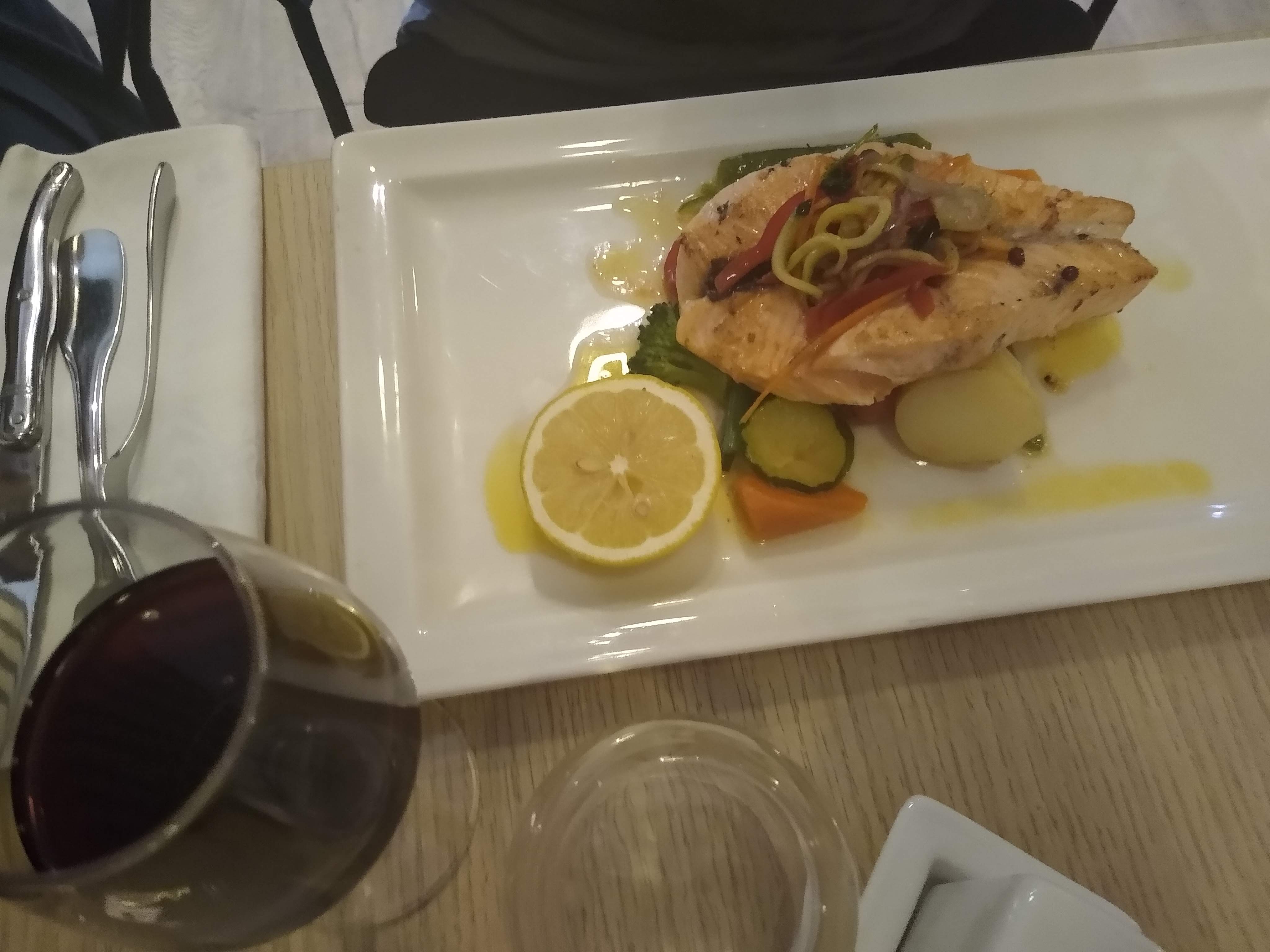 Espadon bien cuit et très bon. Carte un peu trop chargée et desserts pas du tour faits maison. En résumé bon mais pas fantastique