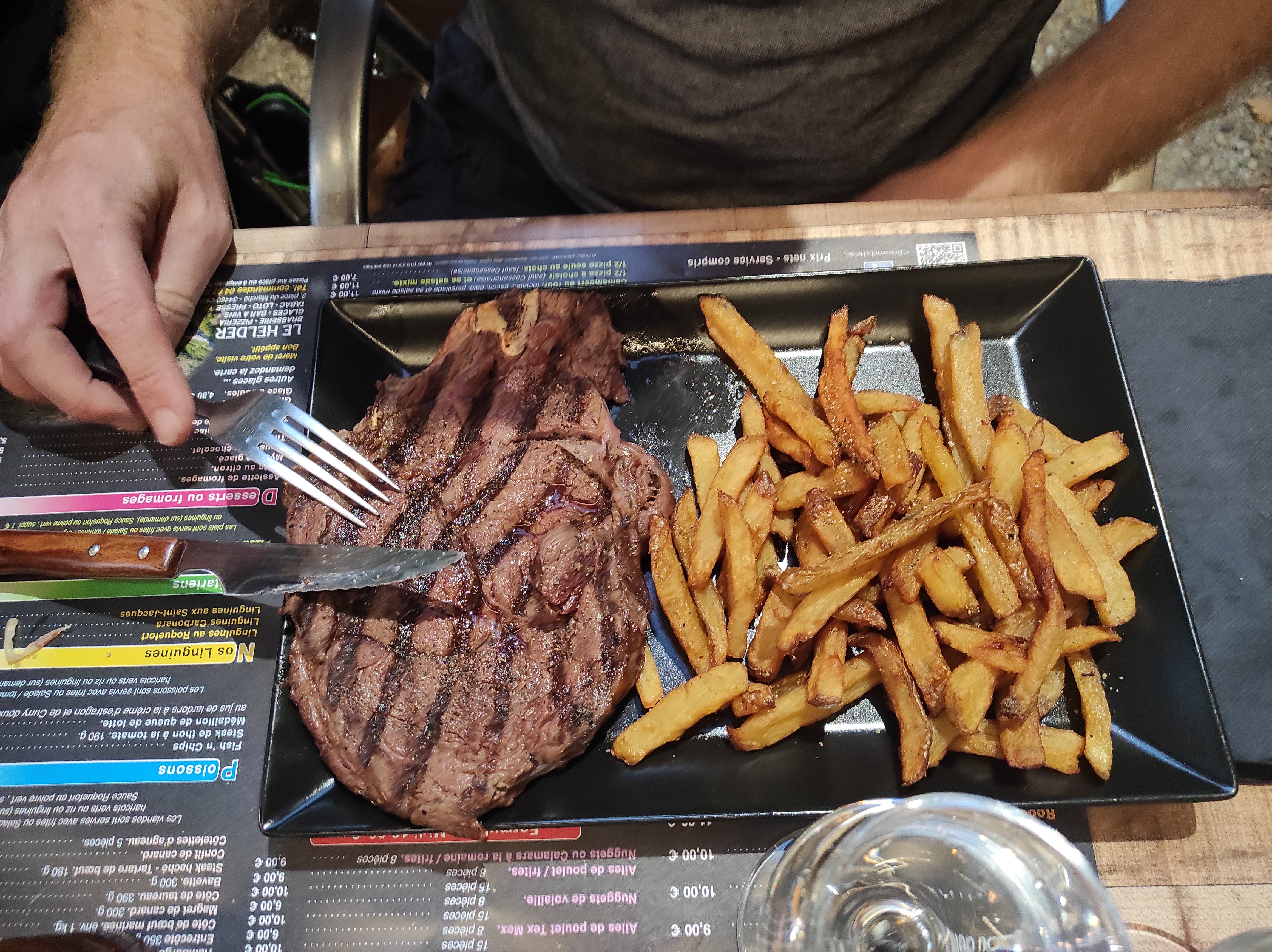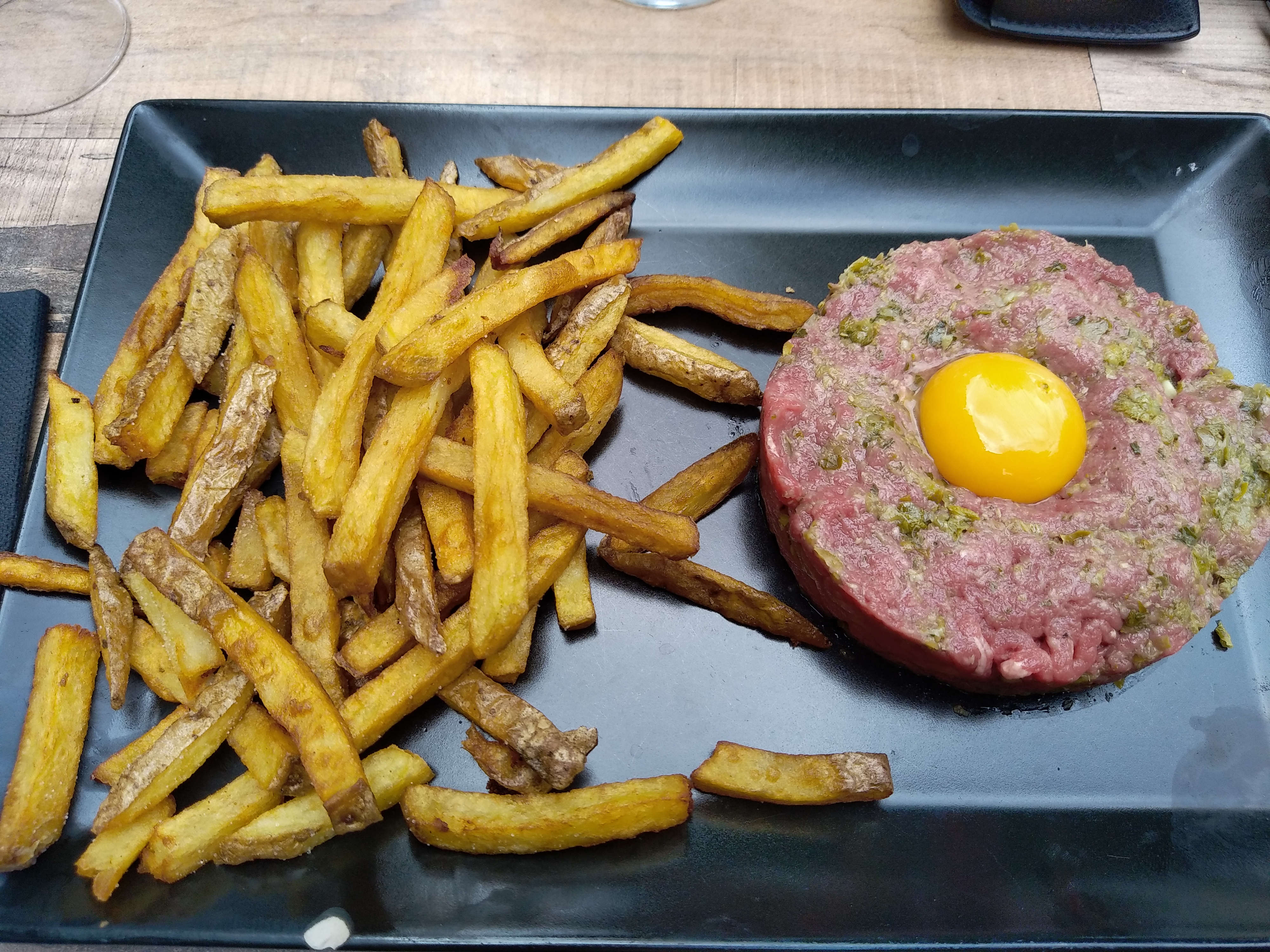 Très bon, et copieux. J ai pris le menu à 18.50e,parfait: côté d agneaux compagnes de frites.Cuisson bleu comme je désirai impeccable.