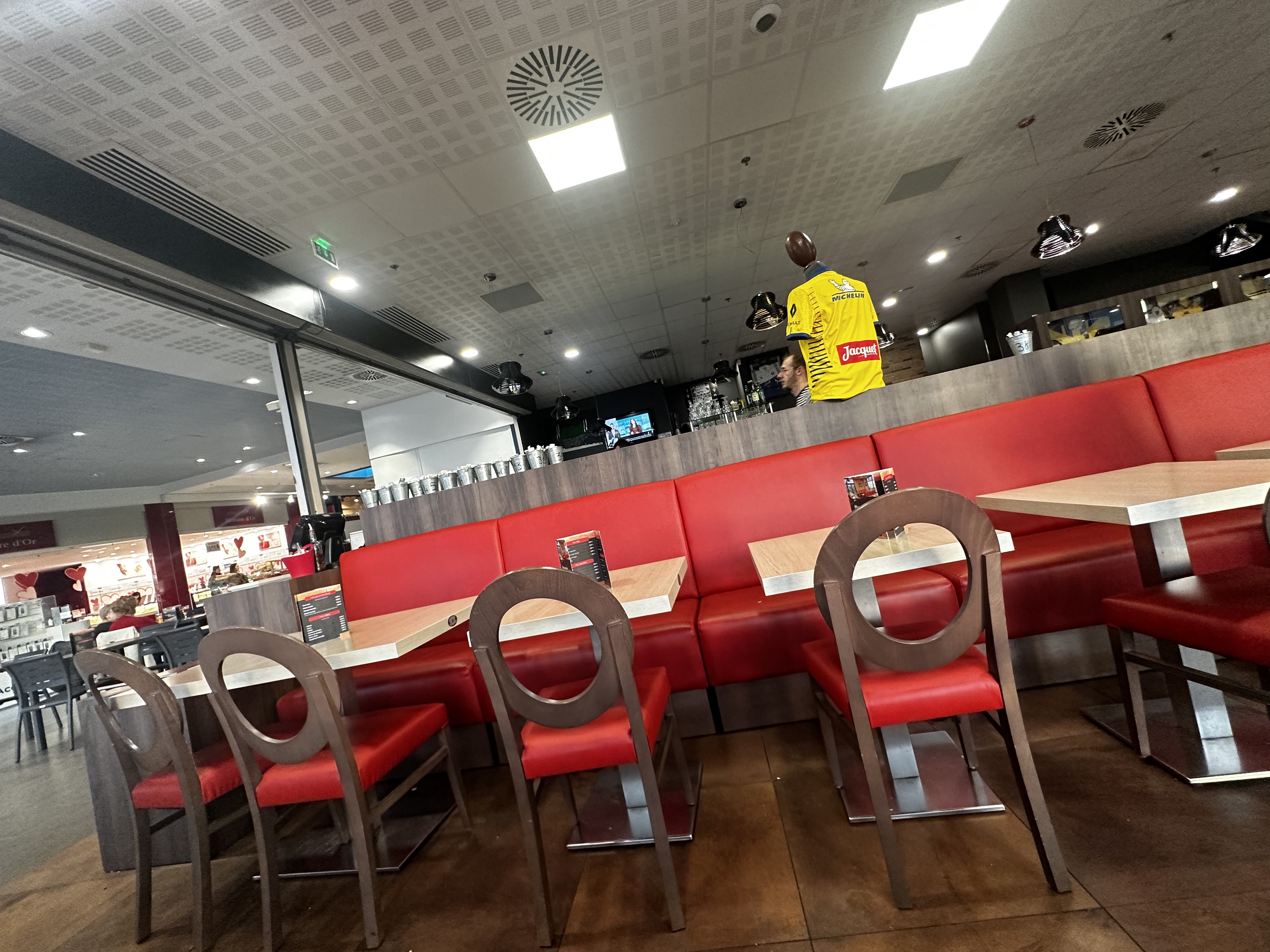 Bar circulaire sympa au milieu de la galerie nacarat retransmission des matchs de rugby .. ambiance sympa