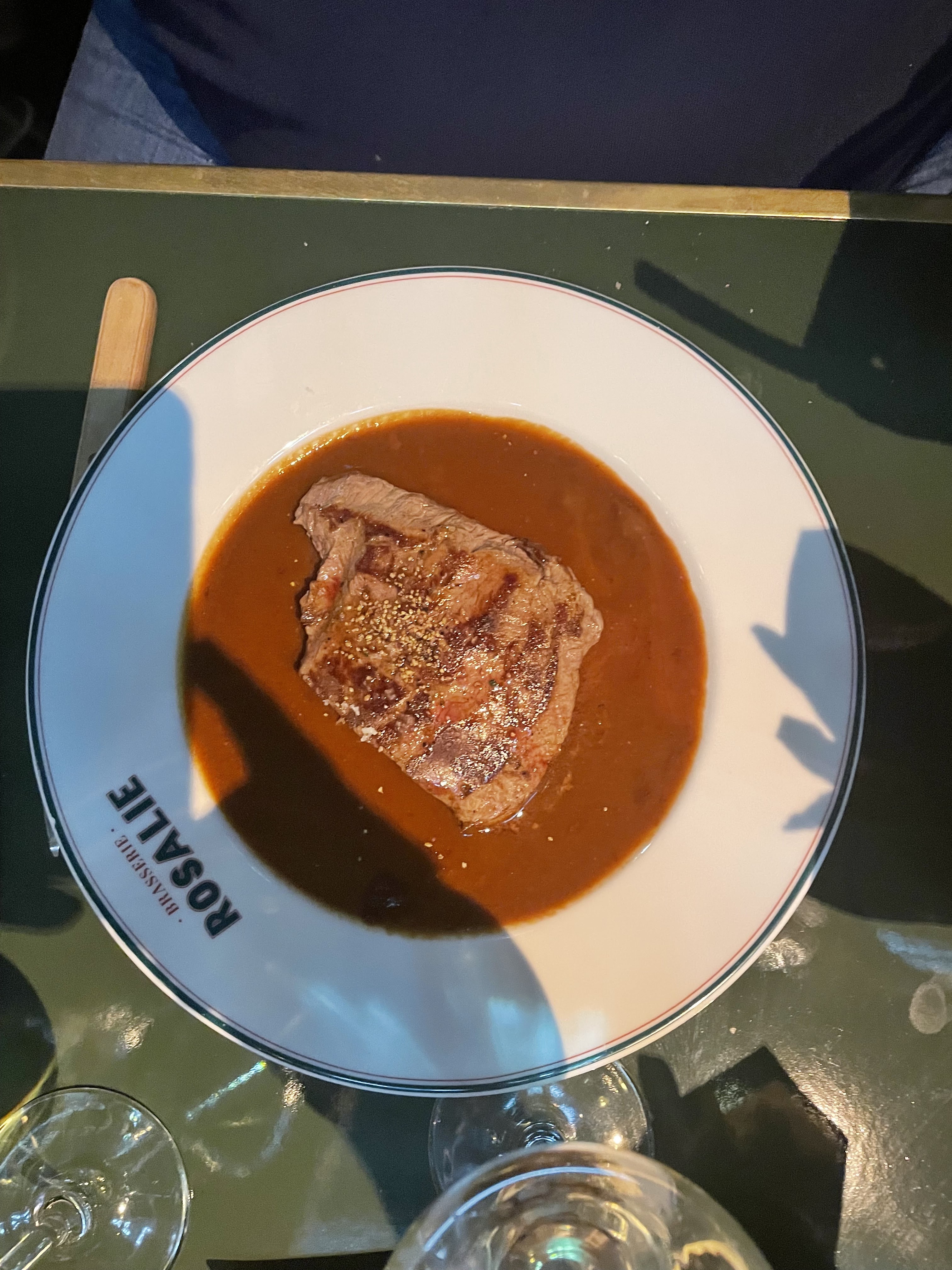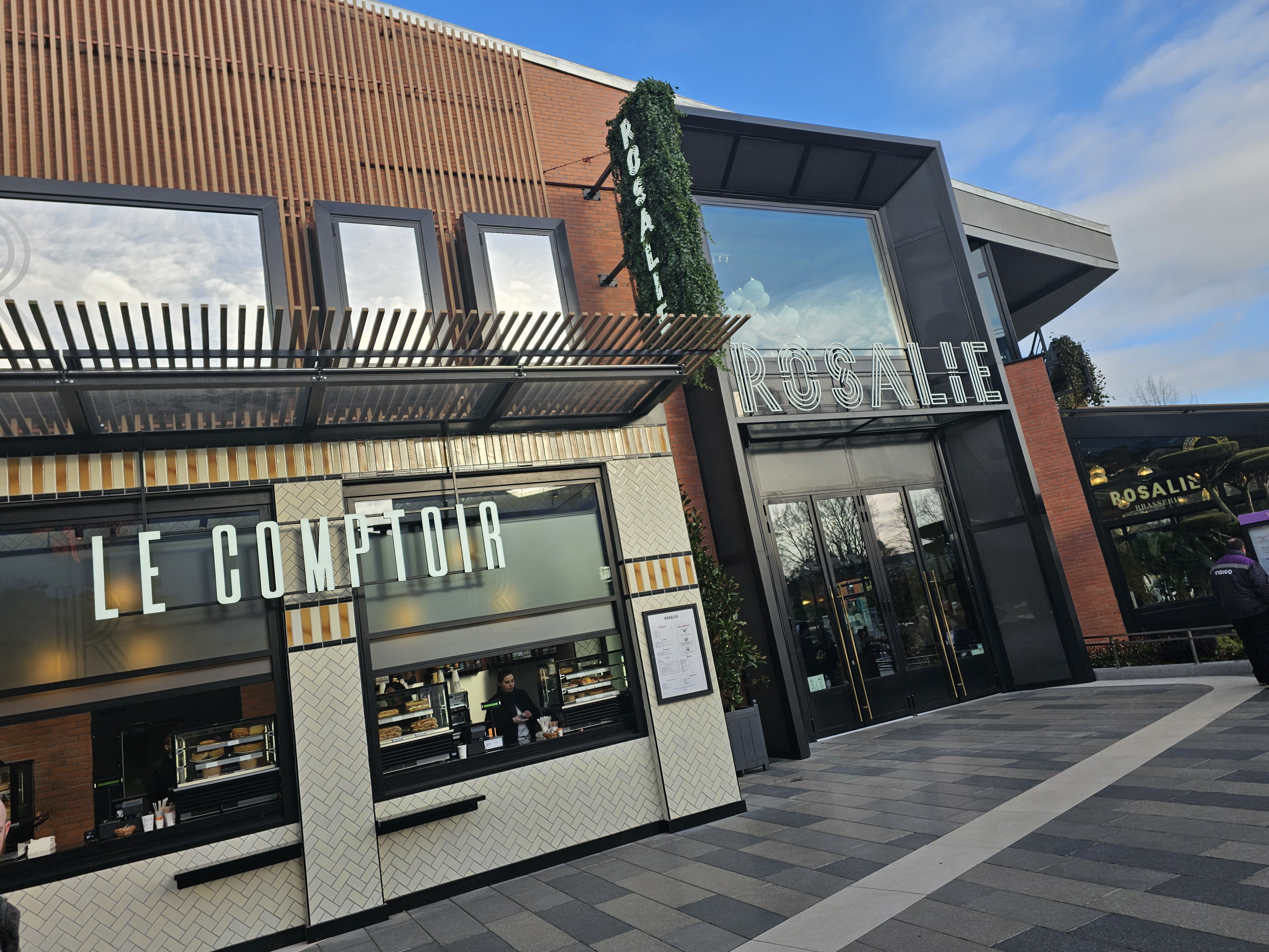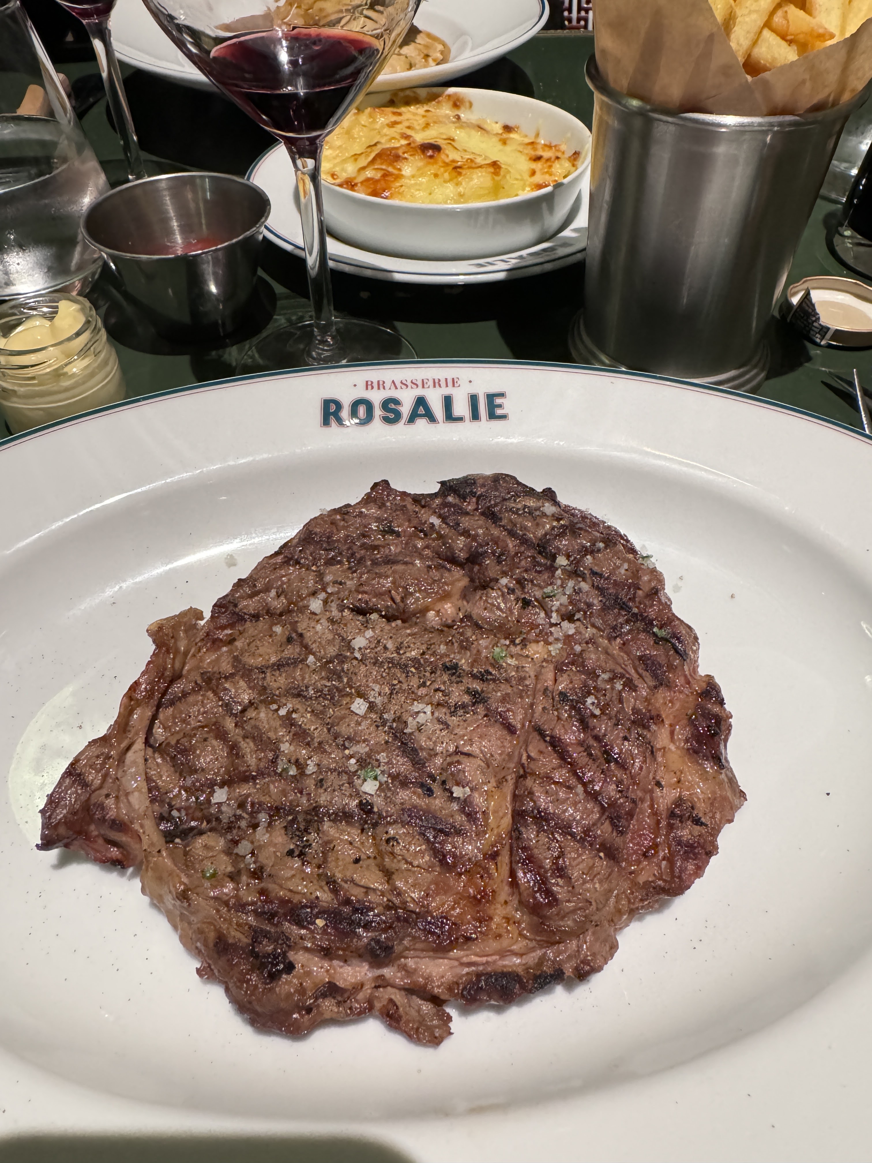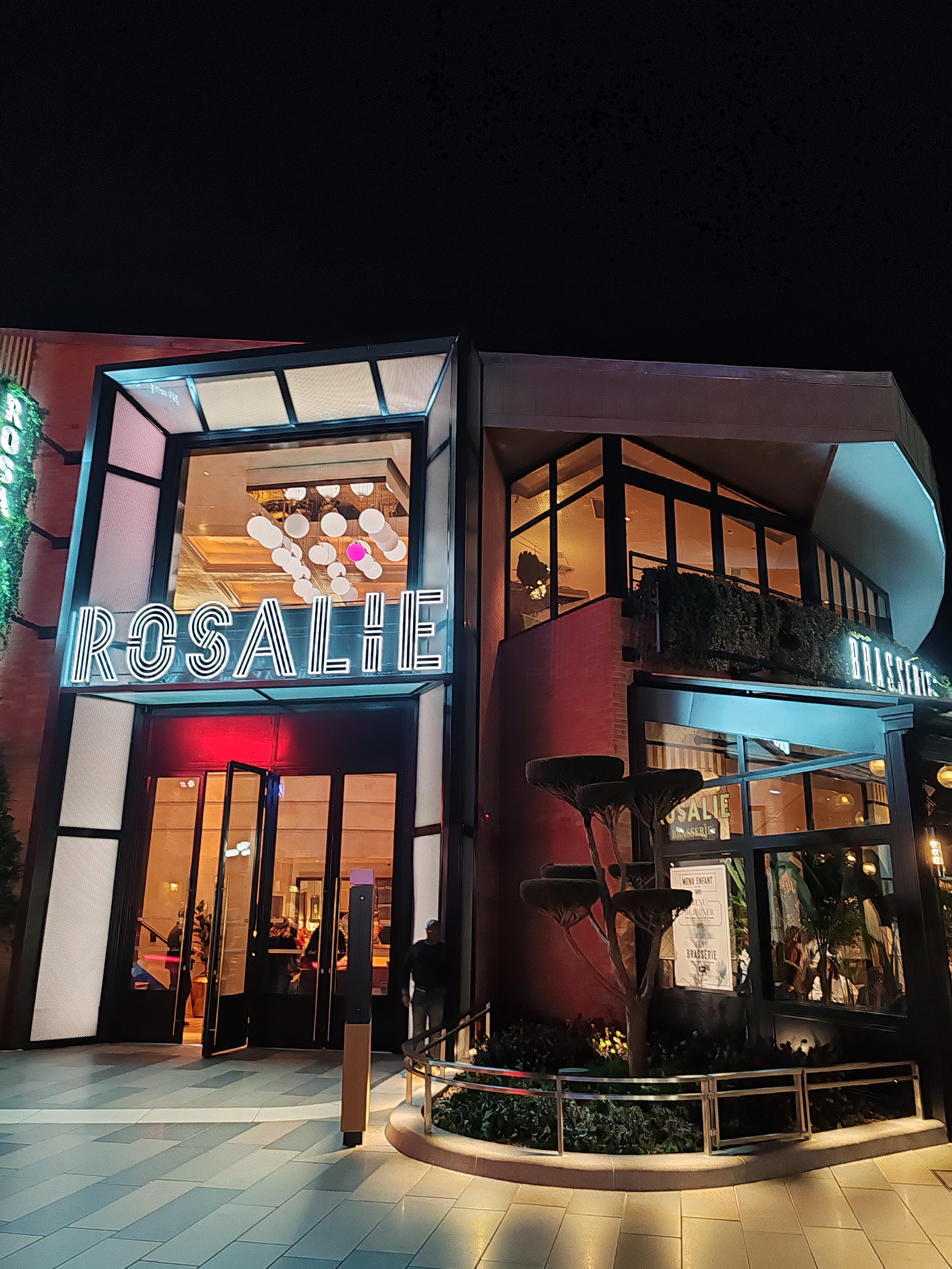 Nous avons vraiment apprécié notre expérience chez Rosalie. Le personnel était accueillant et de bonne humeur. Nous nous sommes assis immédiatement sans réservation. Notre serveur Fabien, était sympathique et très attentionné. Nous avons commandé le steak de côtes grillé. La saveur était agréable. L'un des steaks n'était pas cuit à notre goût. Cependant, lorsque le serveur nous a donné les assiettes, il a dit que la cuisine pouvait remettre le steak sur la poêle si nous voulions qu'il cuise plus longtemps. Il est arrivé pour voir si tout allait bien et il a été ramené à la cuisine sans problème ! Nous n'avons pas eu de dessert car nous étions trop rassasiés mais ils avaient l'air incroyable. Le pain et les petits pots de sauces sont une délicate attention. Nous avons aimé l'idée de pouvoir payer la facture et laisser un pourboire à l'aide d'un code QR. Les toilettes étaient modernes et propres. L'intérieur et l'extérieur sont charmants et c'est formidable de voir une nouvelle option de plats à emporter dans le village Disney. Je le recommanderais certainement!