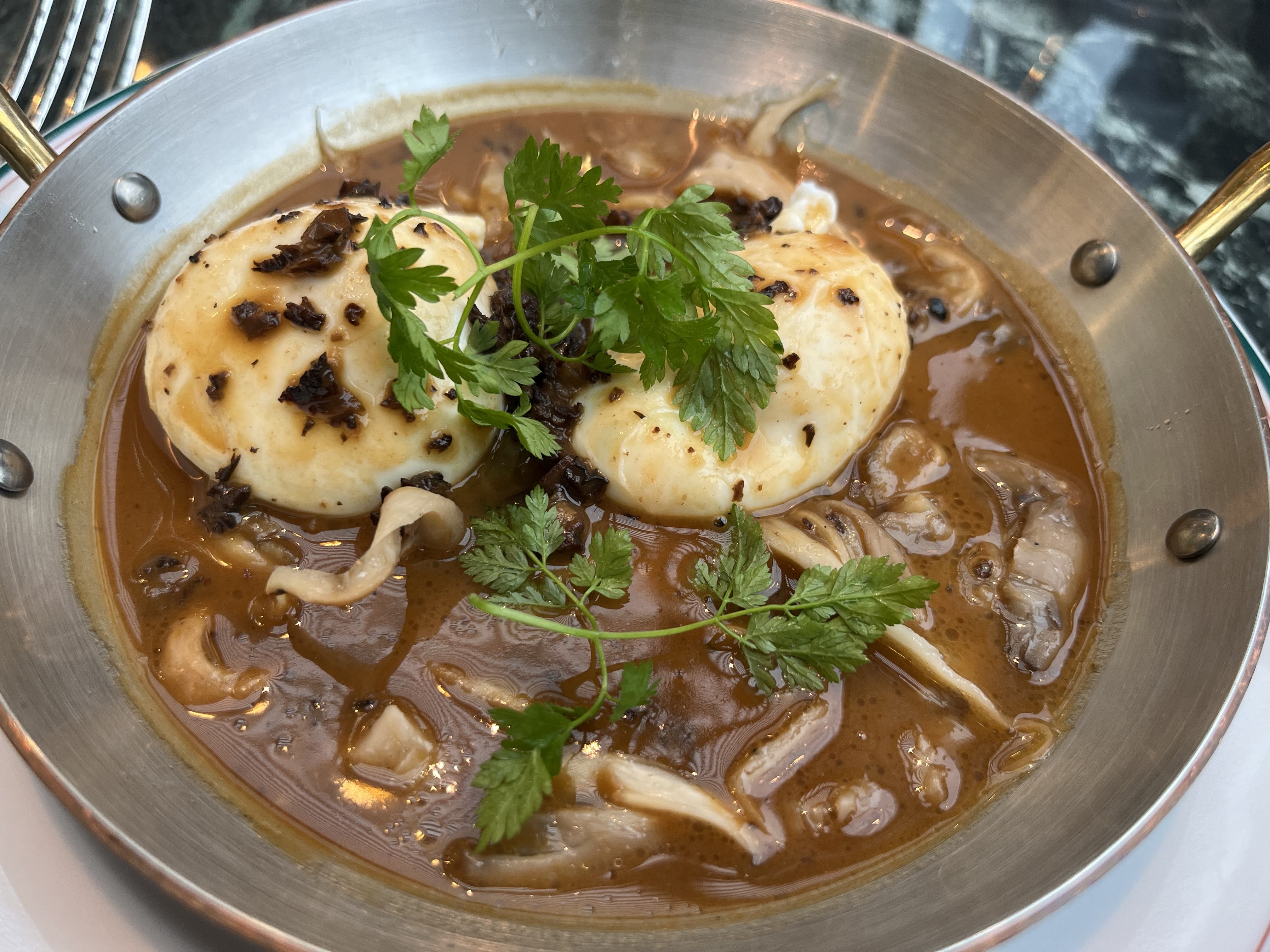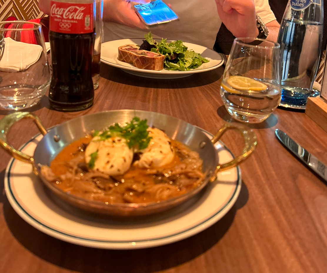 Mon entrée (œufs mollés) est arrivee en 4mn max ! Du coup tout juste tiède et un œuf sur 2 non mollés. Bon toutefois. Pas le temps de respirer pour le plat qui s’enchaîne vite on sent qu’on doit pas rester longtemps et faire du chiffre. Toutefois enfin un resto qui tient la route mais attention sur quelques points.