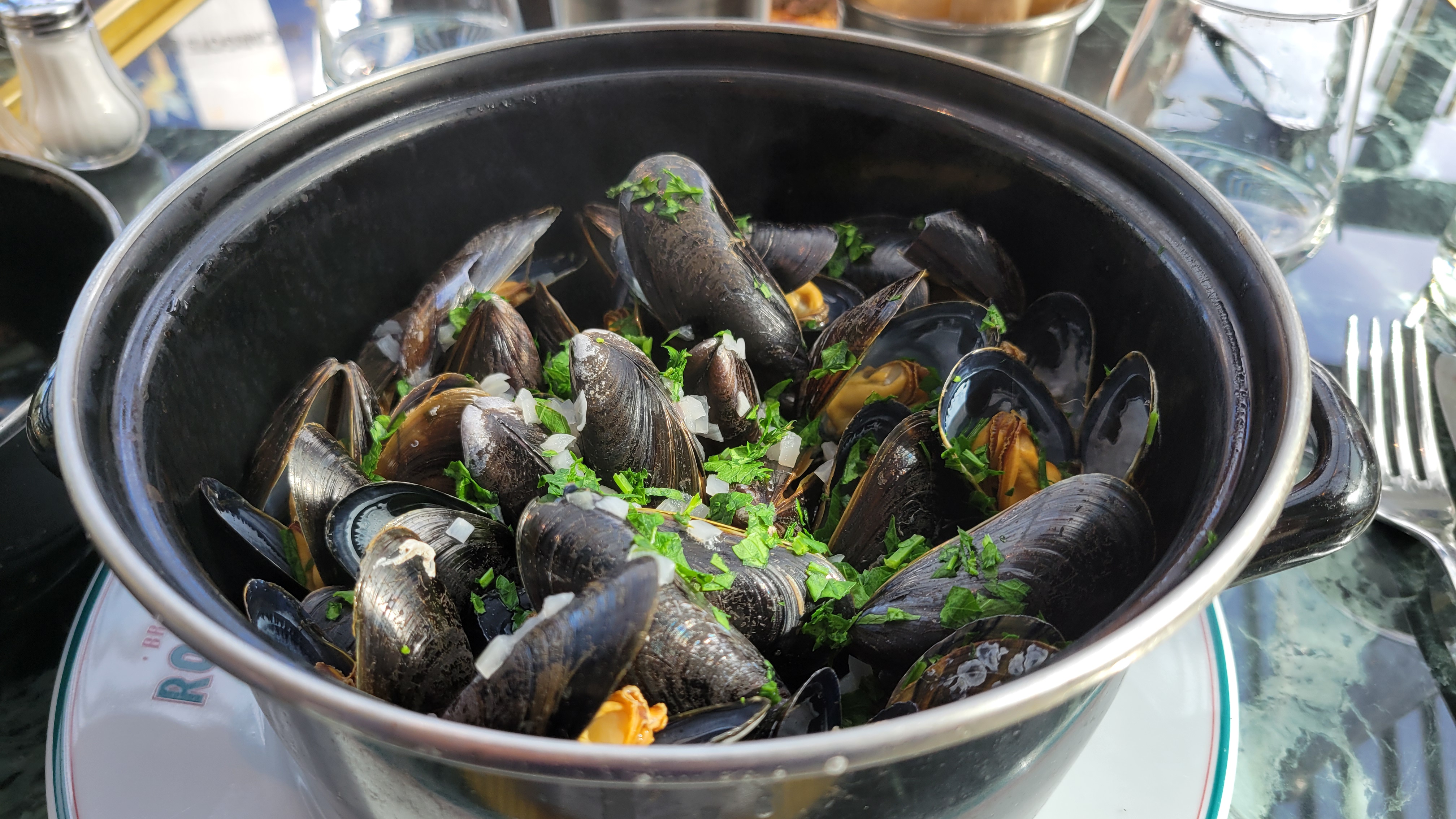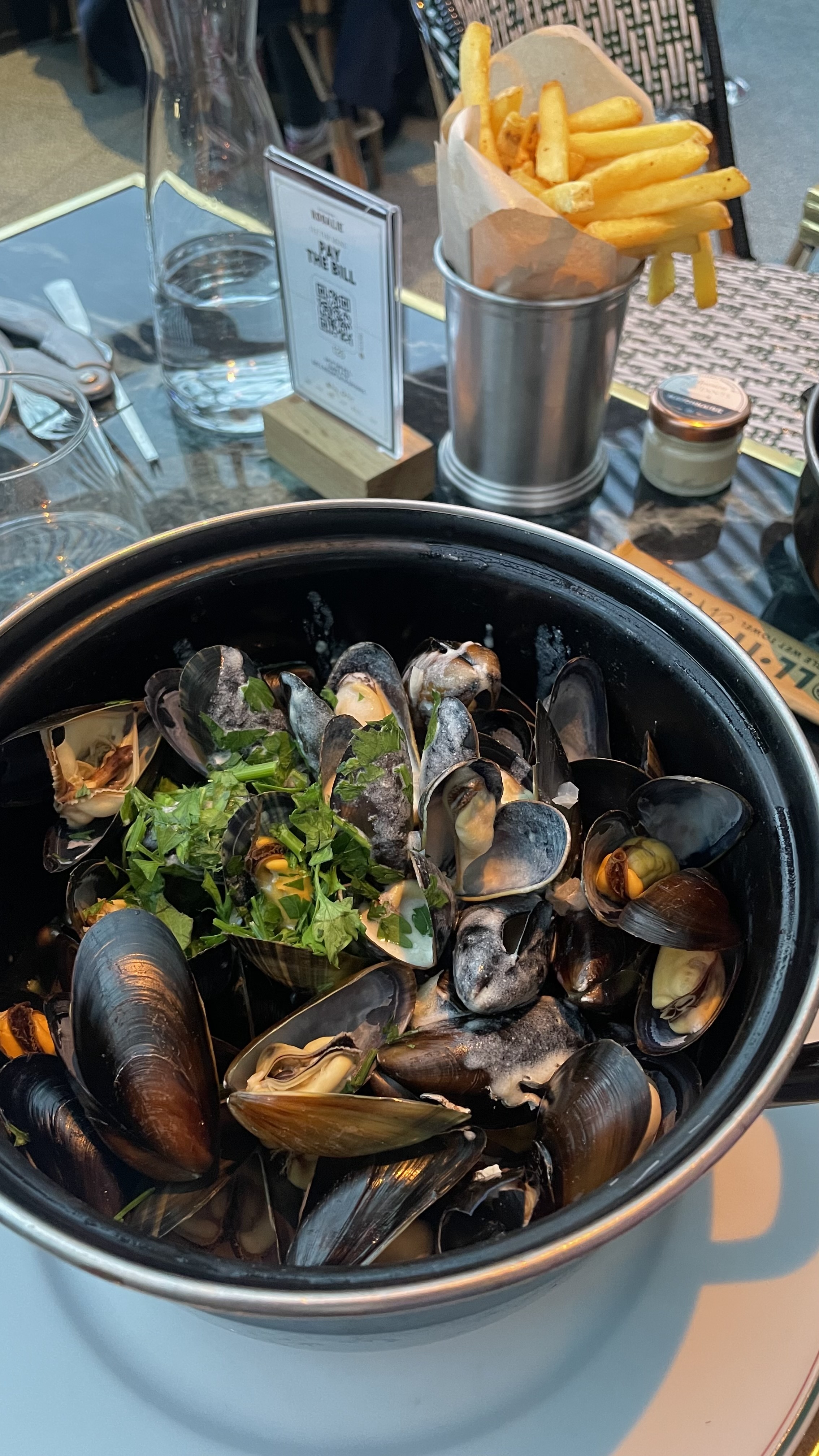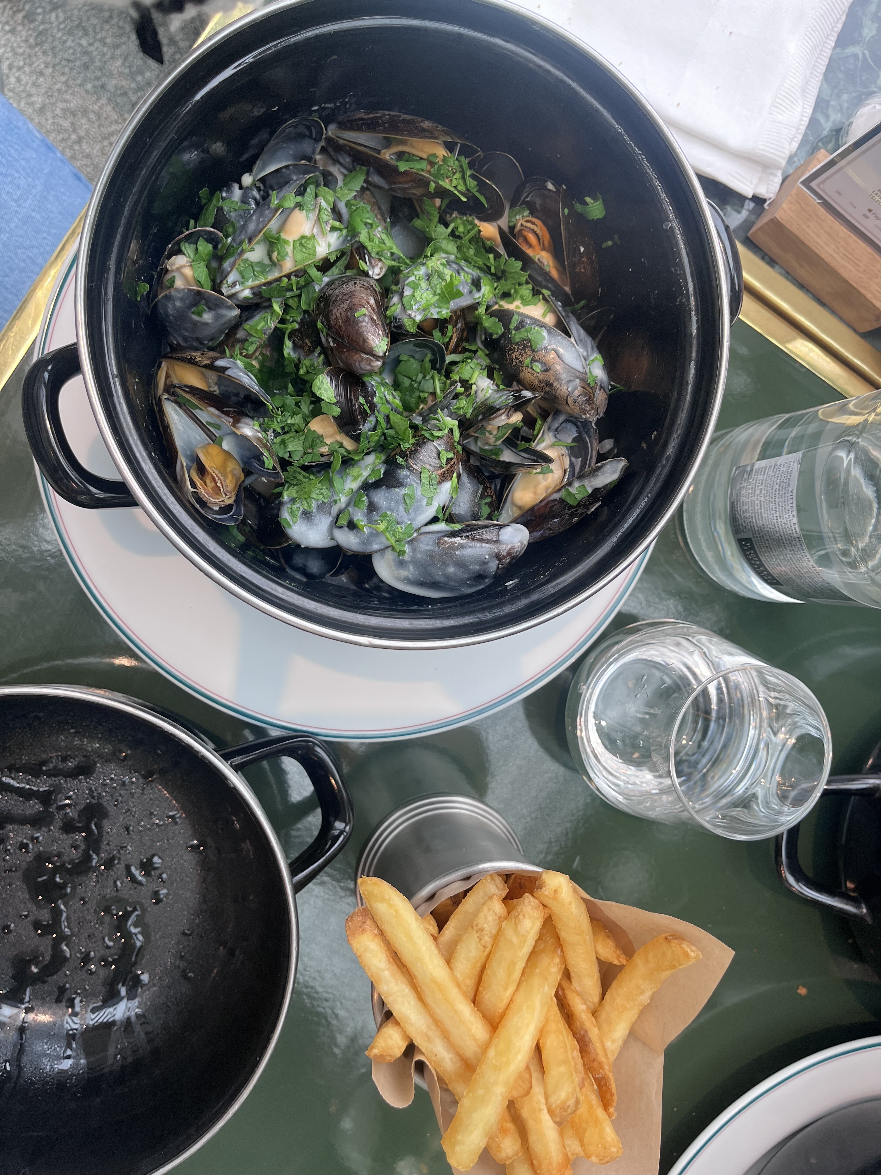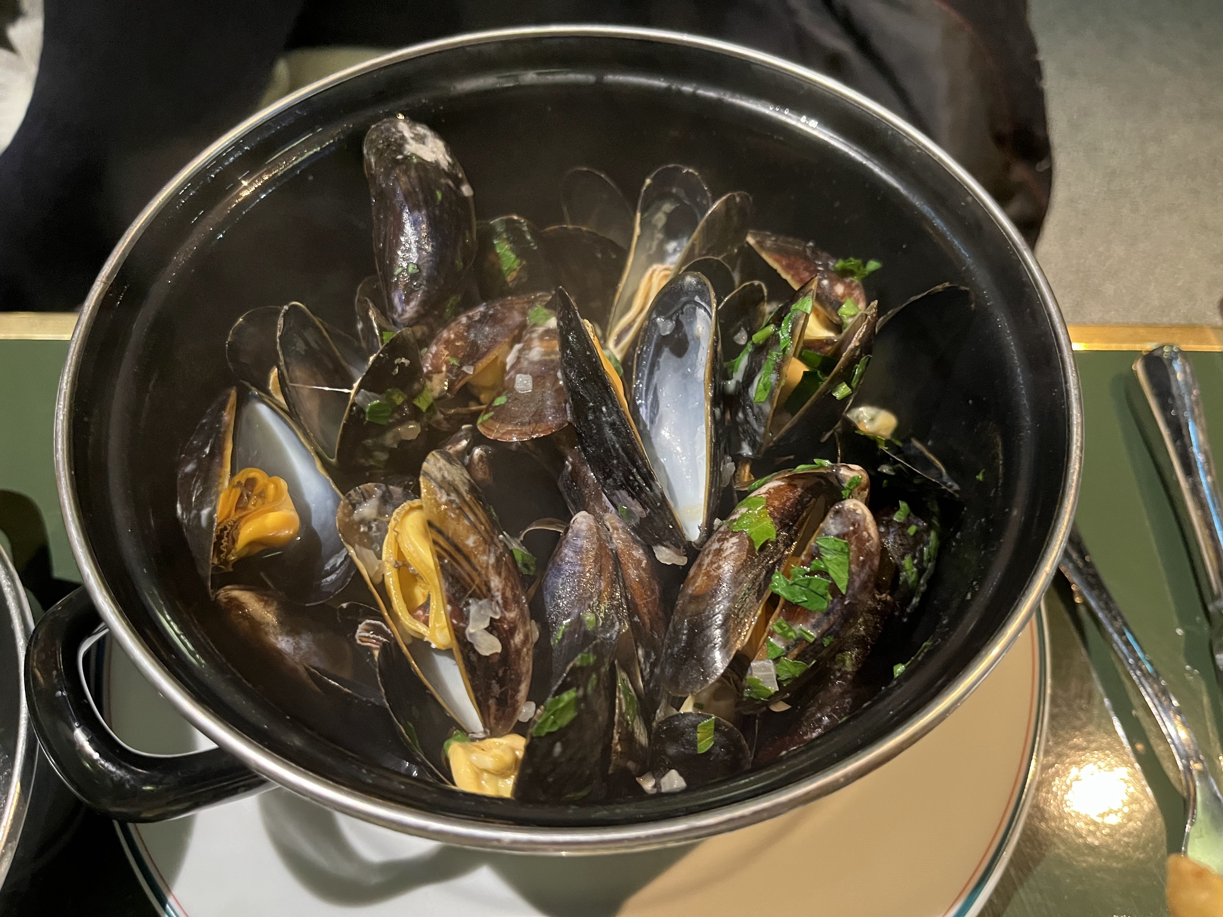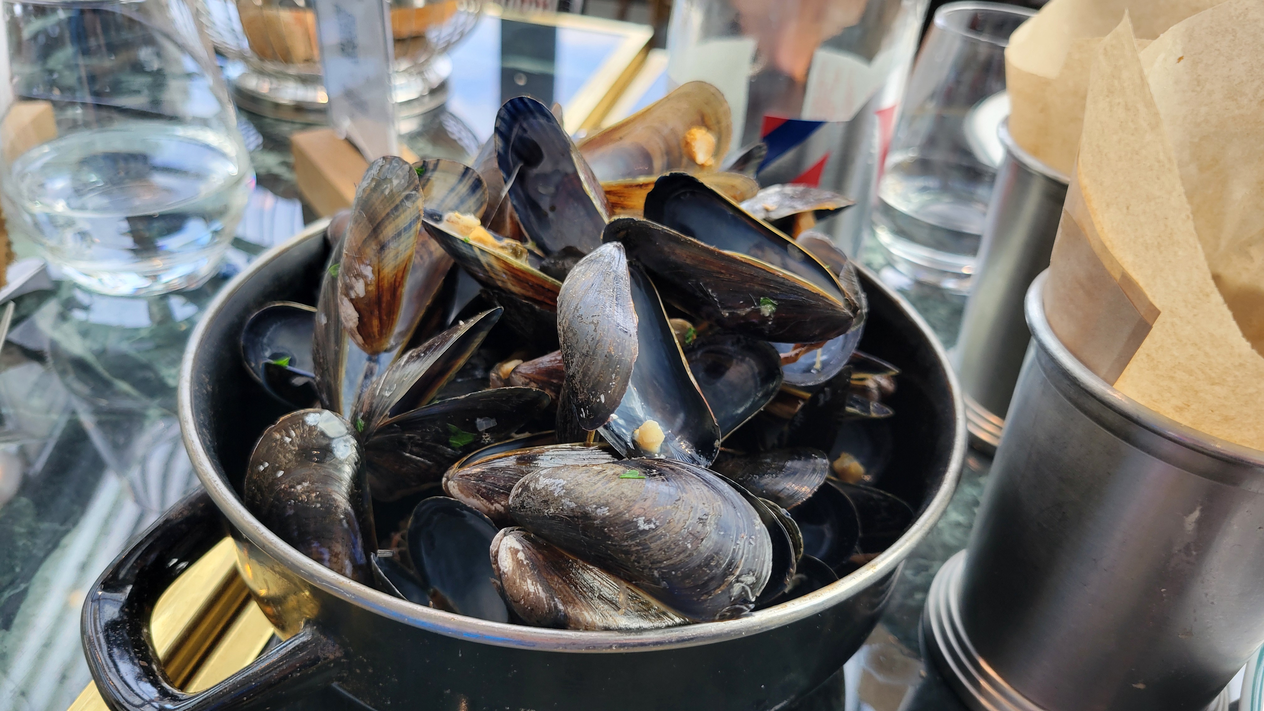 Moules assez froides, trop cuites, apparemment pas des moules de bouchot. Soupe à l'oignon pas assez chaude, mais bonnes. Fondant de bœuf beaucoup trop poivrés, mais bon. La mousse au chocolat du menu enfant a une texture et un goût pas agréable ce n'est pas de la mousse au chocolat. Cadre agréable, service correct. (inscrit sur tripadvisor 850 avis avec peu de mauvais avis)