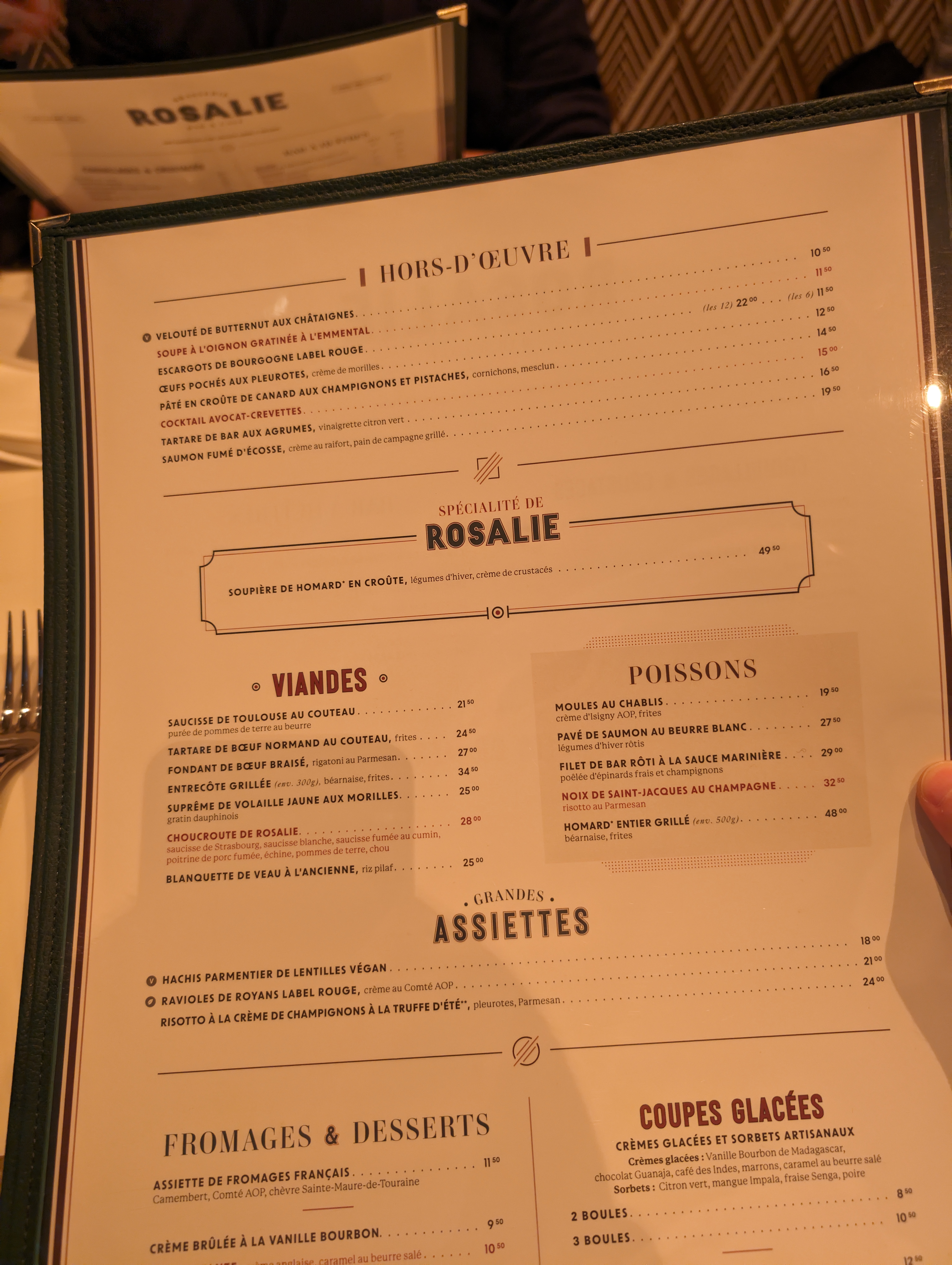 Super expérience chez Rosalie ! Les prix sont un peu élevés, les rations ne sont pas copieuses, mais la qualité de la nourriture semble de qualité ! Le service est appréciable, et très rapide !