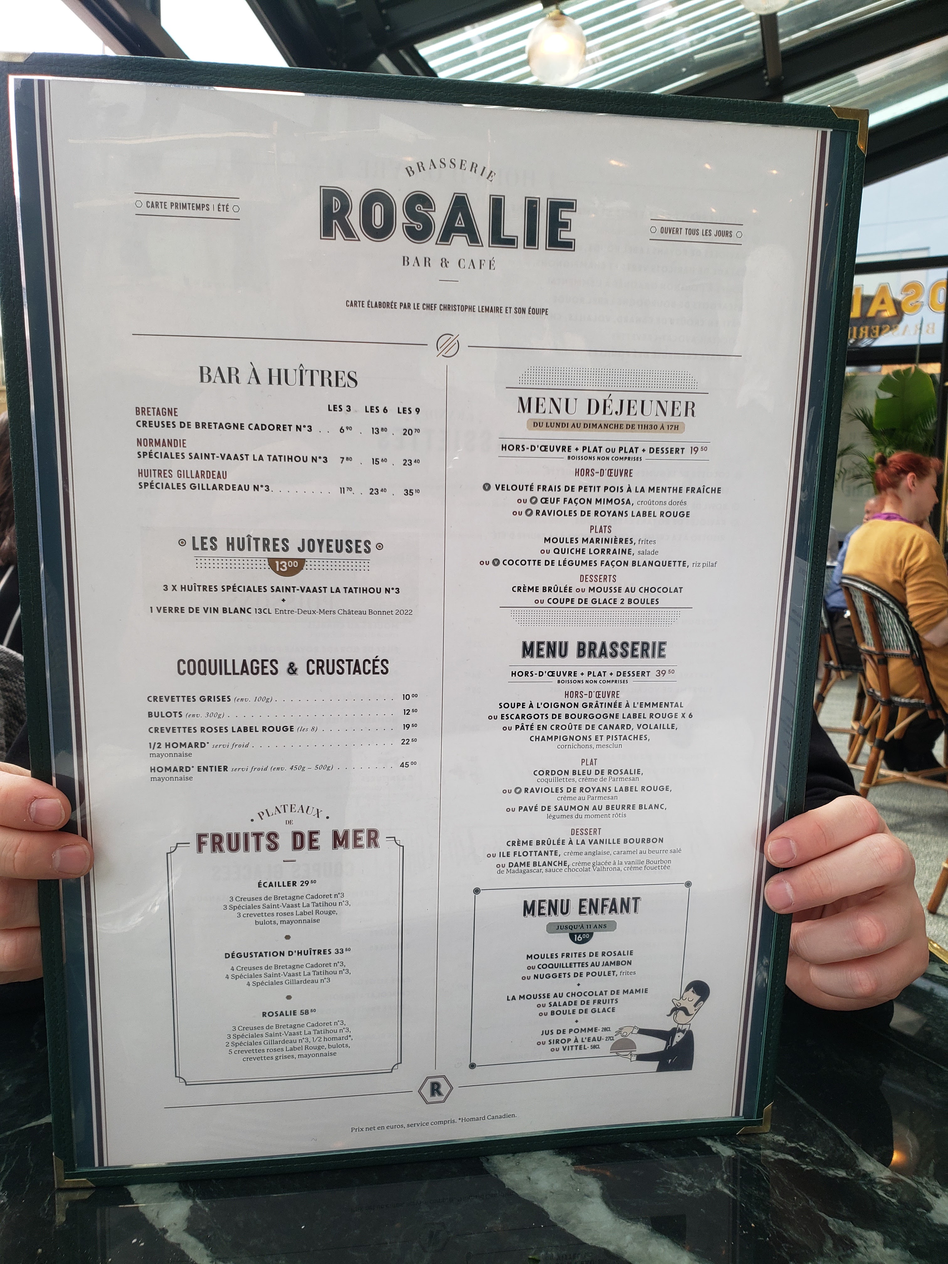 Après une journée dans le parc Disney, quoi de mieux de finir la journée par un excellent repas à la Brasserie Rosalie. Vous serez accueillis, installés et servis par des personnes sympathiques et compétentes (Lionel). Nous savons où revenir manger la prochaine fois. Merci à vous