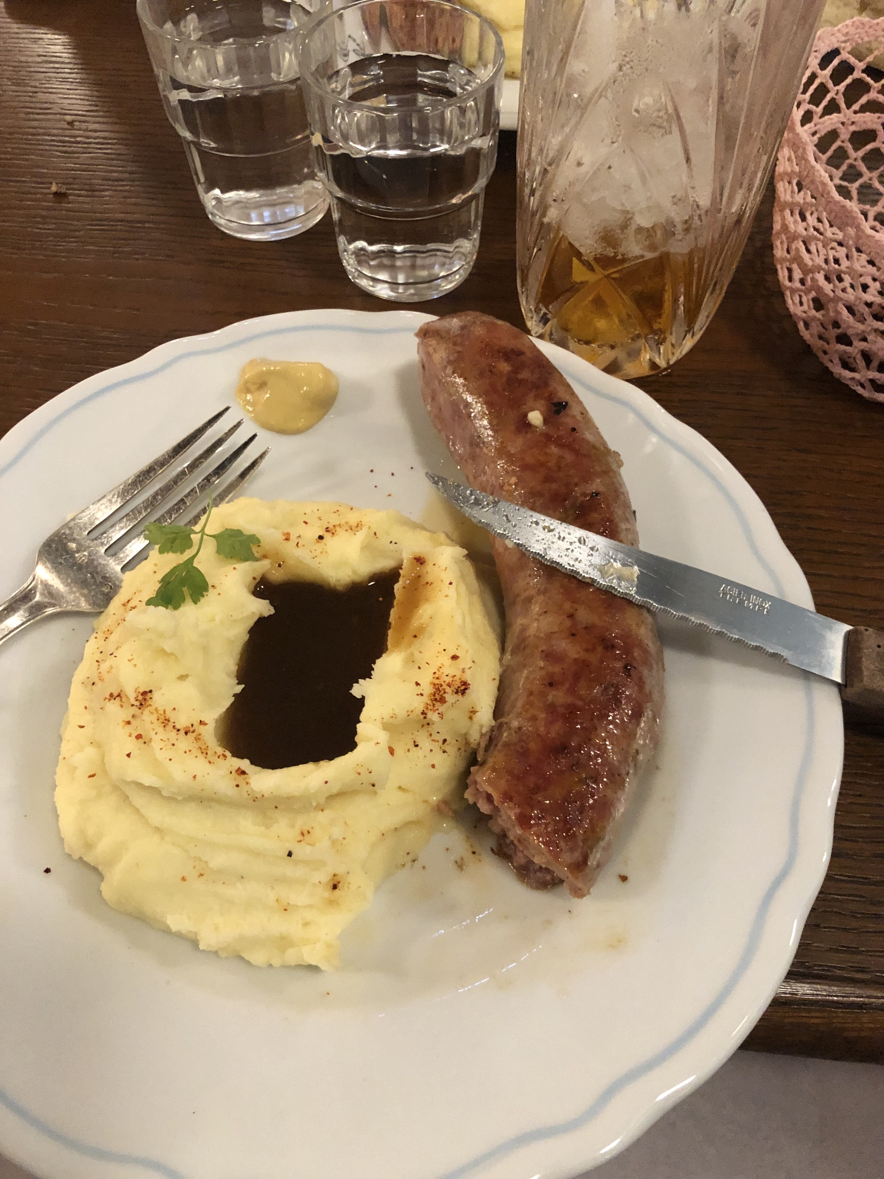 Ma femme l'a aimé plus que moi. Sa nouvelle salade préférée ! J'ai eu la saucisse et la purée mais je l'ai trouvé décevant. D'autres plats intéressants étaient le canard, les œufs mayo étaient bons. Les pâtes au jambon et aux truffes sont bonnes si vous parvenez à vous nourrir d'une assiette de glucides, de crème et de fromage, mais d'autres peuvent avoir du mal par une journée chaude. Le service est sympathique et parle anglais.
