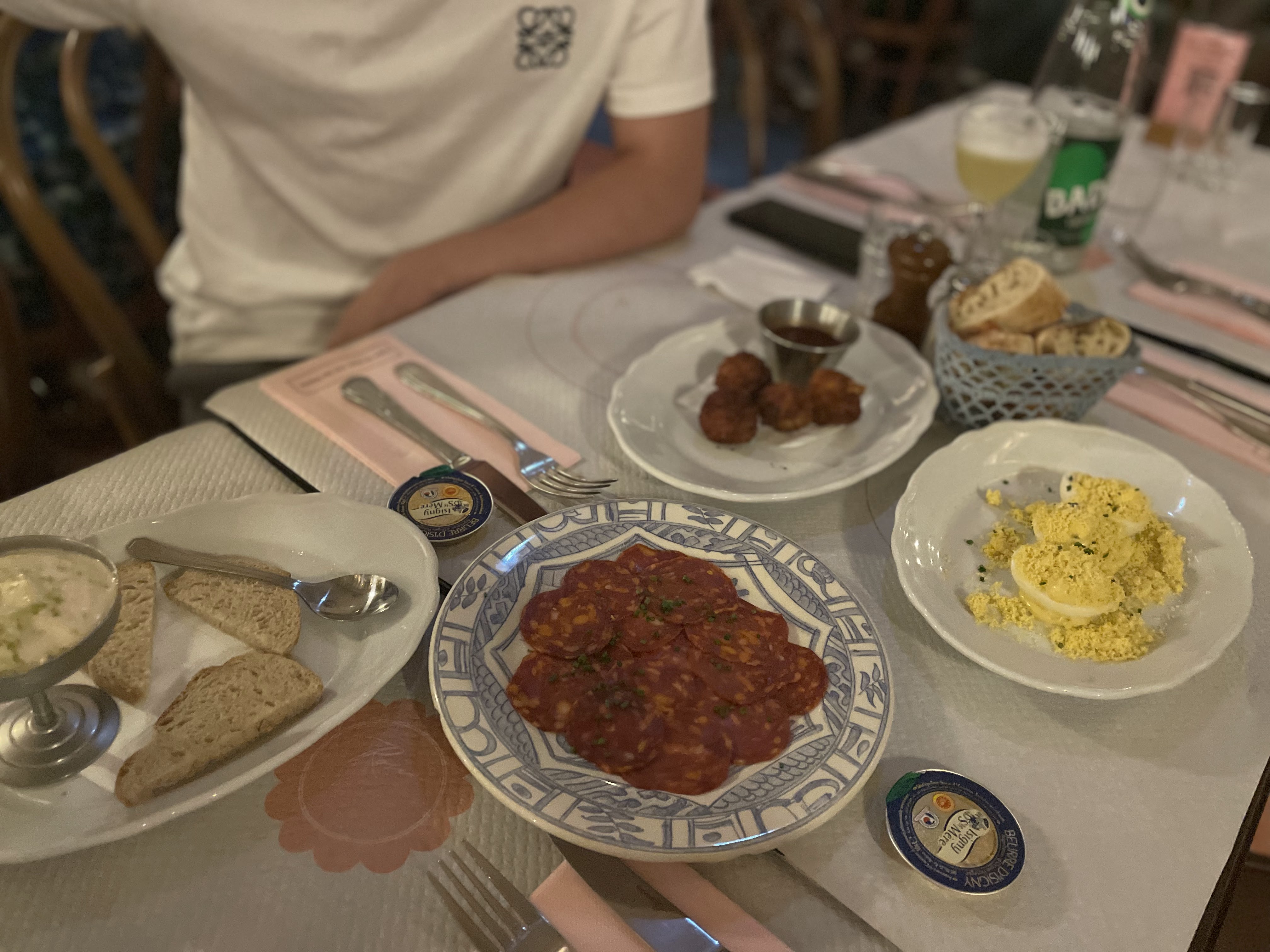 Nous sommes arrivés avant l'heure du dîner sans réservation et nous étions assis à condition de partir dans 2 heures, ce qui était faisable ! La nourriture et les boissons étaient excellentes, l'ambiance était charmante. CEPENDANT, à la fin du repas, le watier est venu avec la facture et nous a fait savoir que le service n'était PAS inclus dans la facture et que nous devions donner un pourboire séparément de la facture. Nous avons donné un pourboire pour être poli, mais c'était étrange, car donner un pourboire après les repas n'est pas courant en Europe. Et oui, nous sommes des touristes américains.