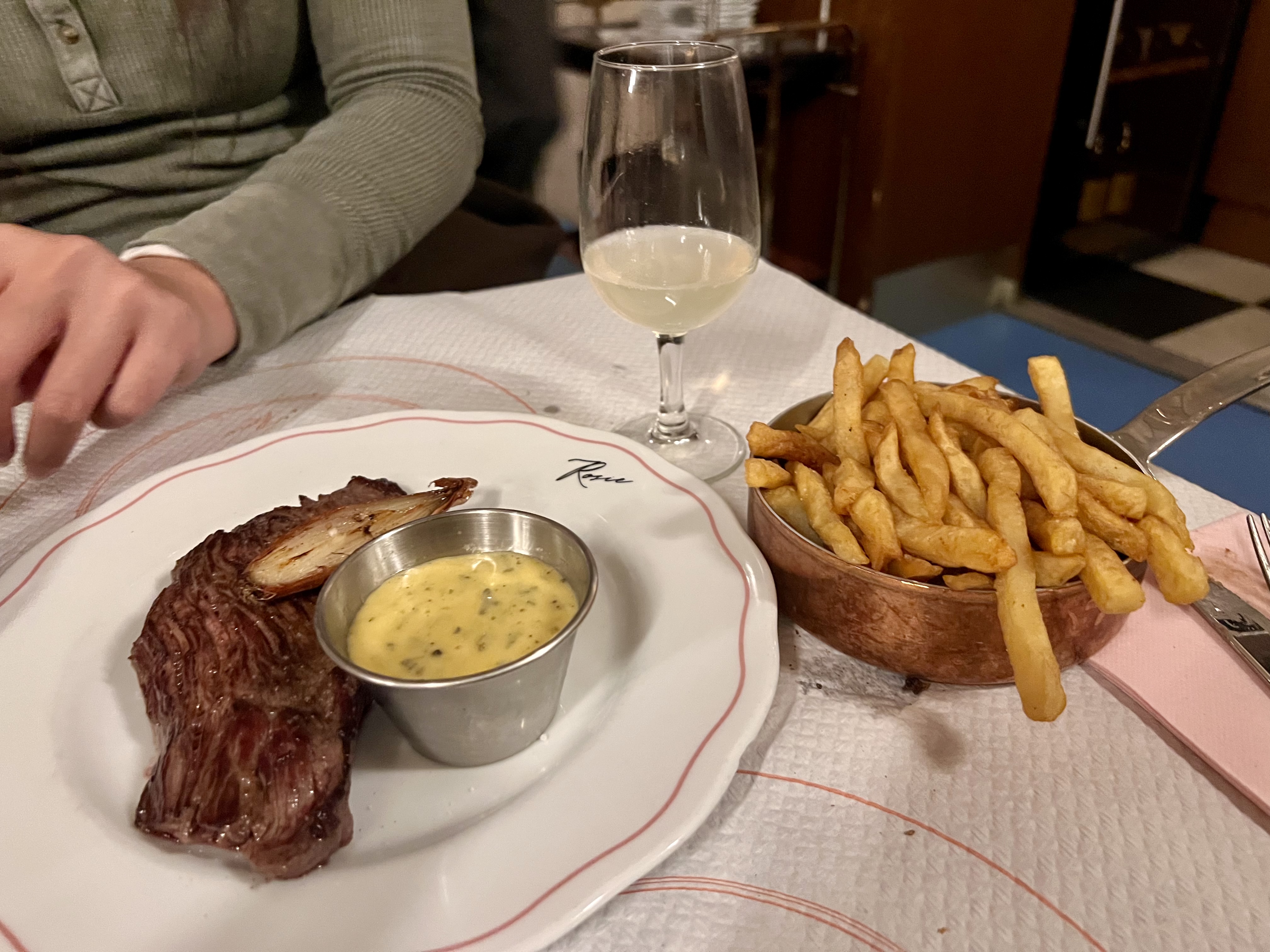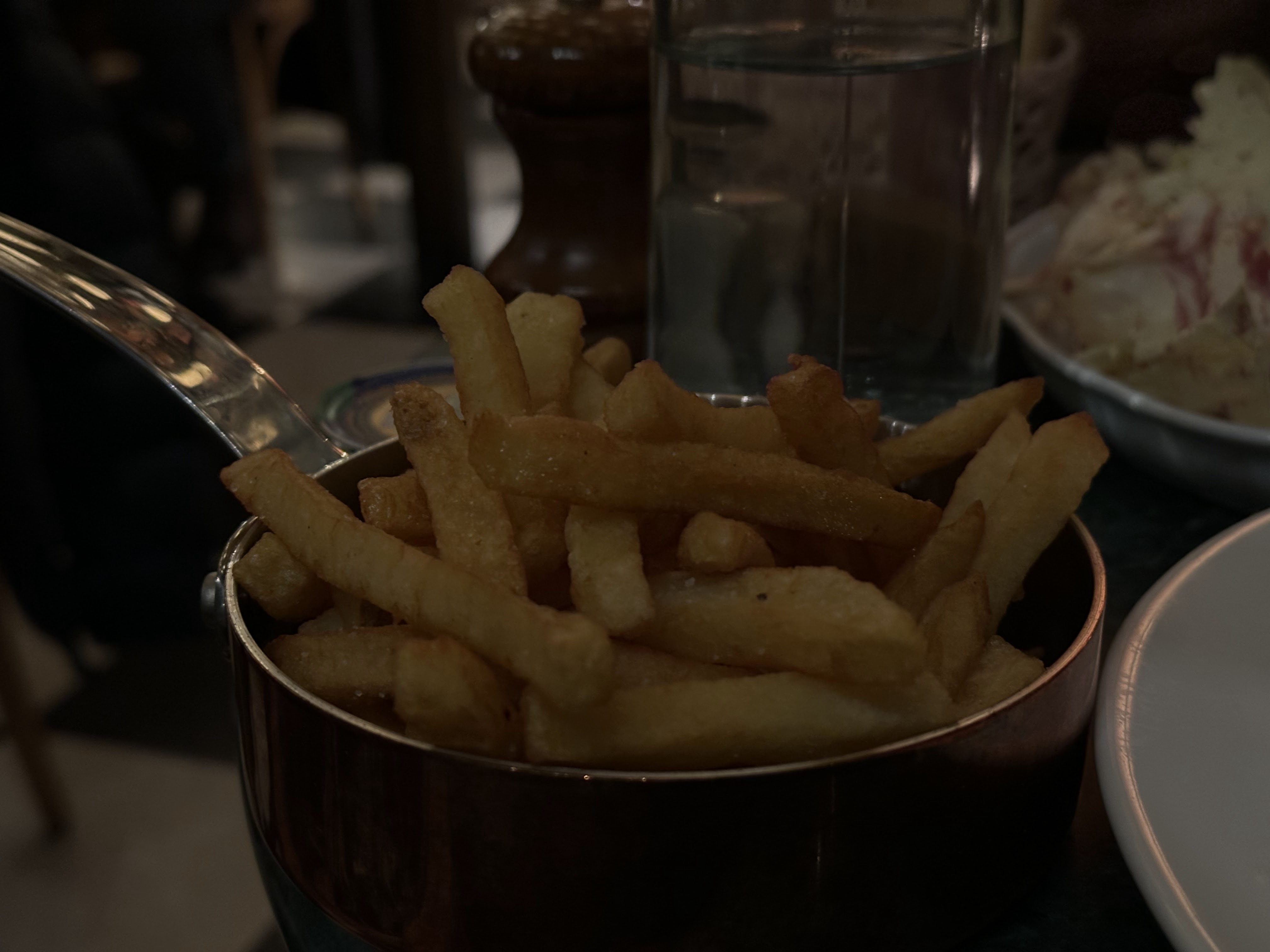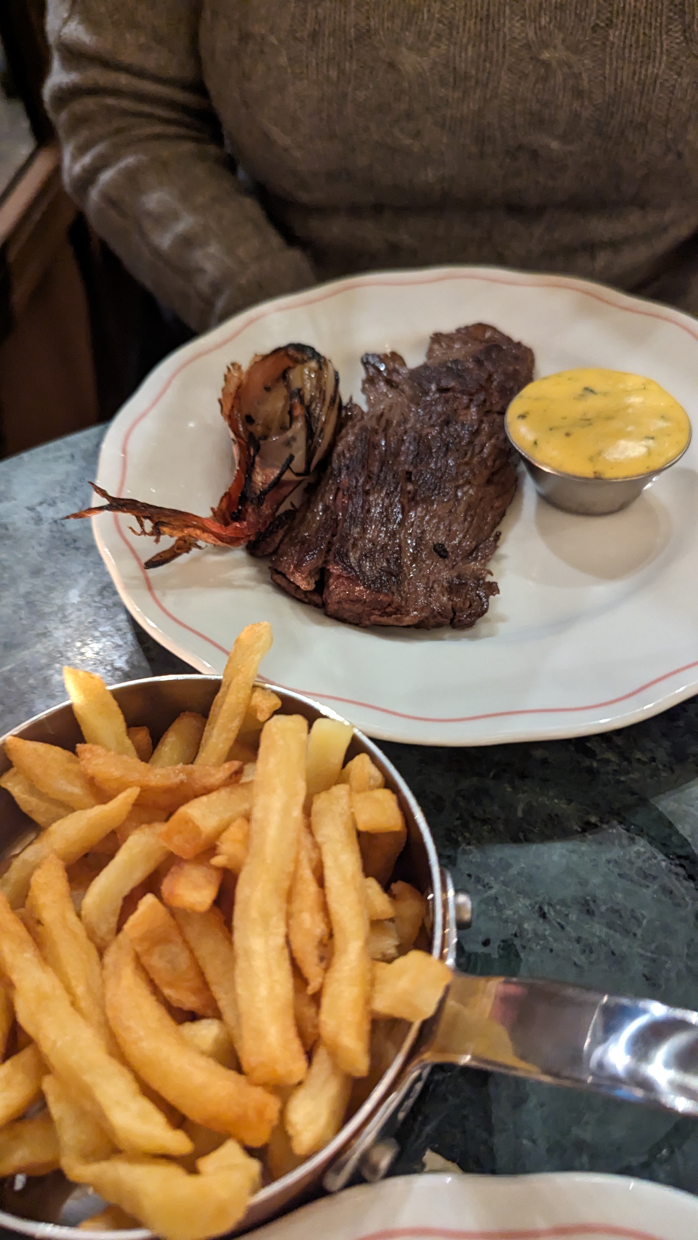 Bavette incroyable et frites excellentes. Assaisonnement parfait. Cadre très mignon et typique d'une brasserie parisienne. Serveurs rapides et très aimables.