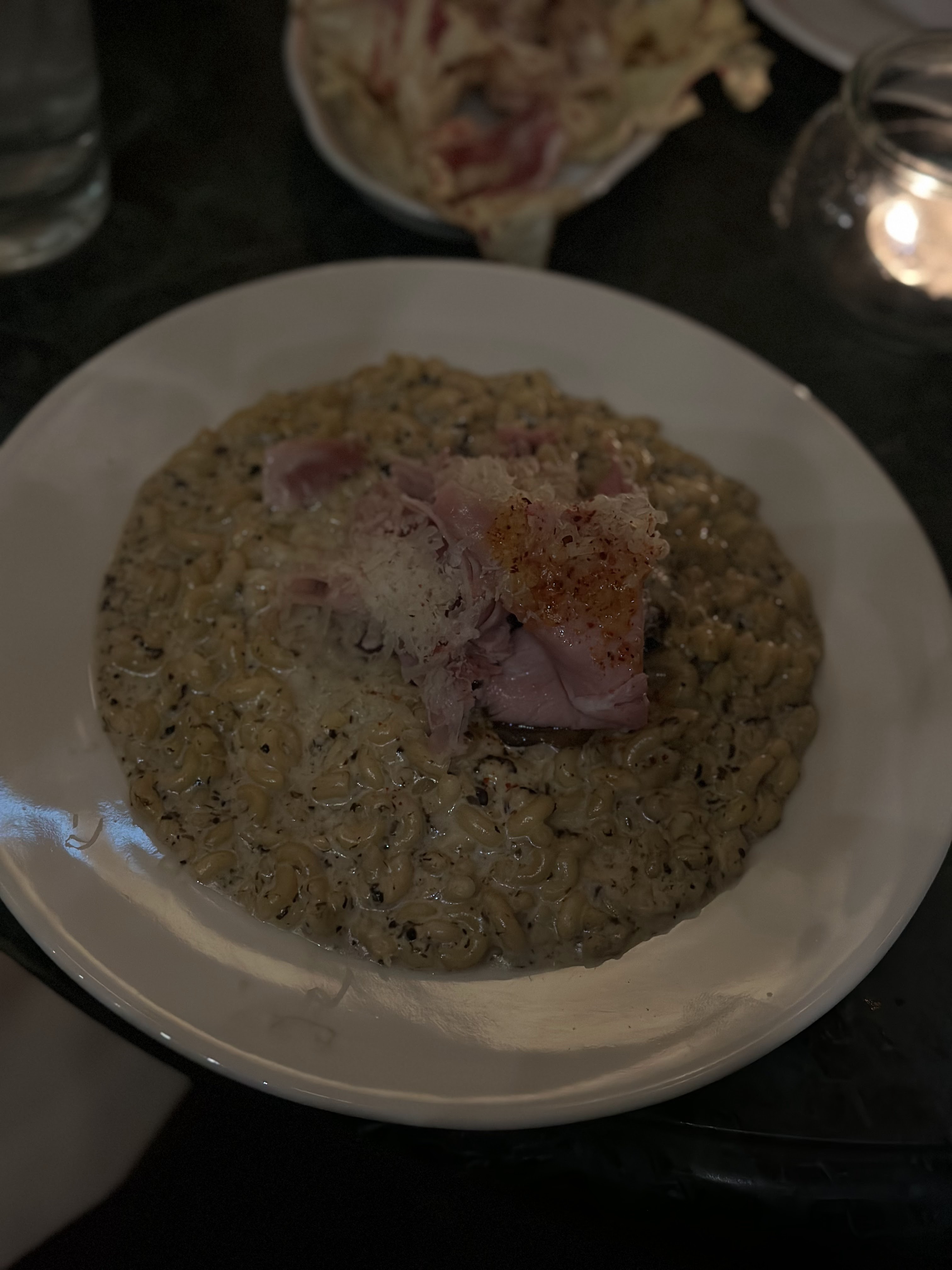 J'ai passé un moment formidable ici. J'ai commandé les Coquillettes à la truffe (un incontournable) et ma sœur a eu l'épaule d'agneau, et les deux plats étaient absolument incroyables. J'adore vraiment cet endroit. Le personnel est incroyablement accueillant et attentif à ses clients. La décoration intérieure est incroyablement cool. Je recommande vivement ce restaurant.