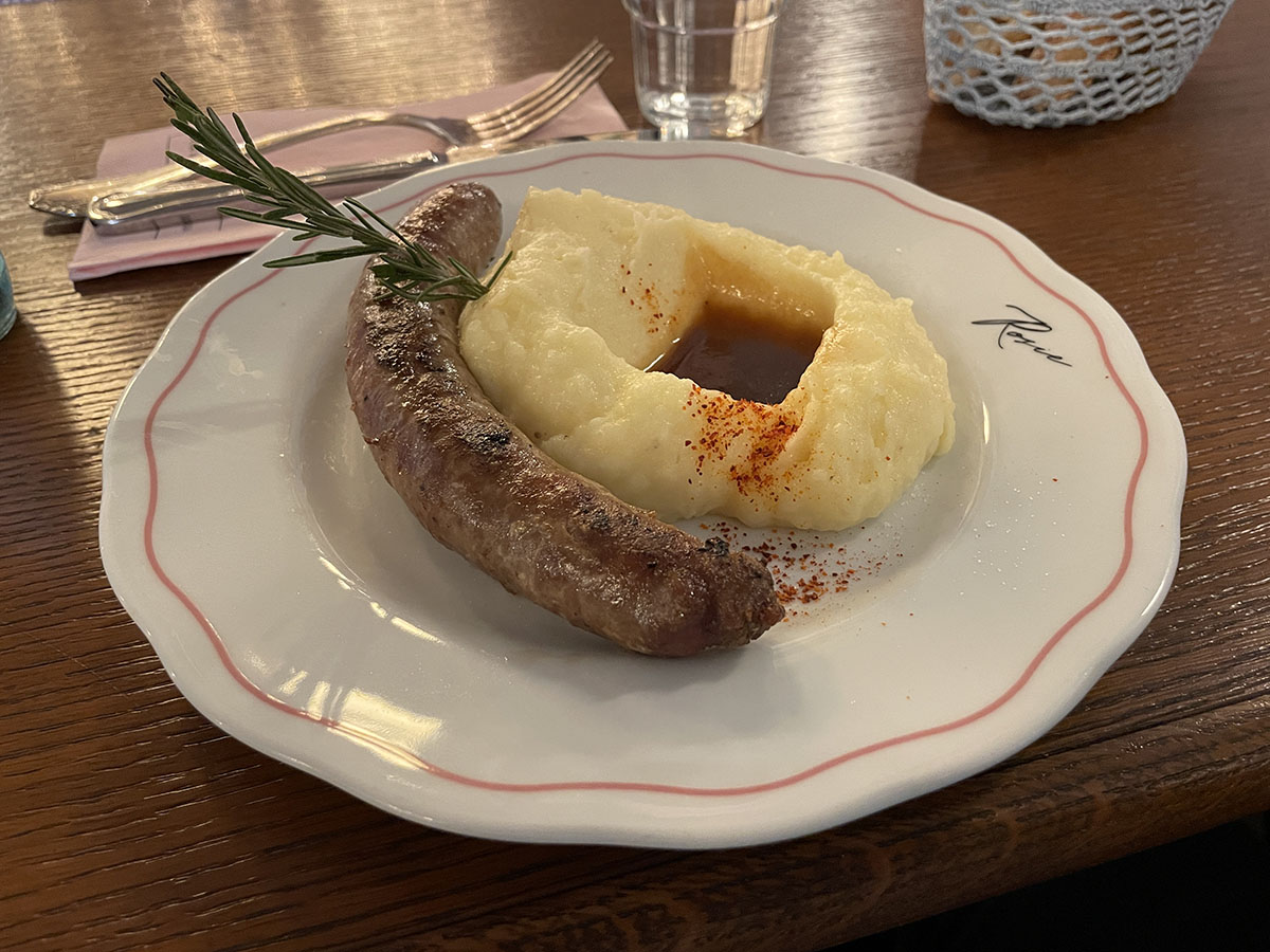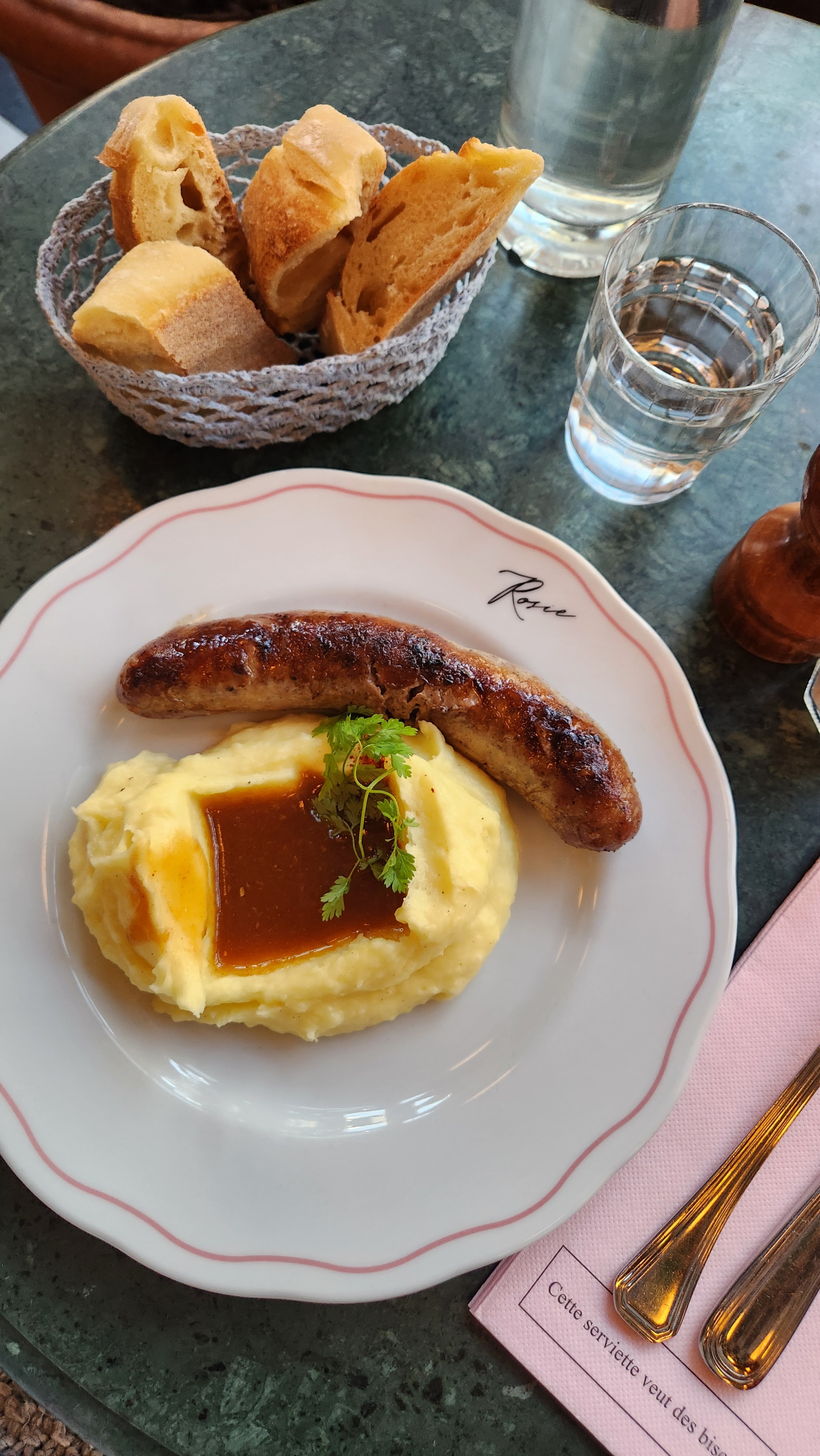 Très bon restaurant. Les plats sont vraiment très très bons, toute la table s'est régalée. Le saucisse-purée est incroyable (un tantinet de purée en plus ne serait pas de refus vu la taille de la saucisse cependant) Un peu plus mitigé sur les desserts, ils sont faits maison donc c'est positif mais je ne les ai pas trouvé exceptionnel. Le Paris-New York (un Paris Brest a la pistache) le chou était un peu trop mou et manquait de texture, et la pistache le goût était relativement discret. Le reste de la table n'était pas hyper convaincu par l'éclair et le cheesecake. Si je reviens je pense que je resterai focus sur la cuisine salée dans ma commande. Très bon service les serveurs sont sympathiques, et tout est très rapide on a été servis vraiment rapidement. En conclusion j'ai passé un bon moment, je reviendrais et je recommande vraiment cet établissement si vous voulez manger de la cuisine française traditionnelle salée.