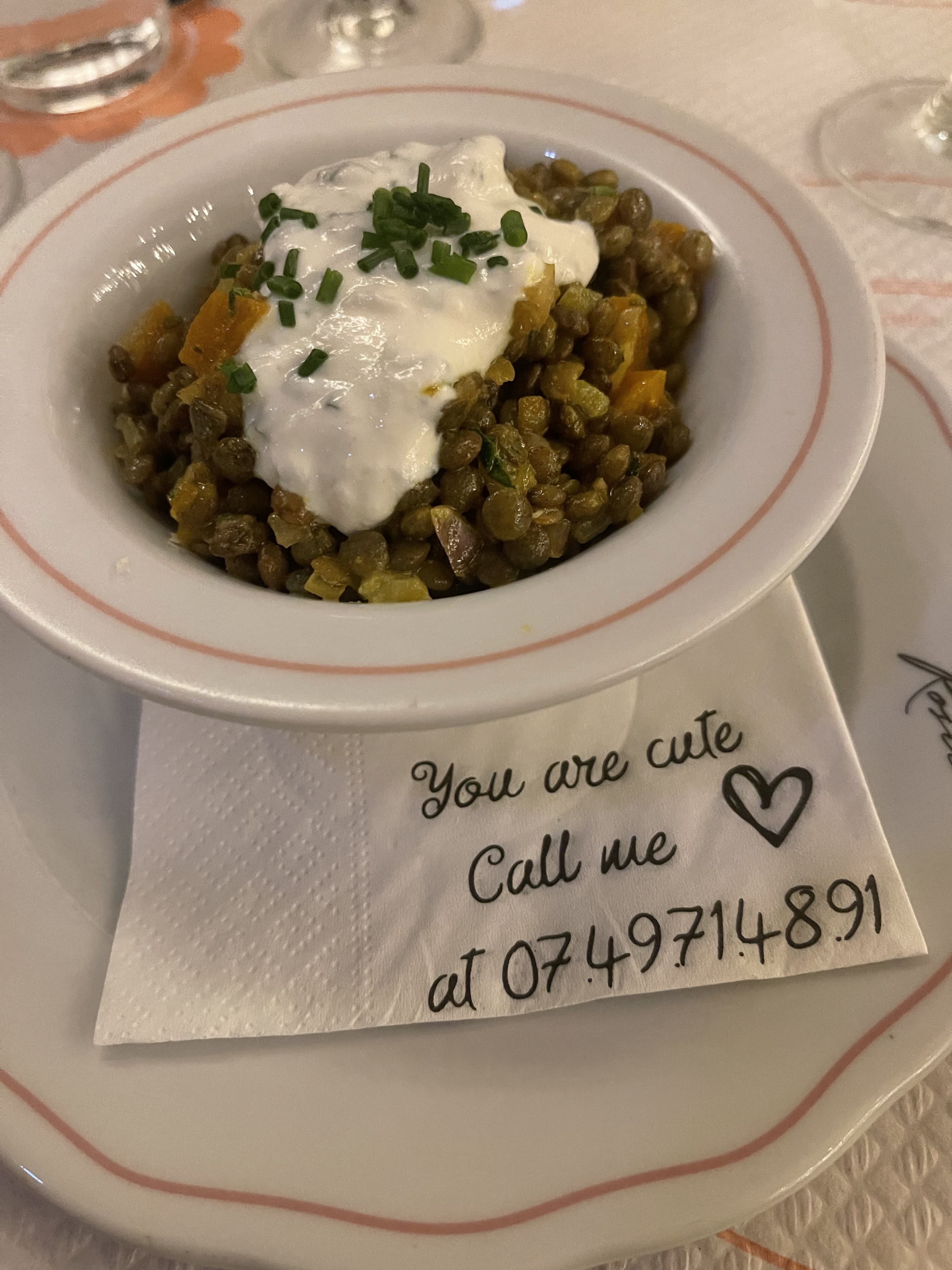 Le cadre est très sympa, j’adore les petits détails notamment avec la serviette. J’ai pris le risotto au jambon et truffes qui étaient très bon. Les cromeski de porc braisé en entrée aussi étaient excellentes. Les serveurs sont cools. J’y retournerai avec plaisir pour tester leur autres plats !