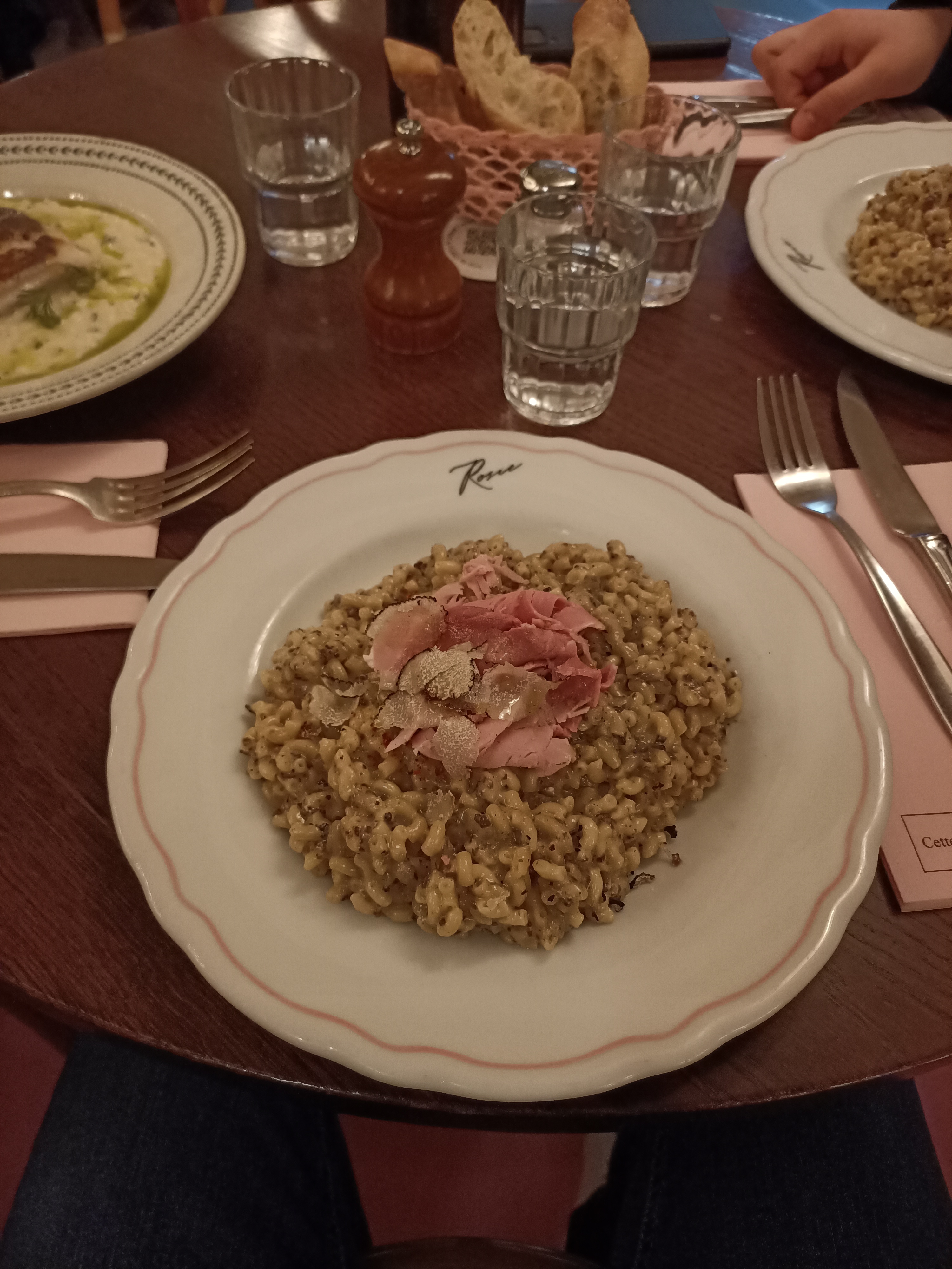 Un must ! Je souhaitais me rendre chez Rosie depuis un moment car la brasserie commence à se faire connaître et notamment pour ses coquillettes à la truffe. Je n'ai vraiment pas été déçue, les pâtes à la truffe sont ultra crémeuses et savoureuses, les pâtes sont parfaitement cuites. La quantité est très généreuse. J'ai également testé les cormesquis qui sont bien garnis et accompagnés d'une sauce très gourmande. Le cadre est vraiment très beau, assez spacieux et le personnel était vraiment adorable. Je recommande de réserver pour être sûr d'avoir une place !