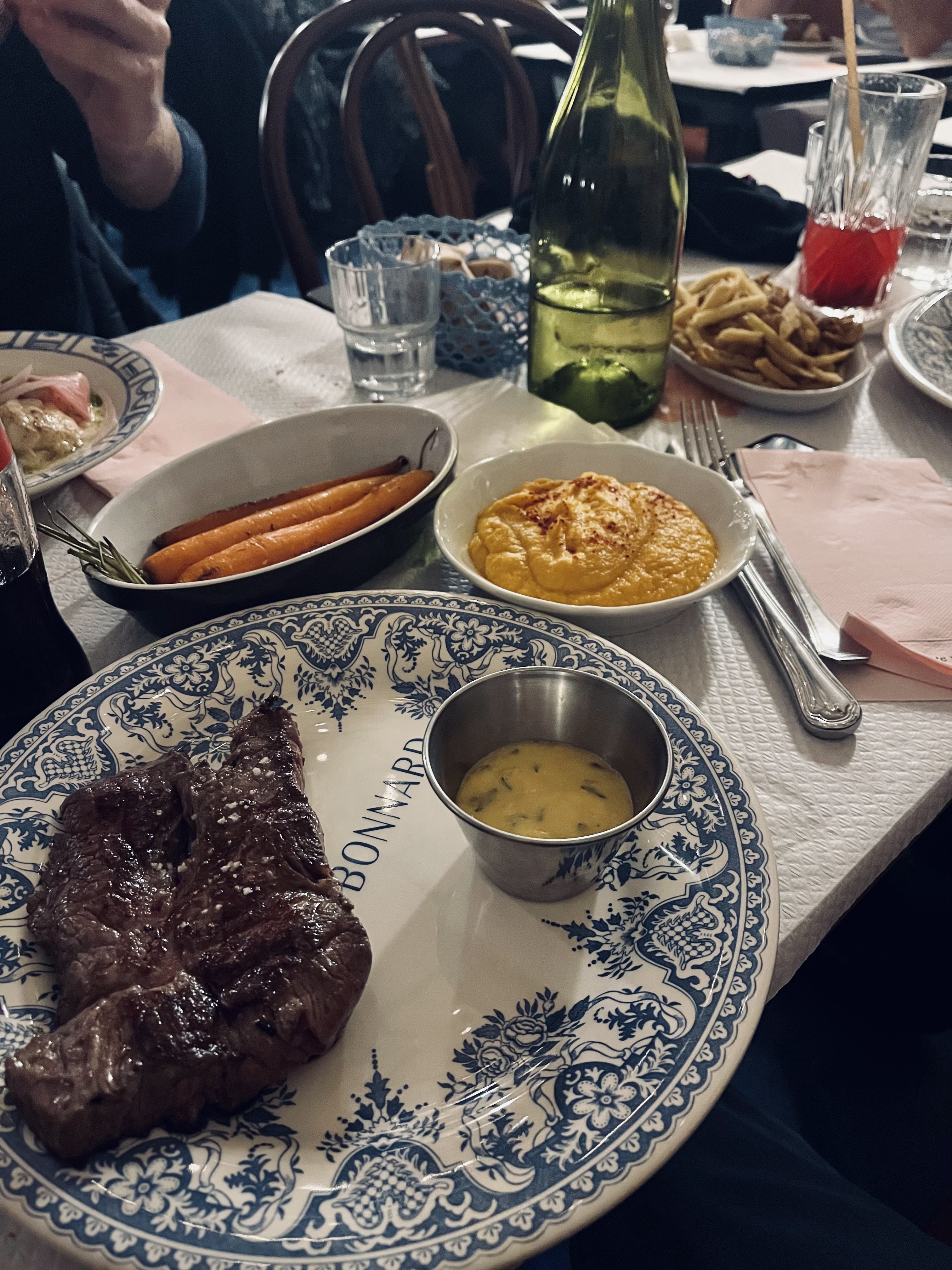 Bistrot sympathique. Bonne atmosphère. Personnel sympathique et accueillant. Délicieux steak et frites J'ai abandonné une étoile en raison du manque de légumes avec les plats principaux.